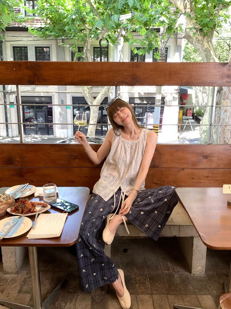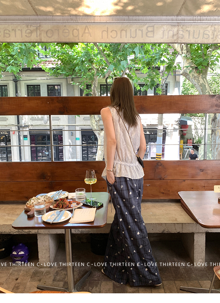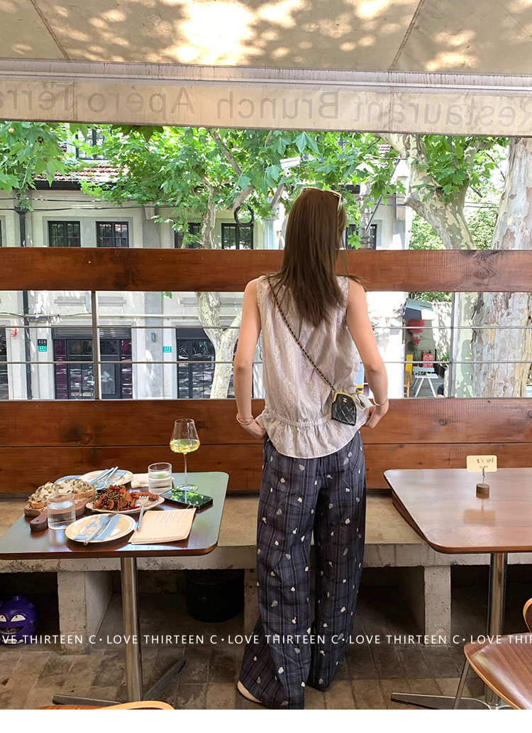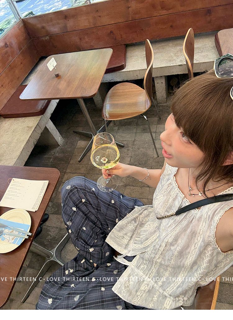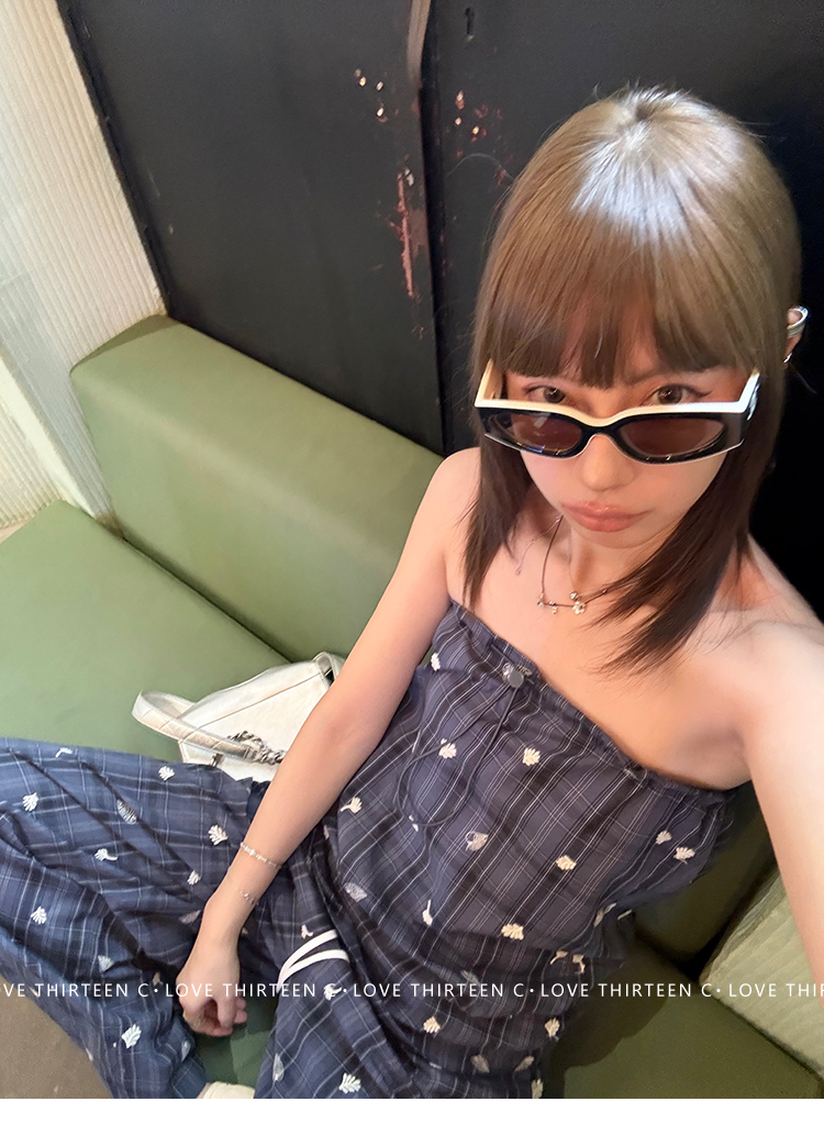 TC Light Oxygen Embroidery Drawstring Tube Top + Wide Pants Set
