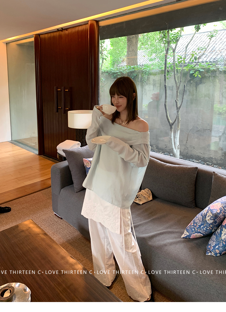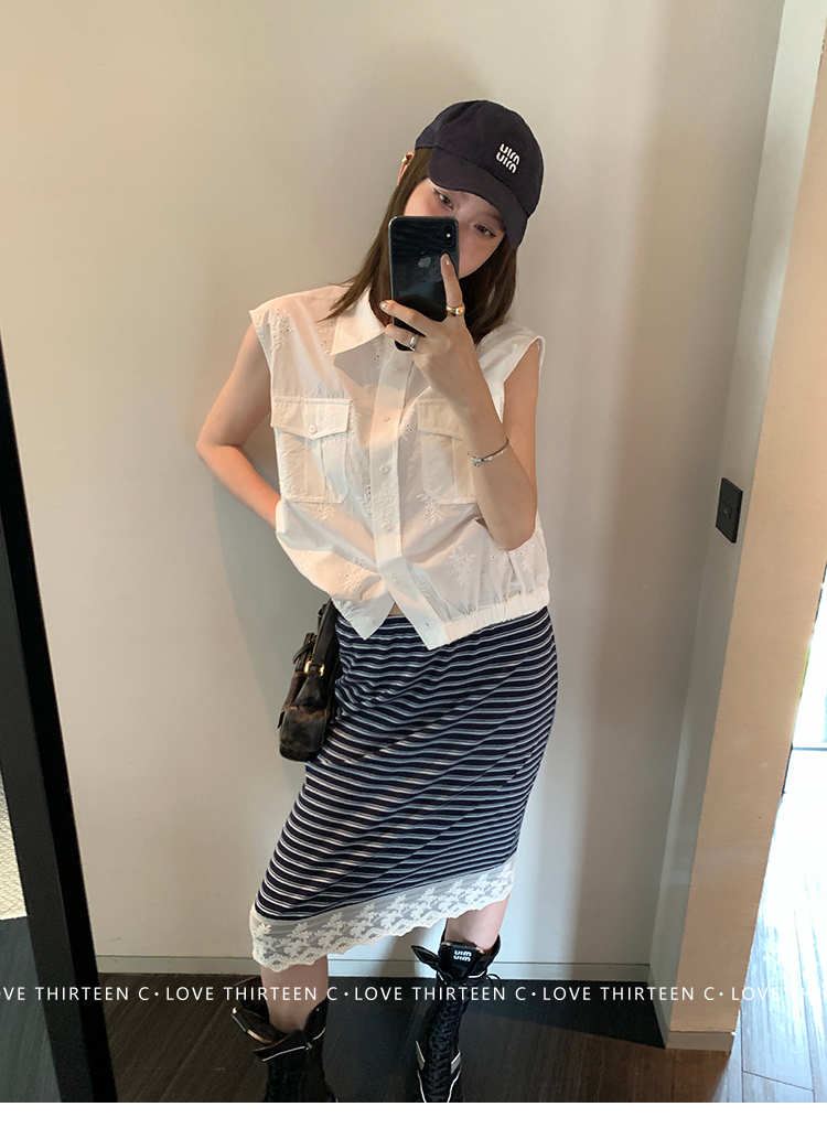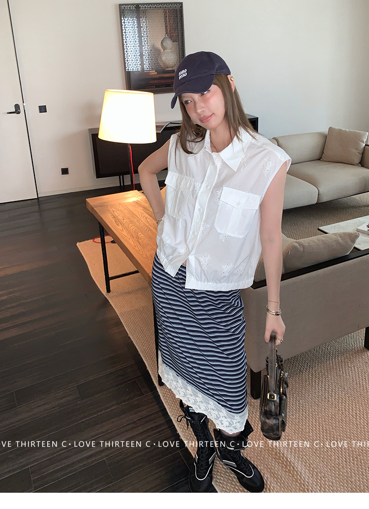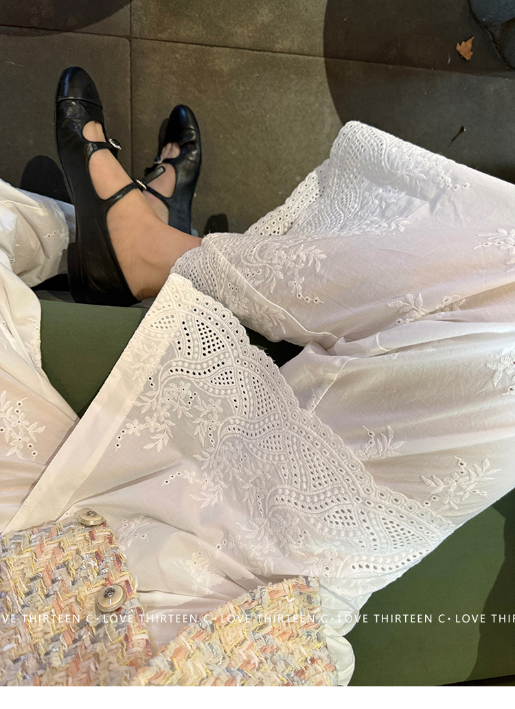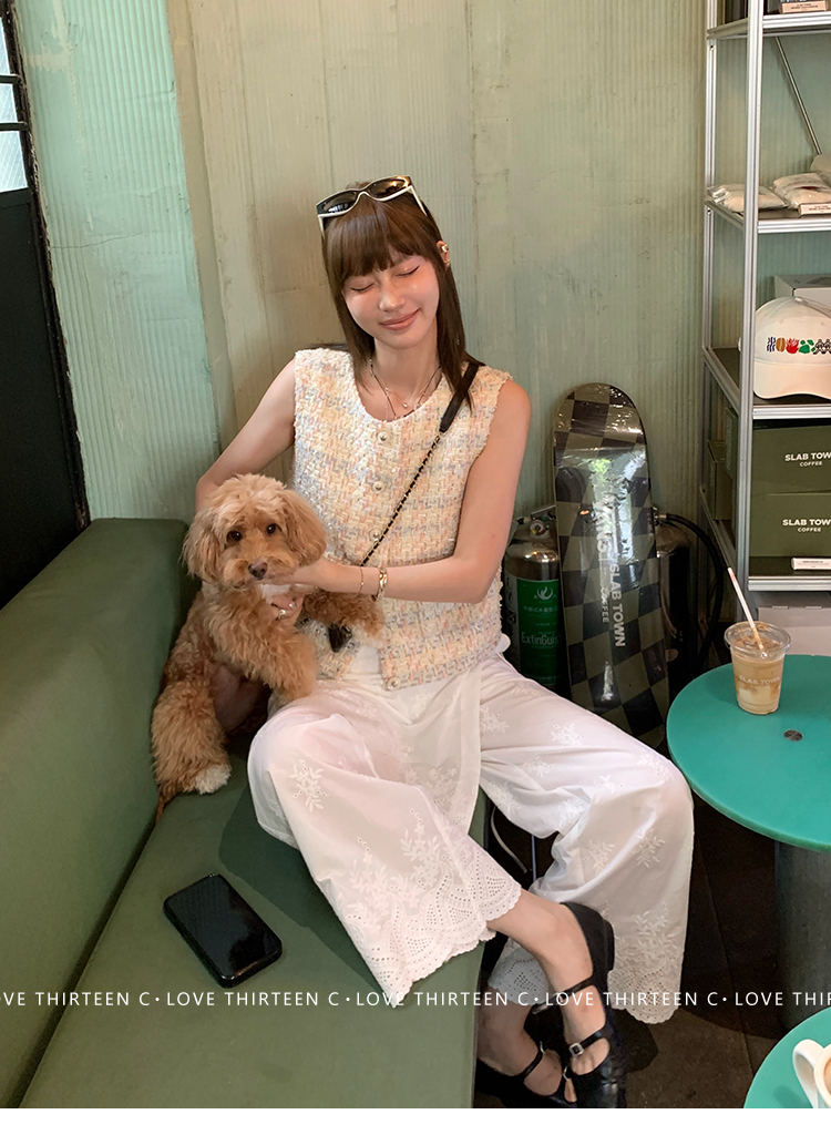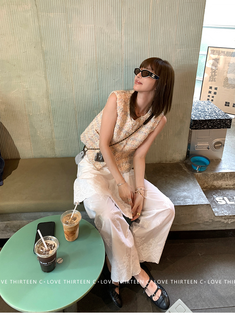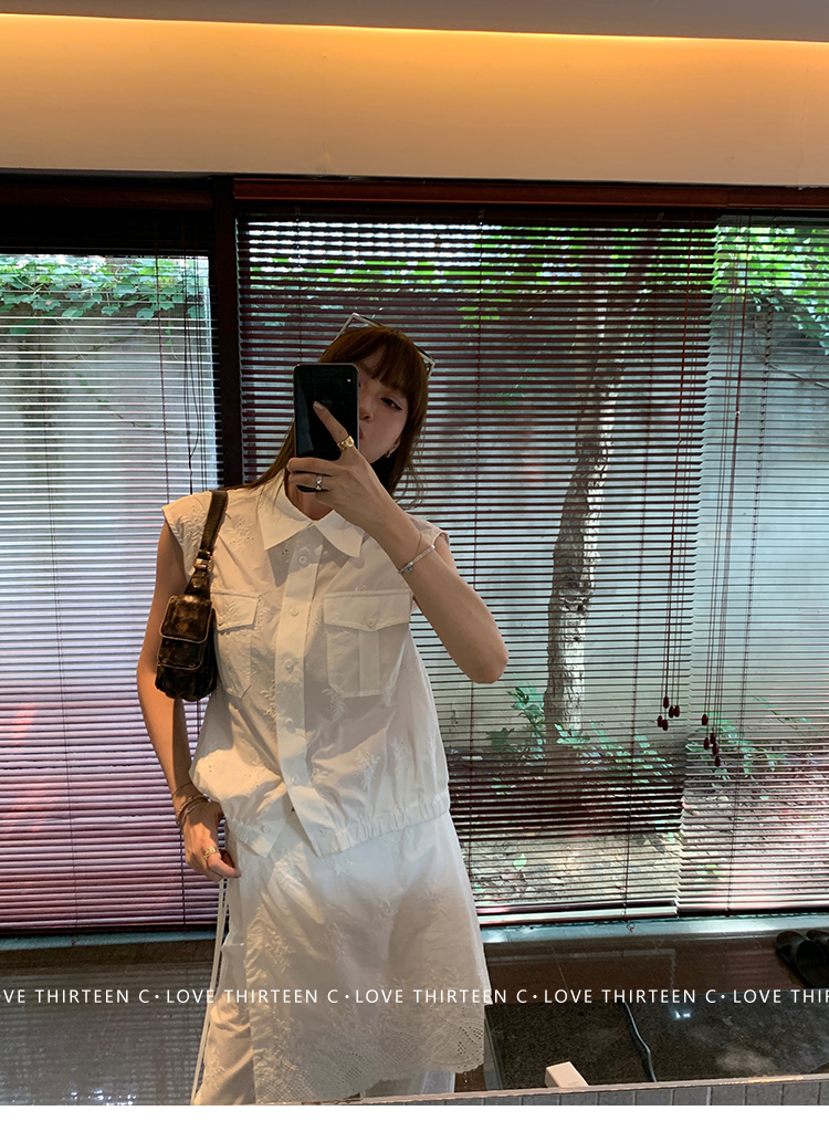 TC allwhite cotton embroidered work sleeveless shirt + curtain pants set