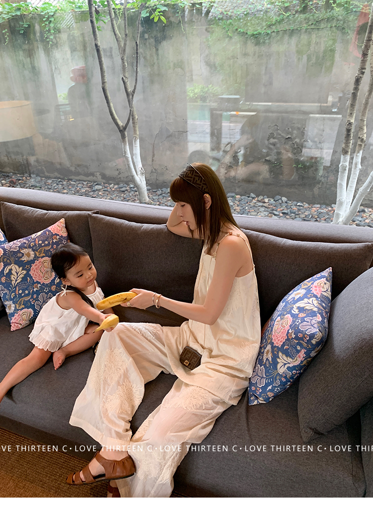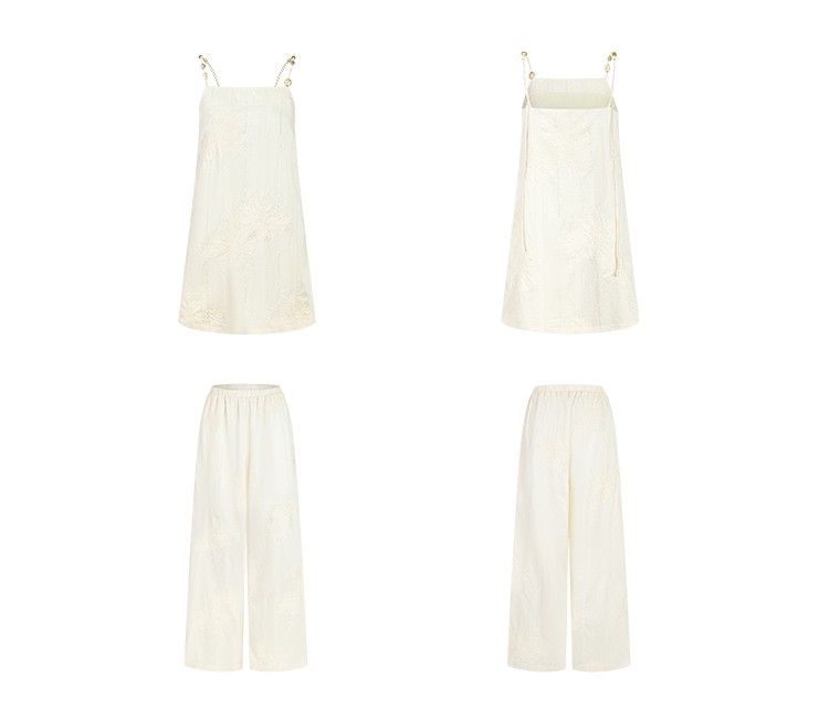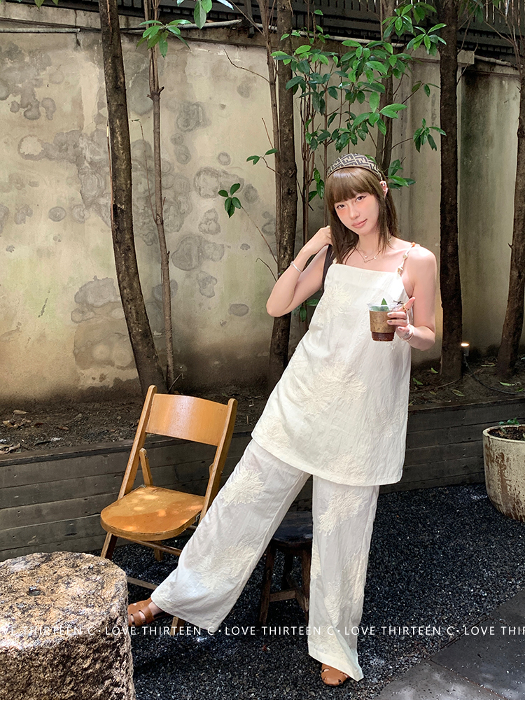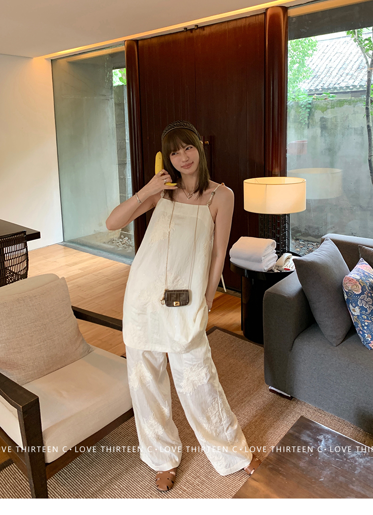 TC hand-beaded suspender top Tencel embroidery wide-leg pants