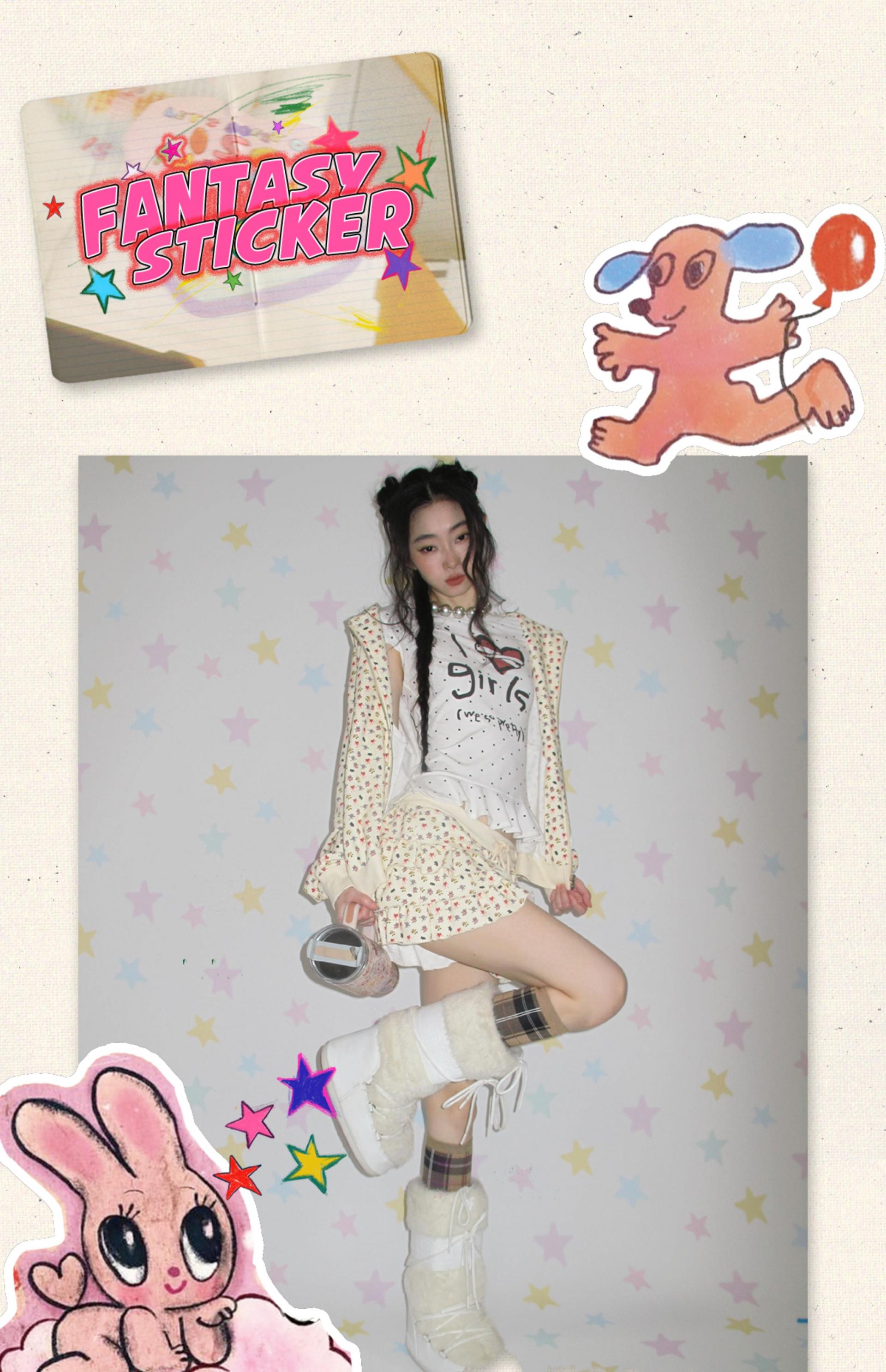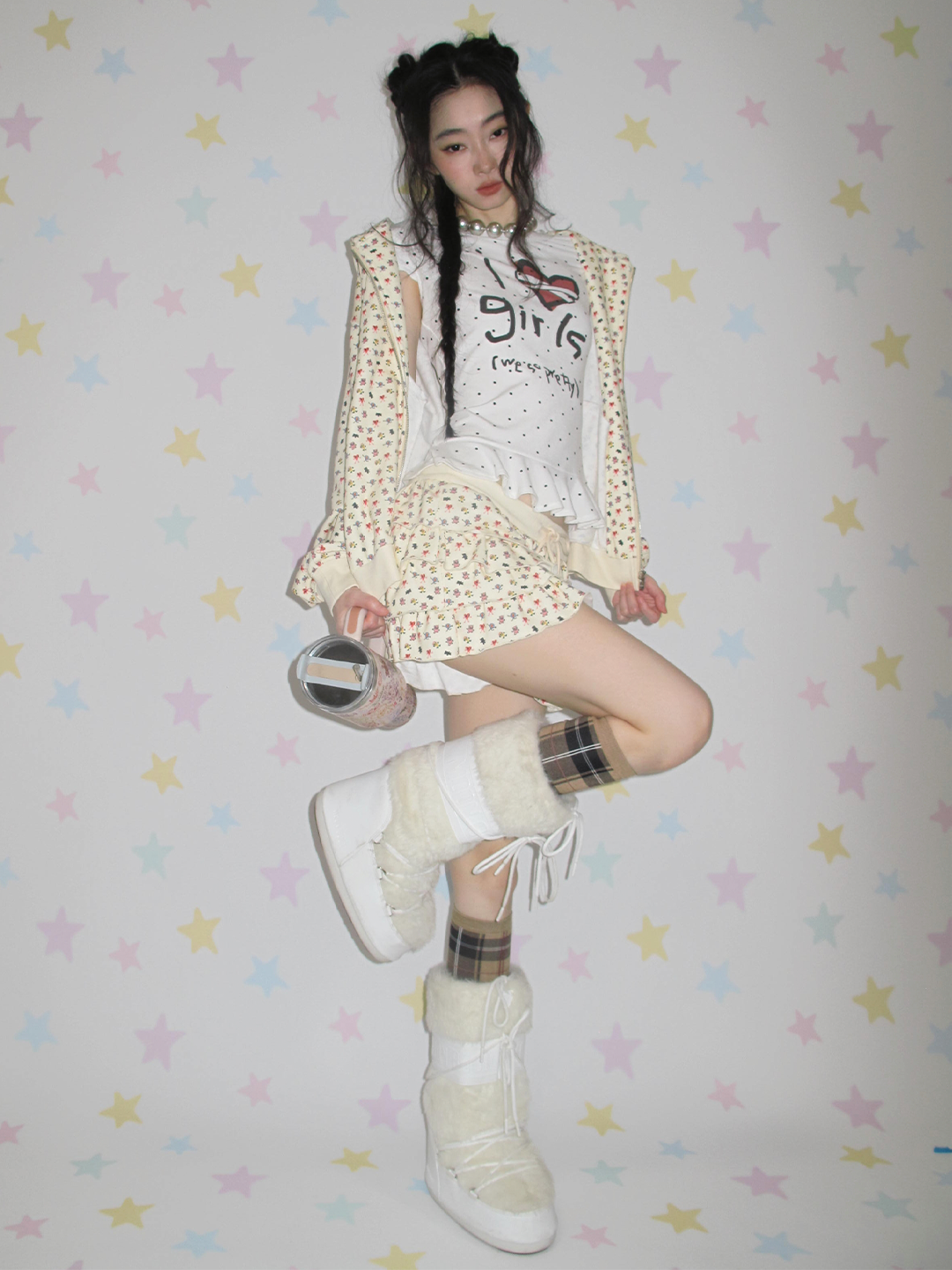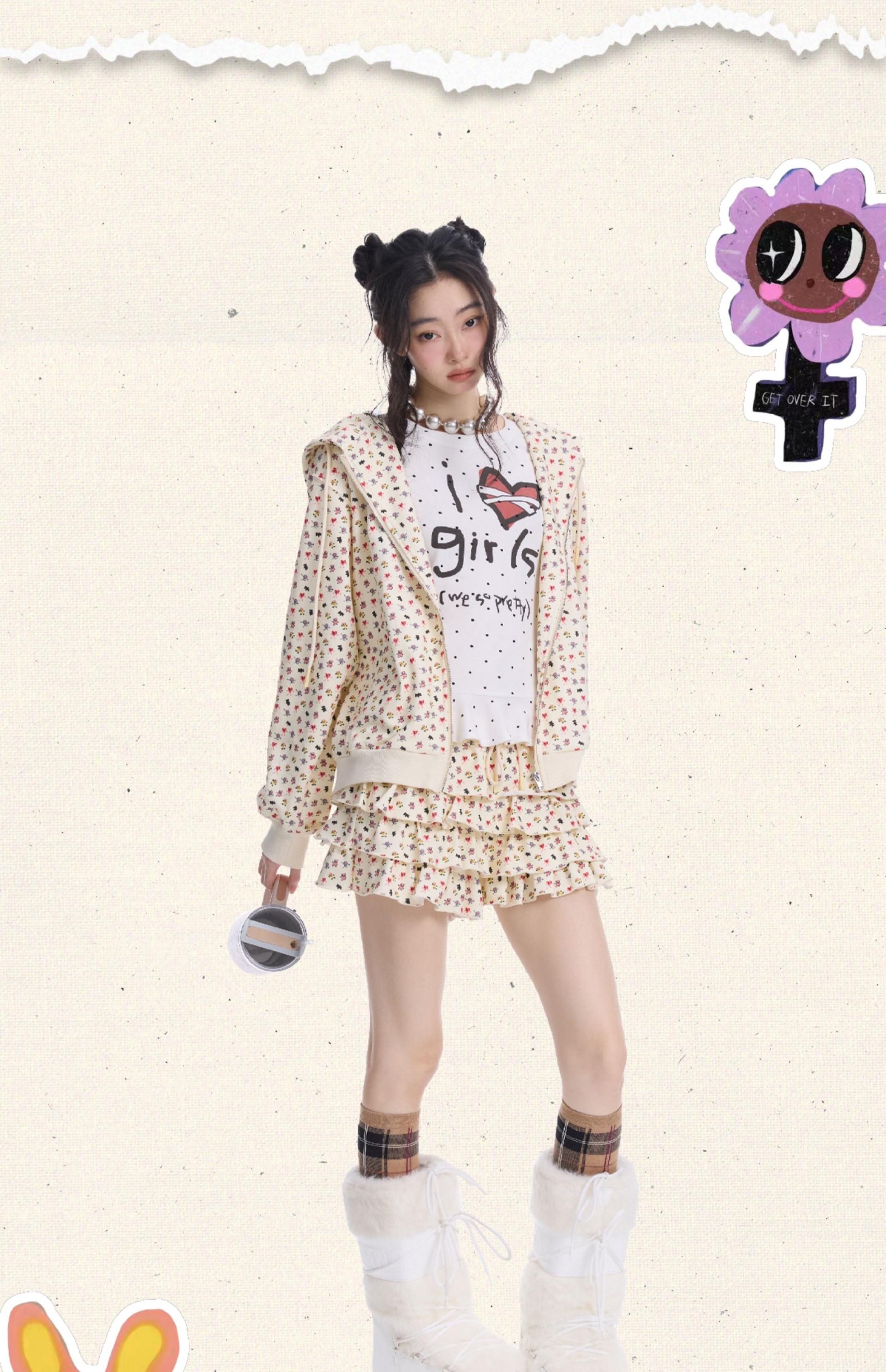 MOF Beige Floral Sweatshirt Cardigan Shorts Set