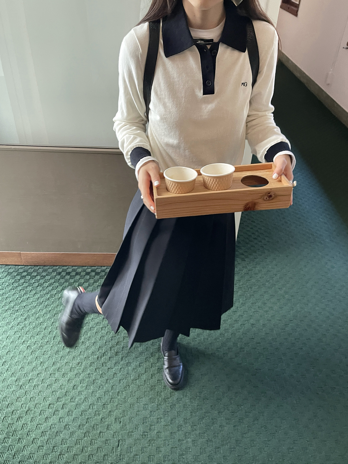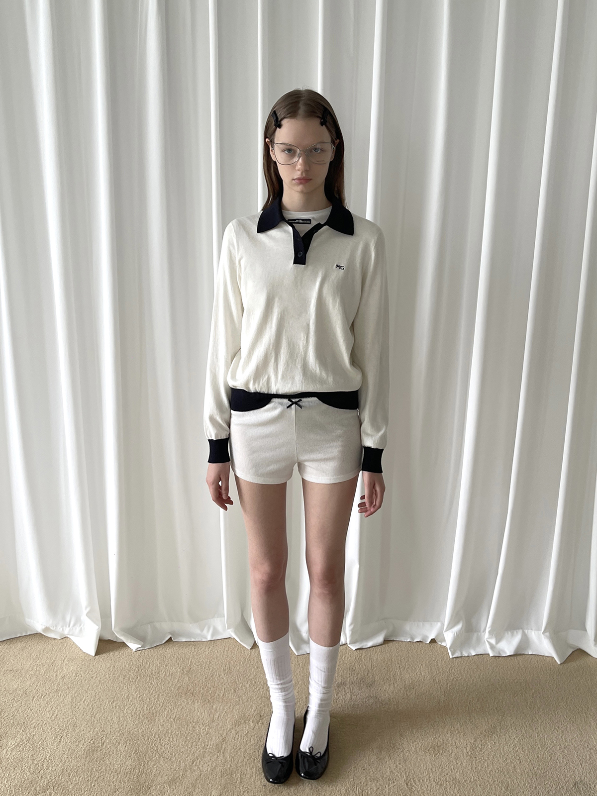PFF GIRL white contrast collar knitted long-sleeved POLO shirt