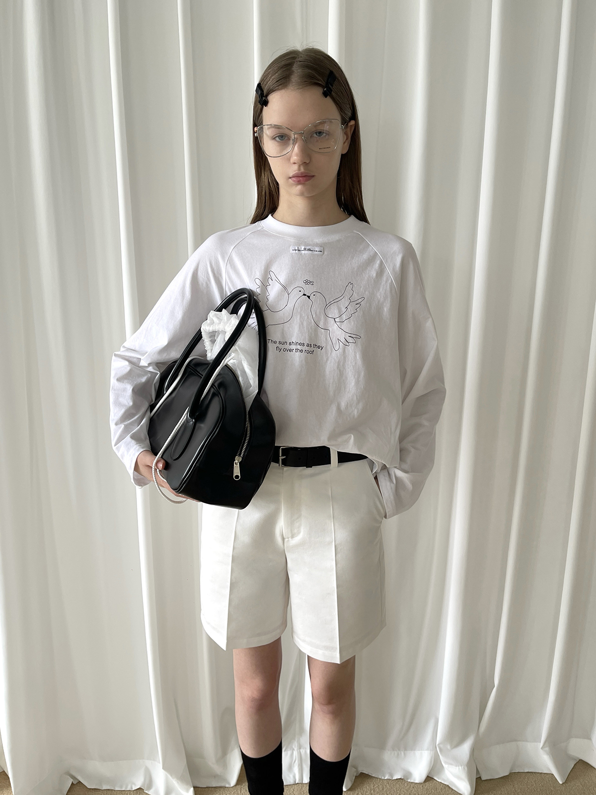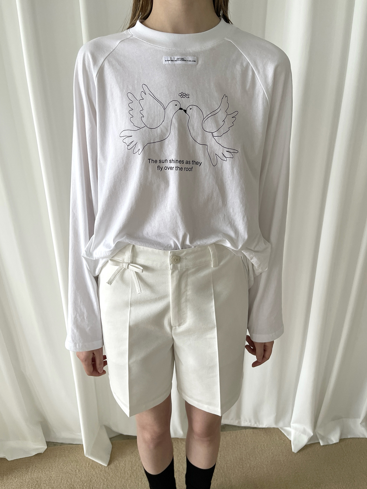 PFF GIRL white bow straight denim shorts