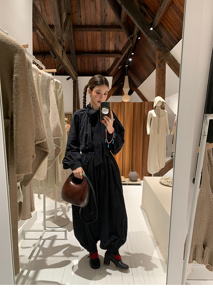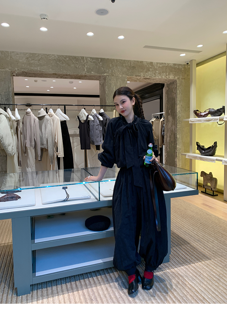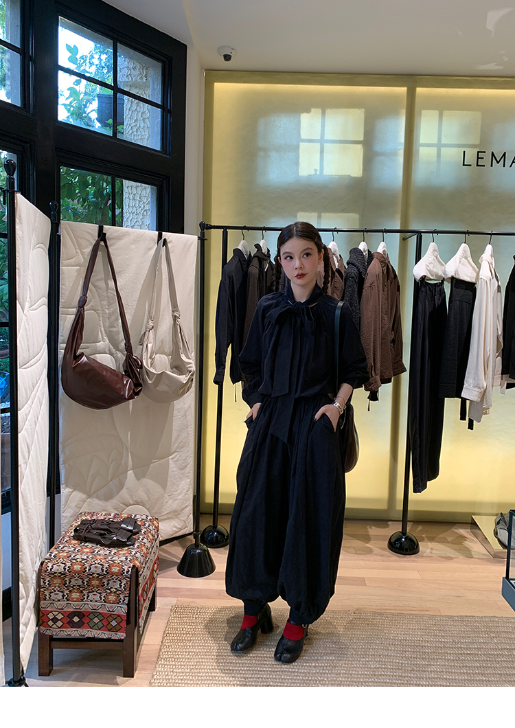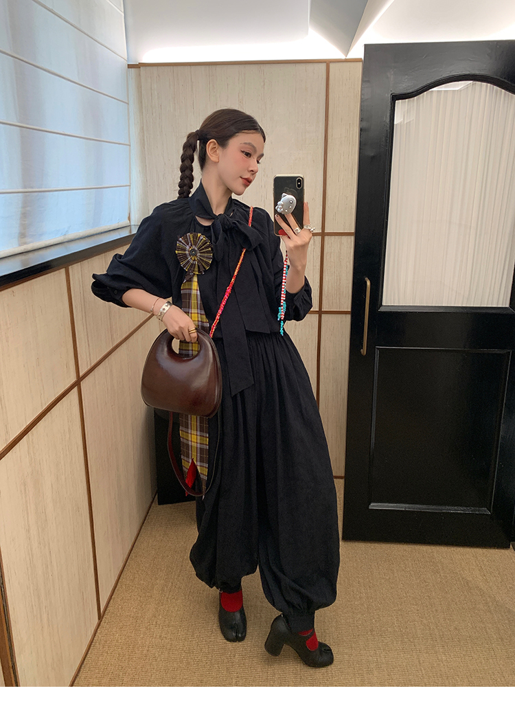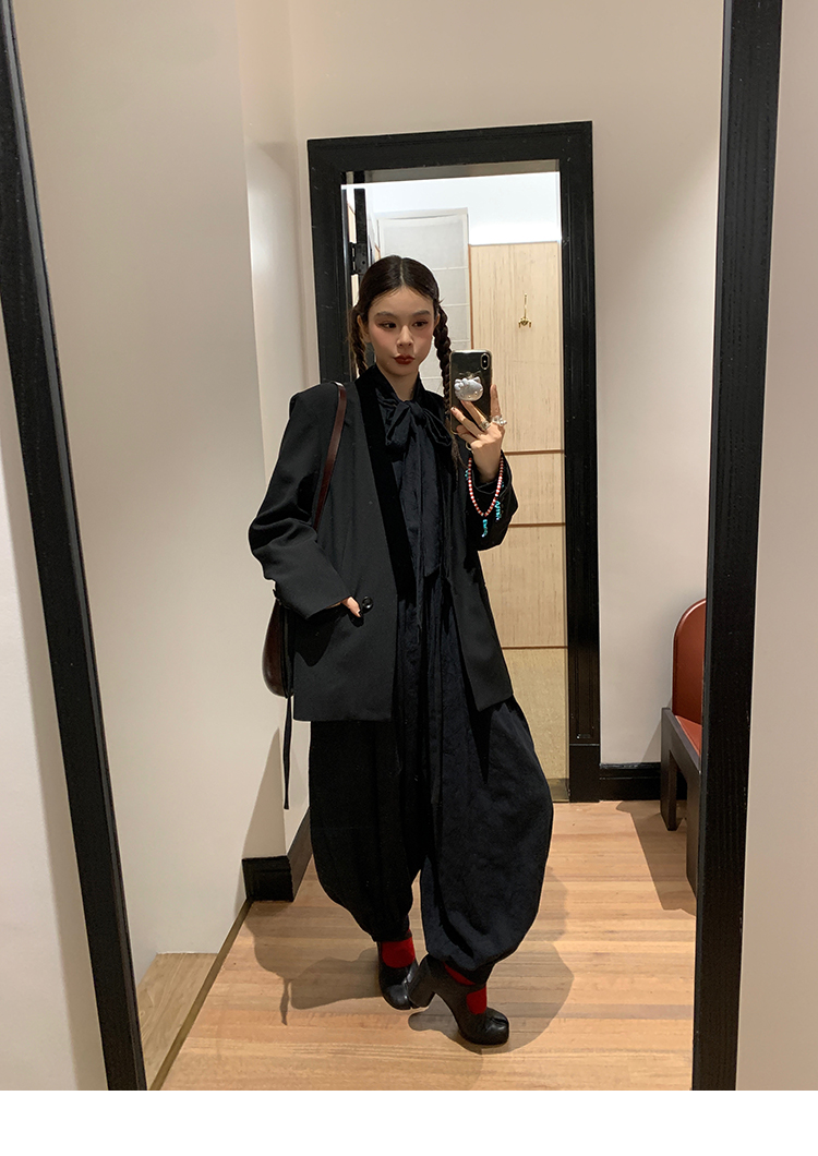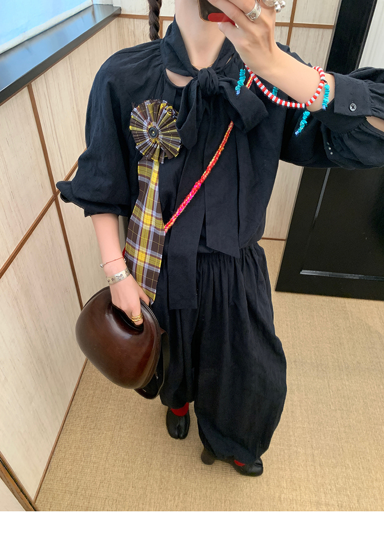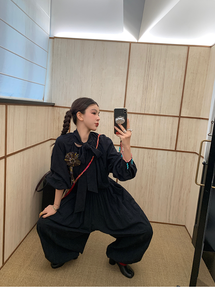 LRIB All blcak attitude black tie jacquard shirt bloomers set