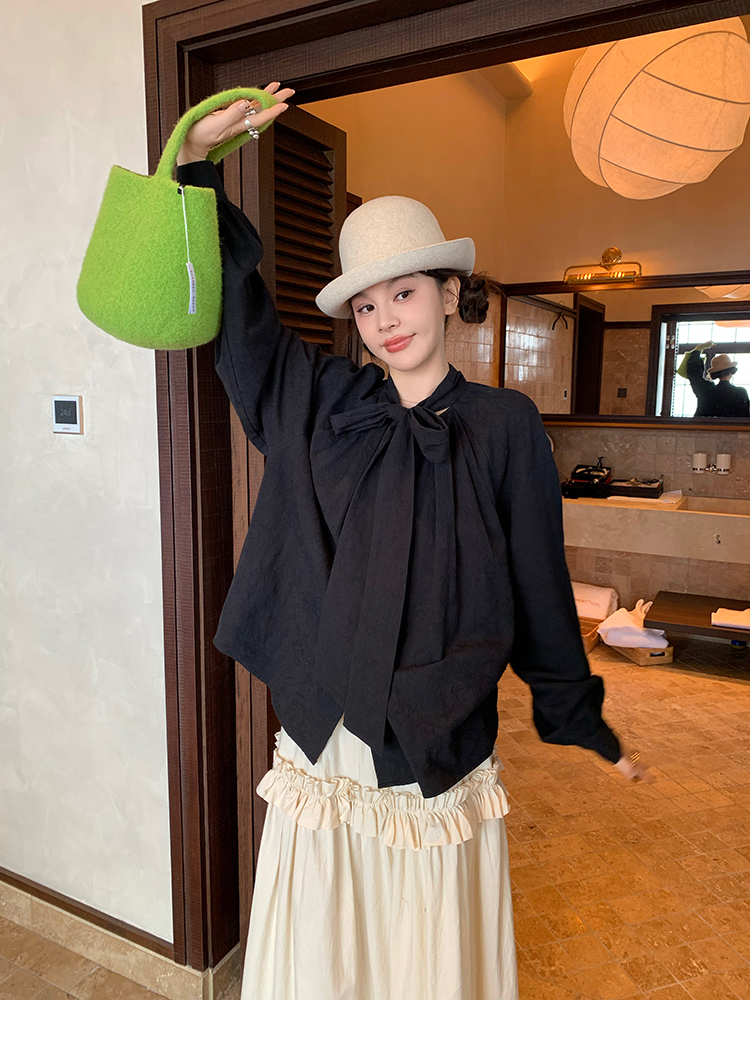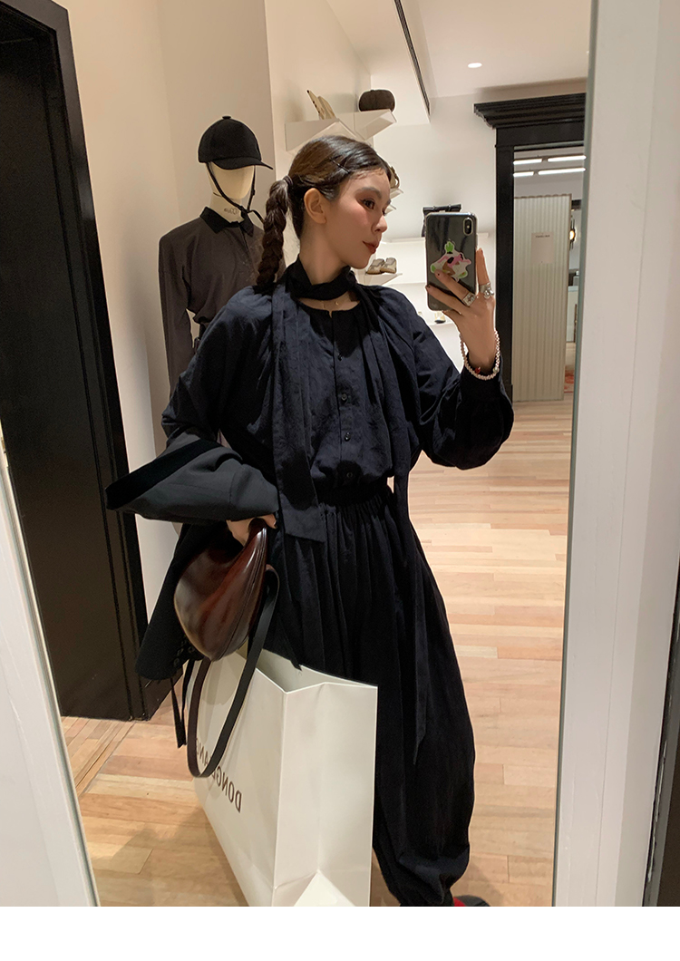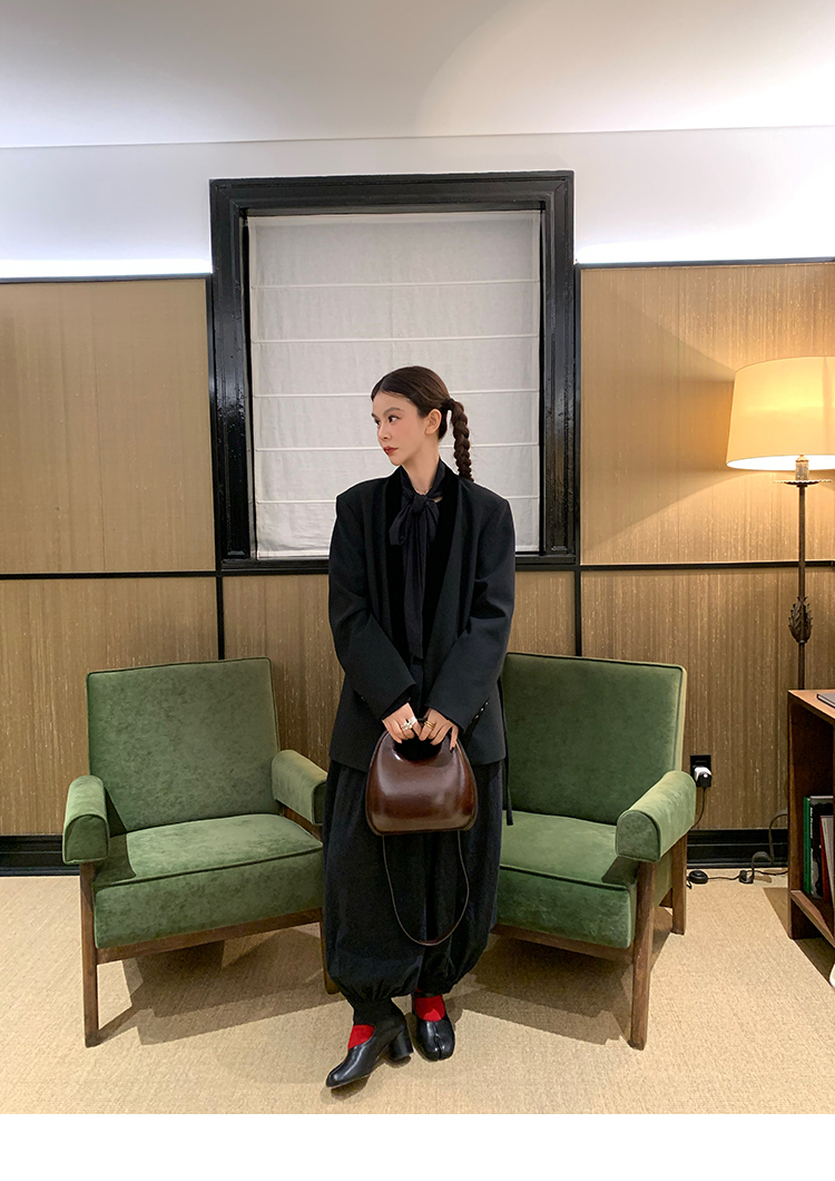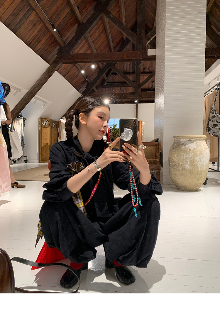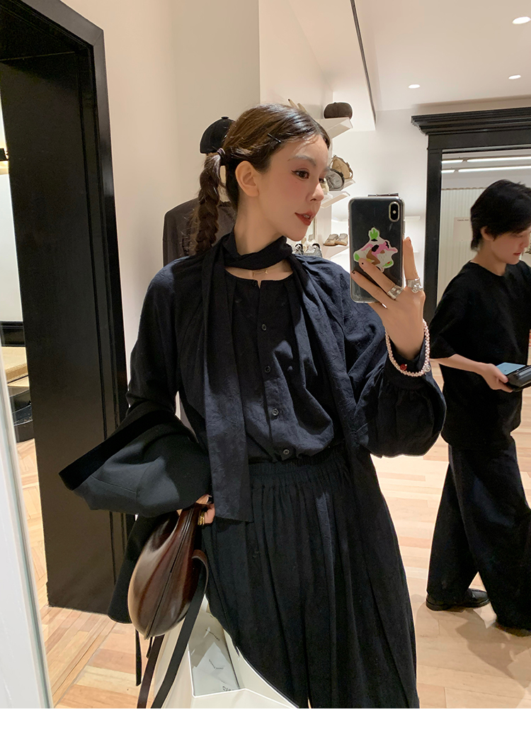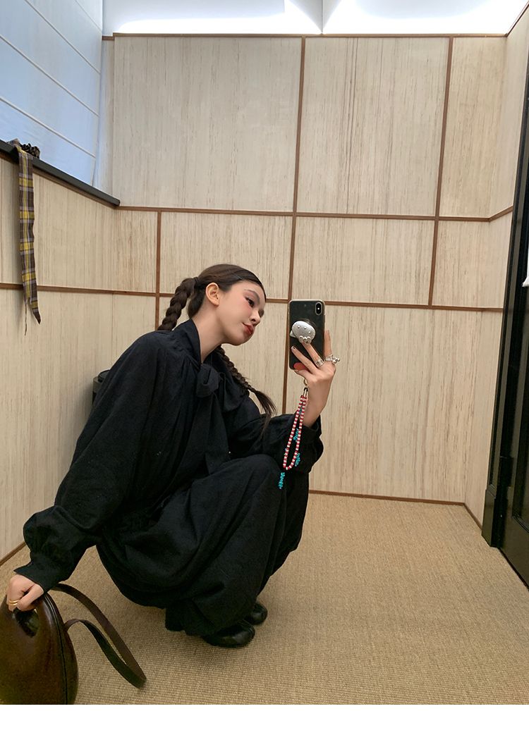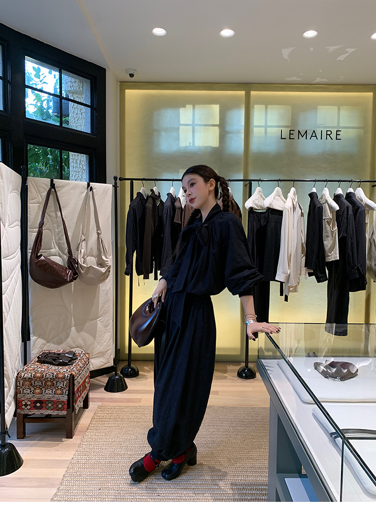 LRIB All blcak attitude black tie jacquard shirt bloomers set