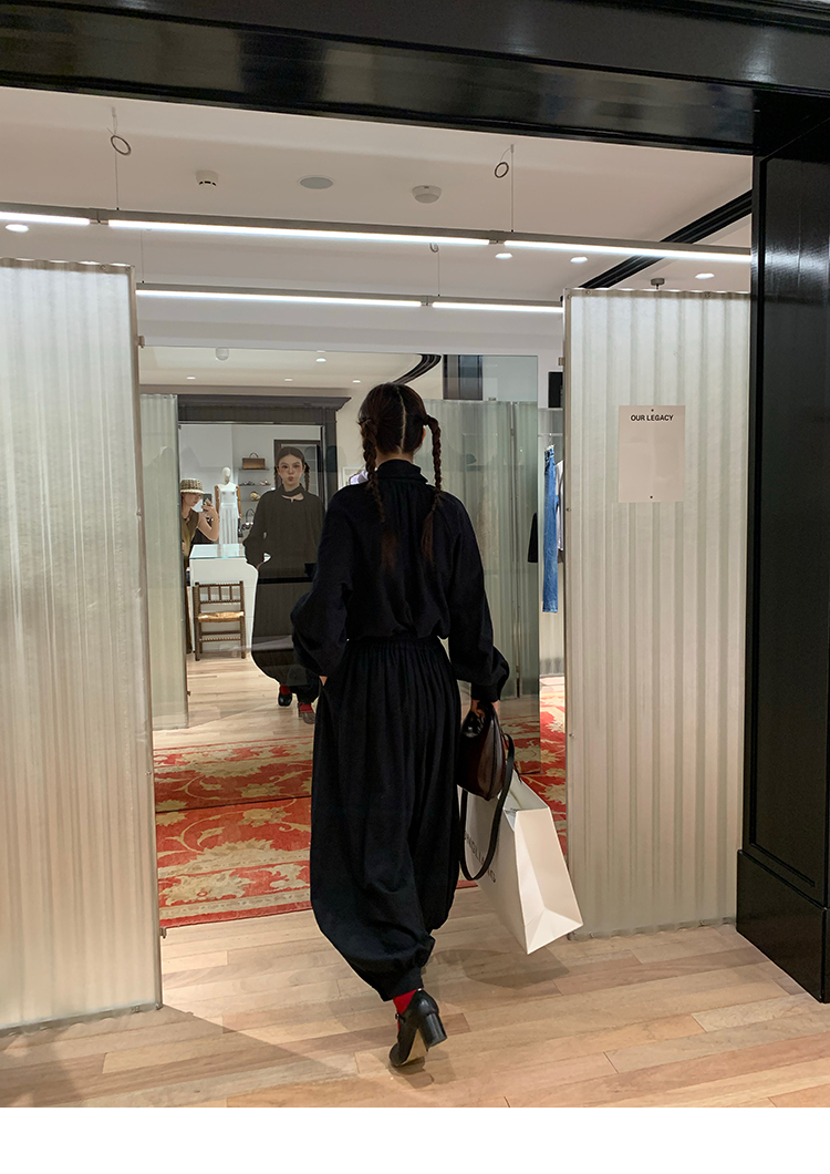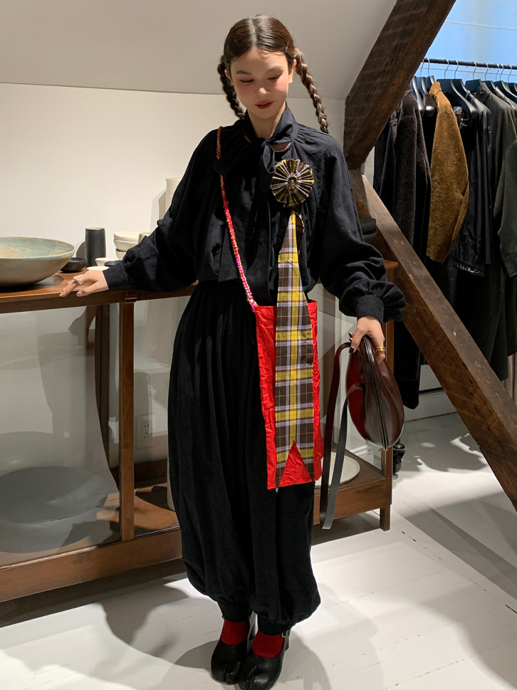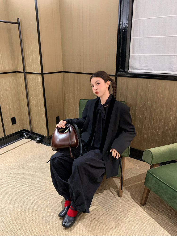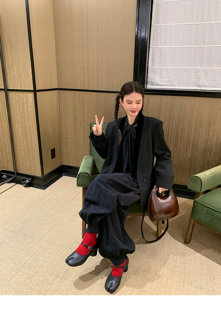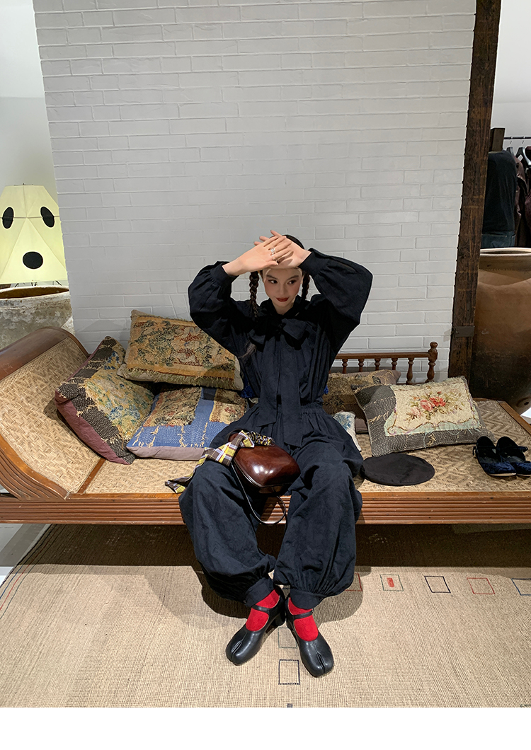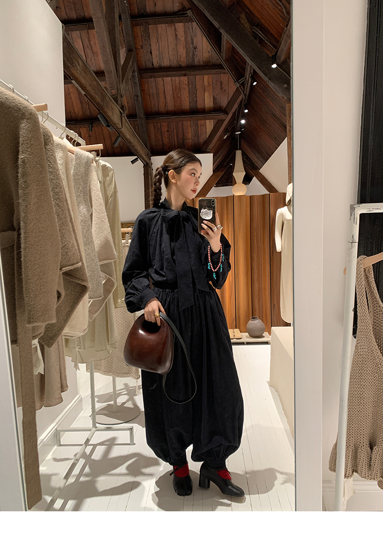 LRIB All blcak attitude black tie jacquard shirt bloomers set