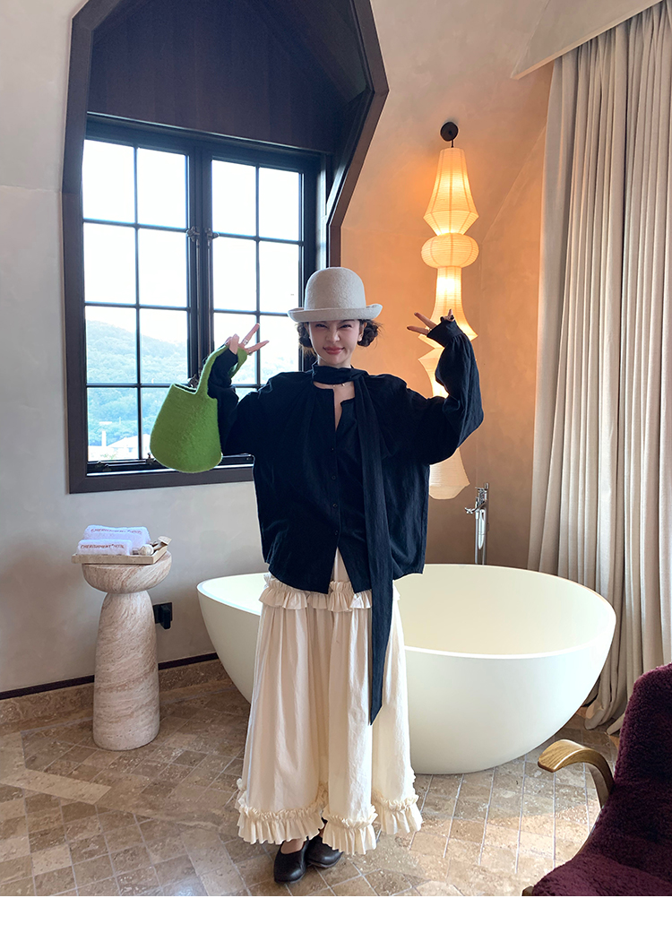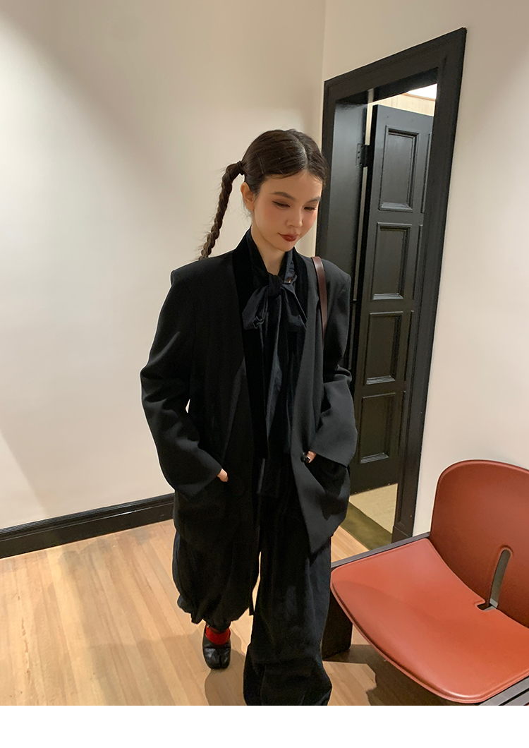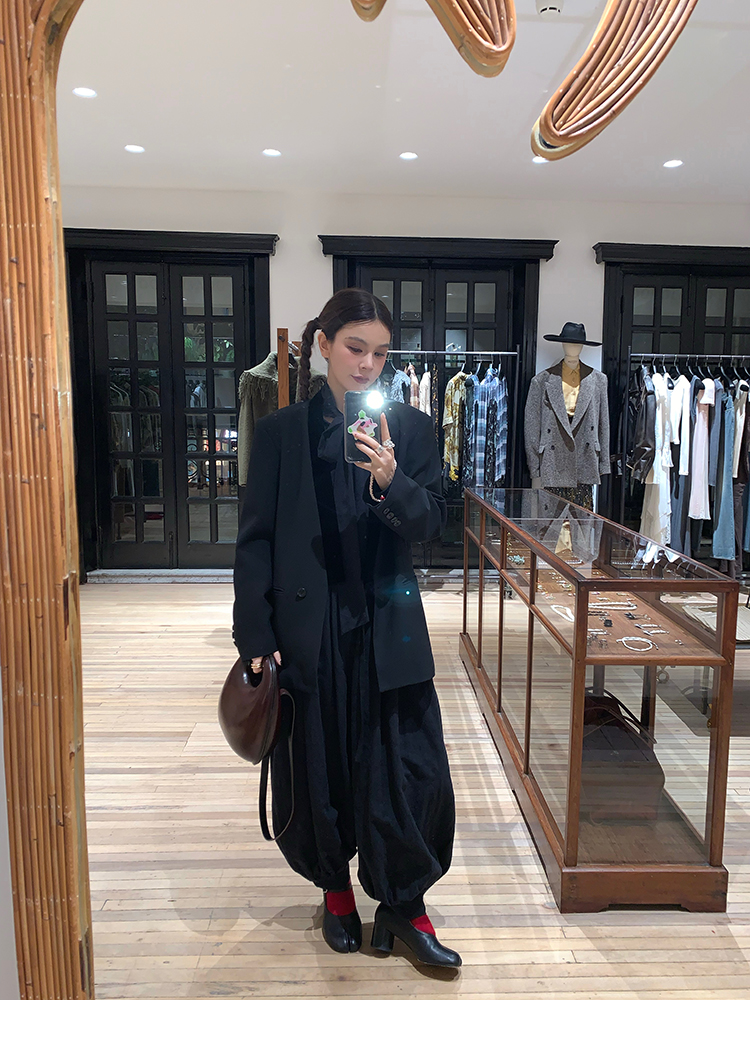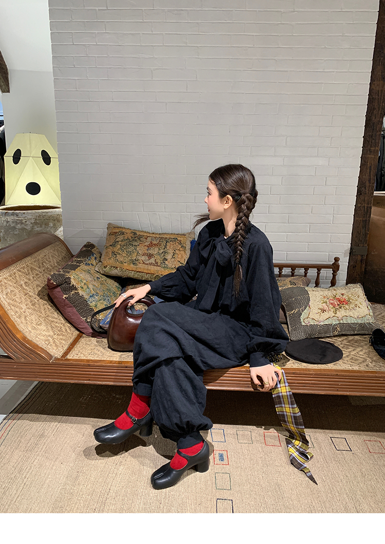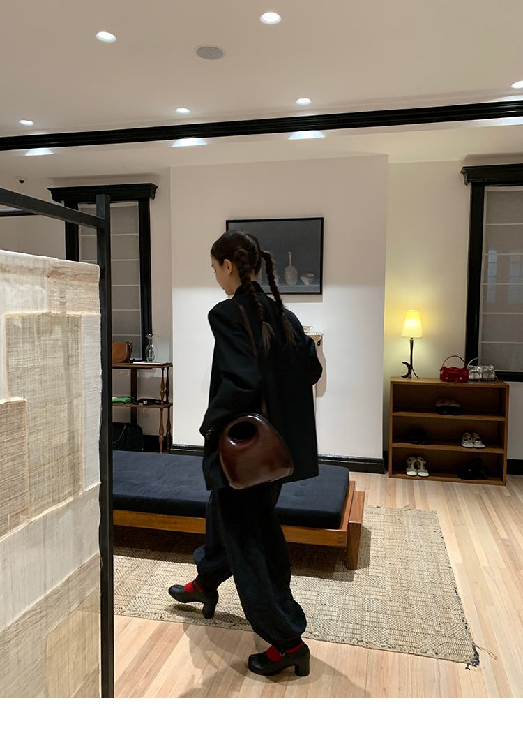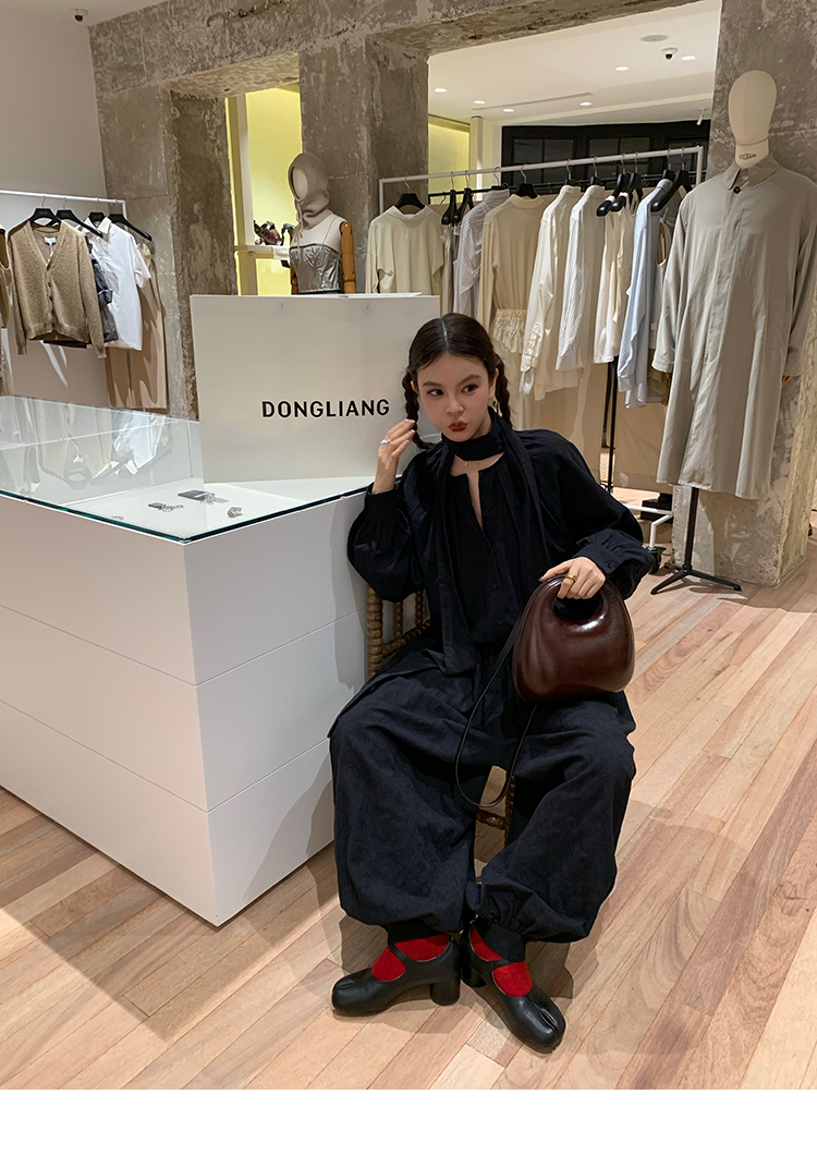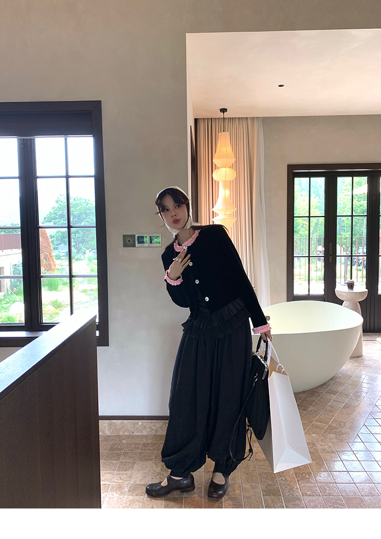 LRIB All blcak attitude black tie jacquard shirt bloomers set