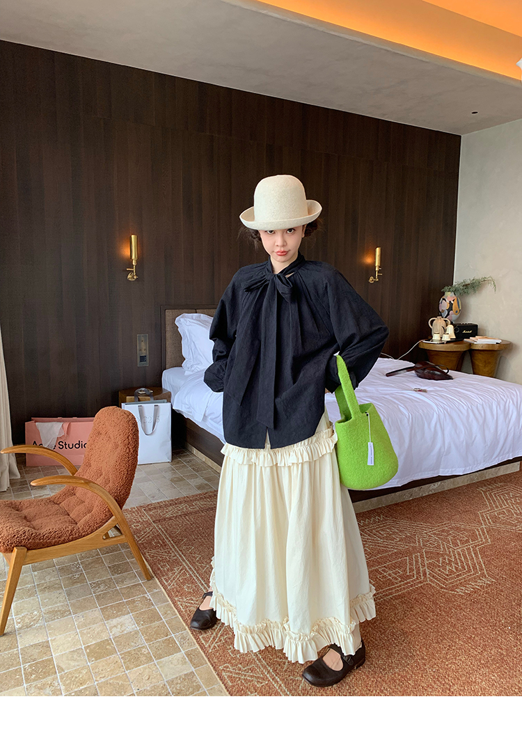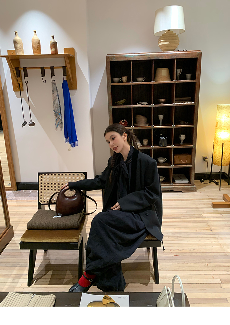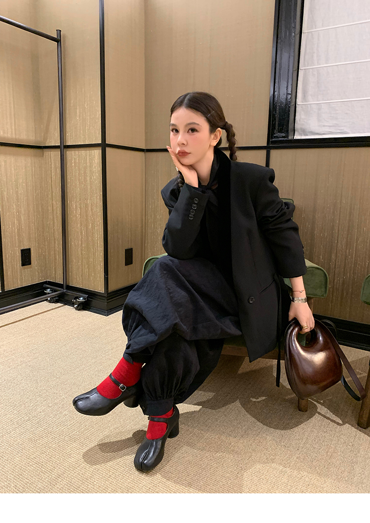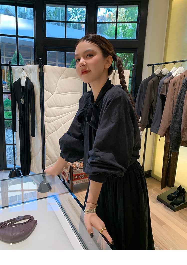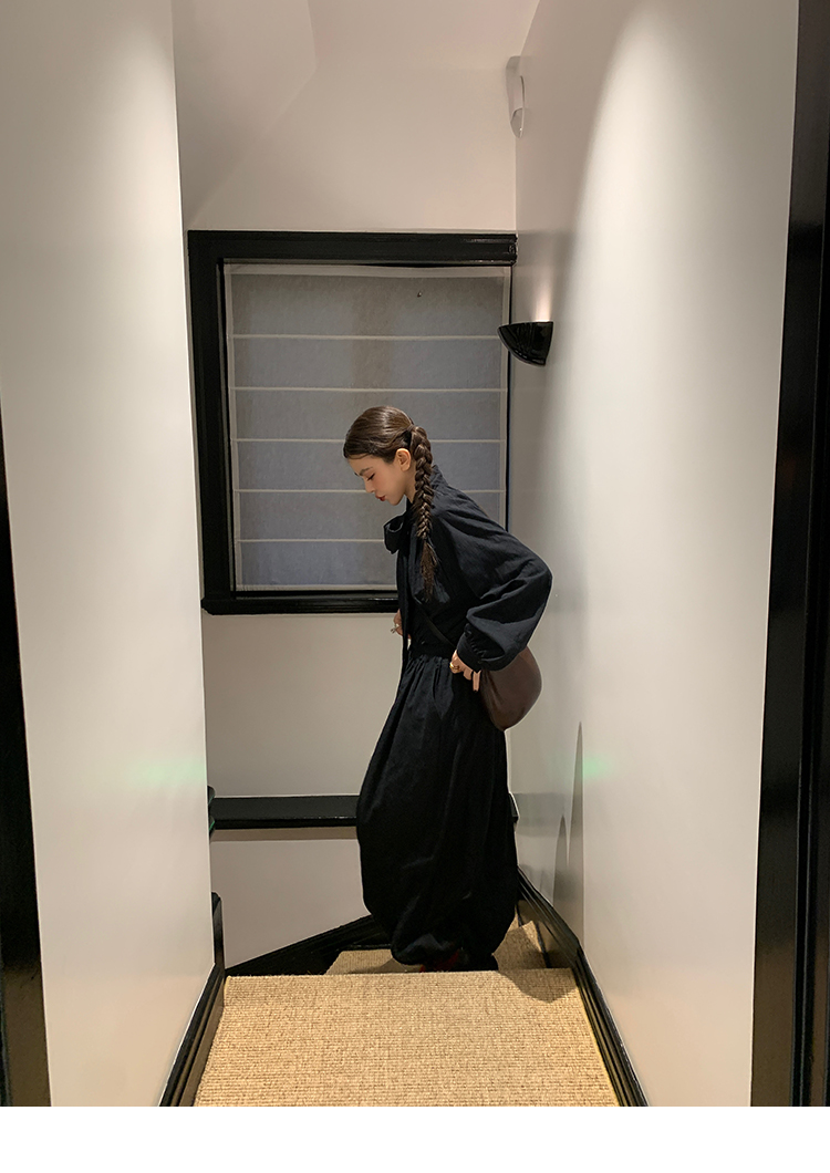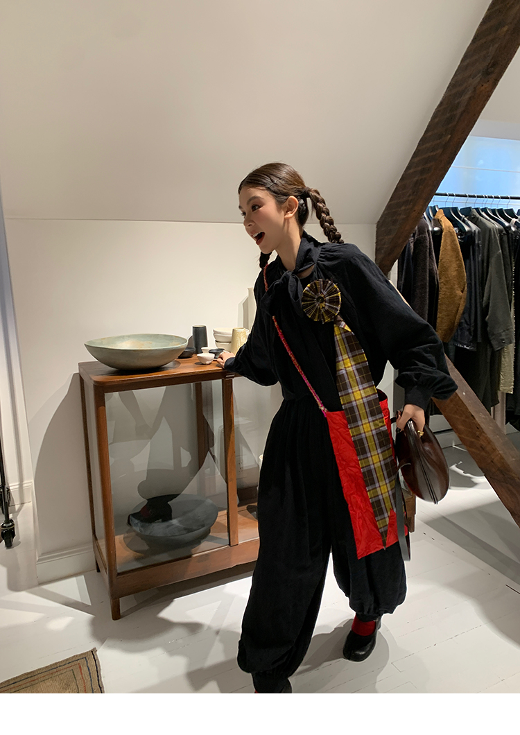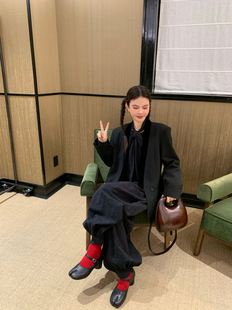 LRIB All blcak attitude black tie jacquard shirt bloomers set