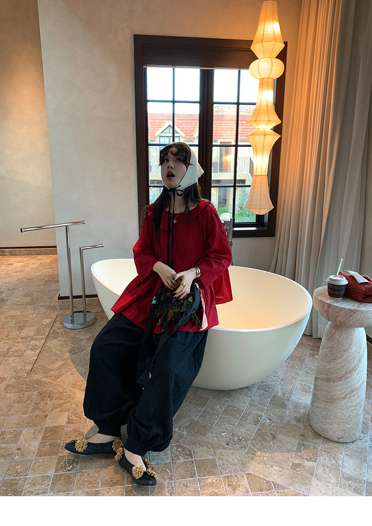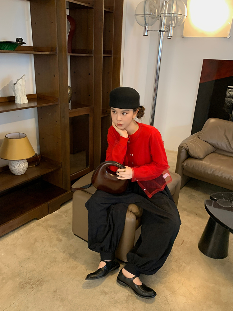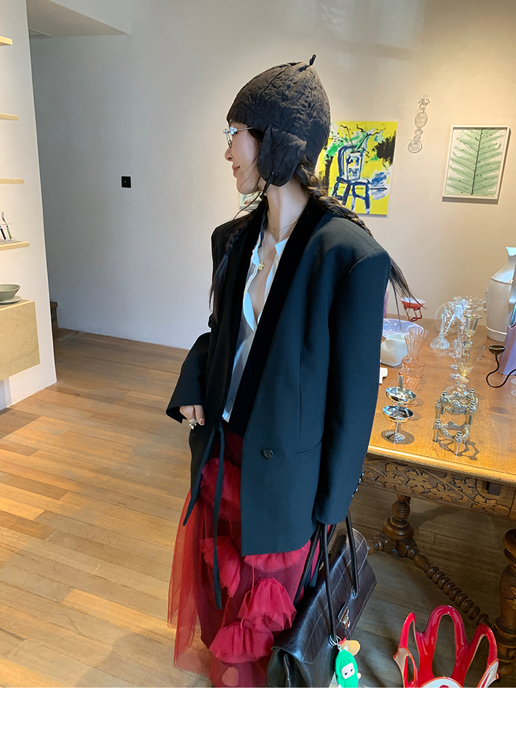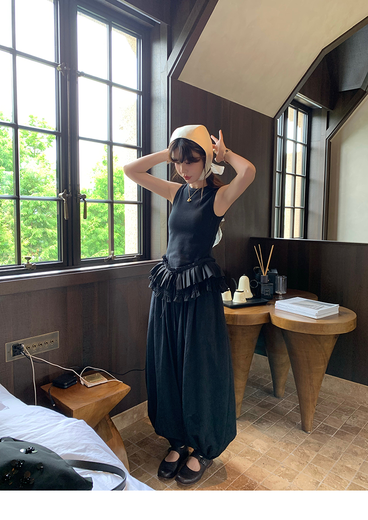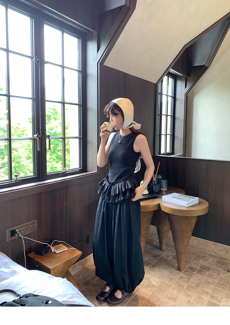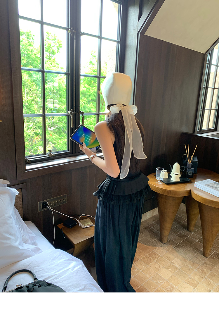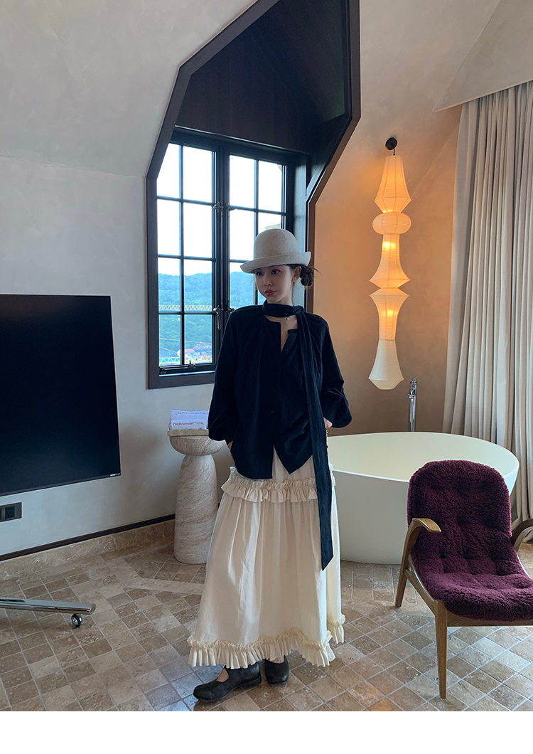 LRIB All blcak attitude black tie jacquard shirt bloomers set