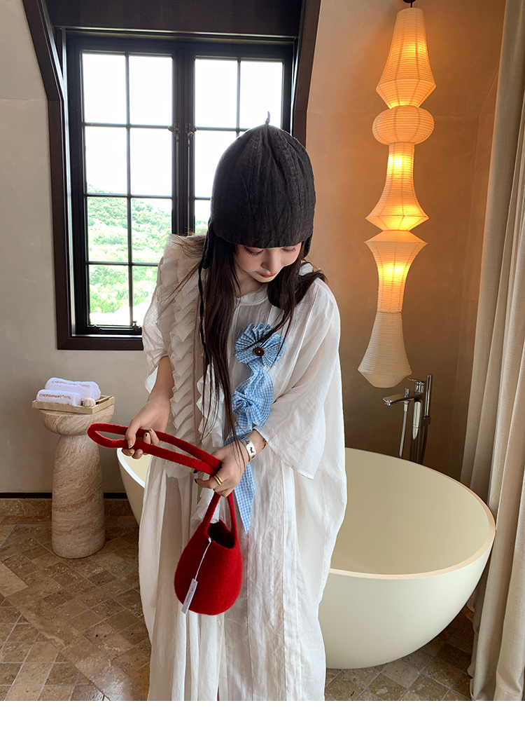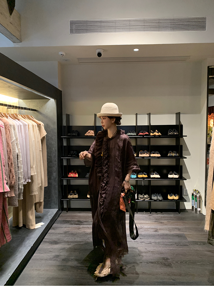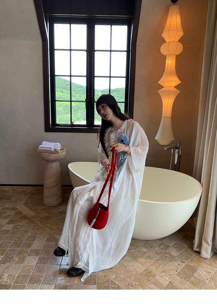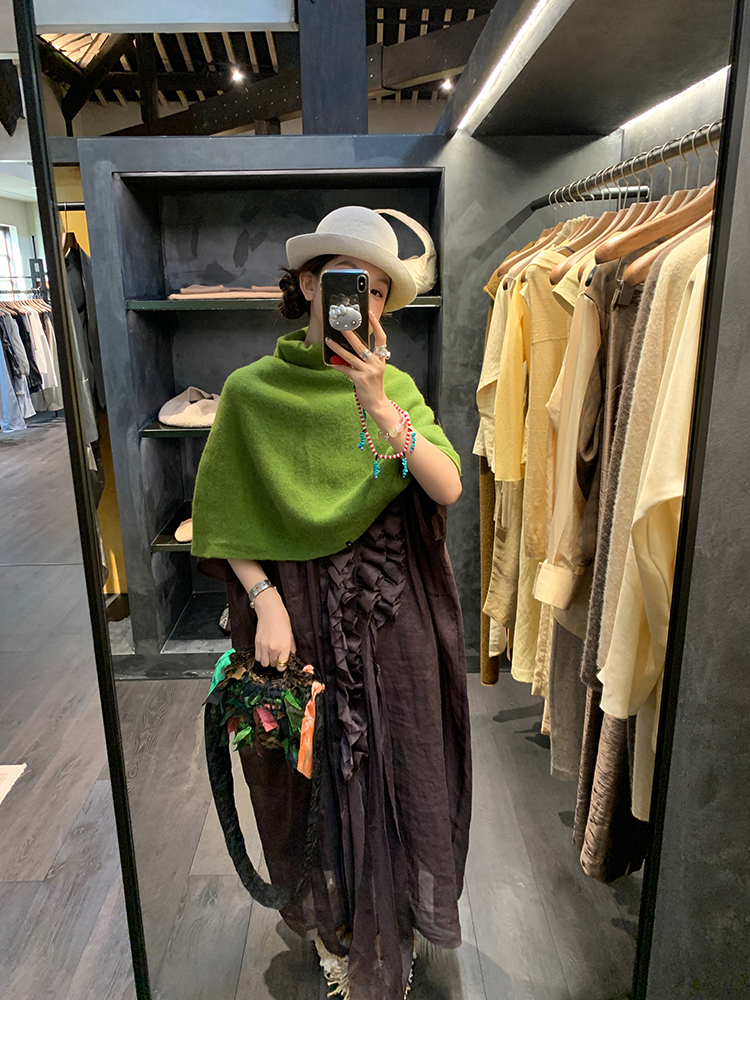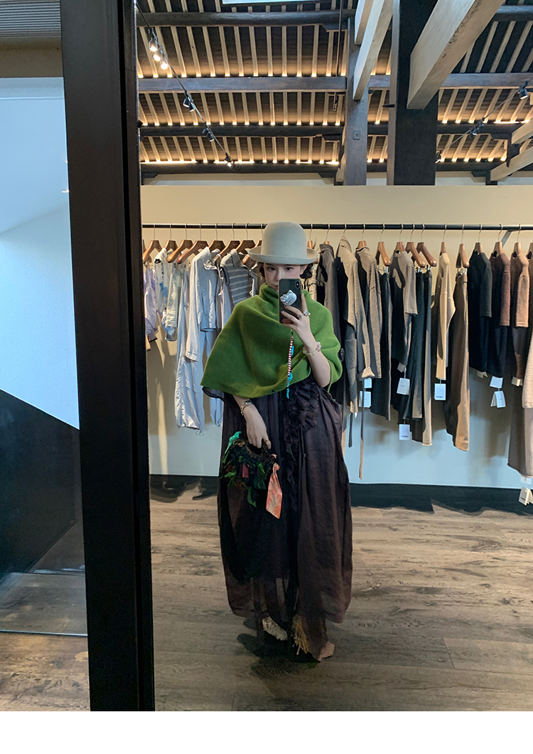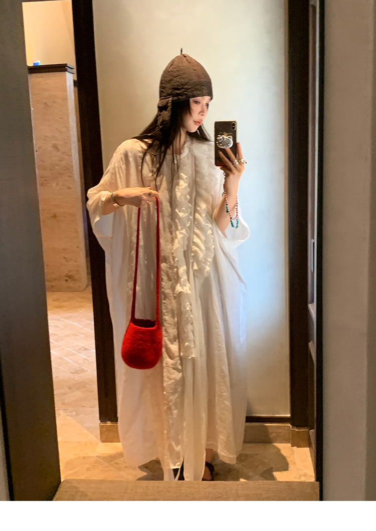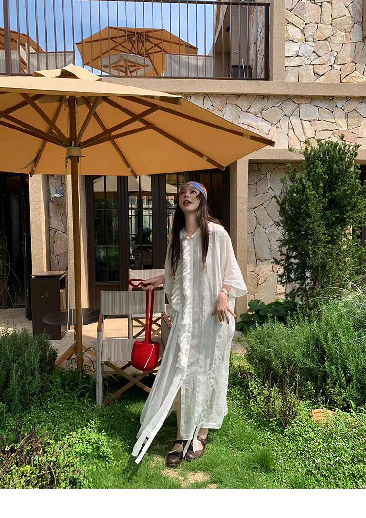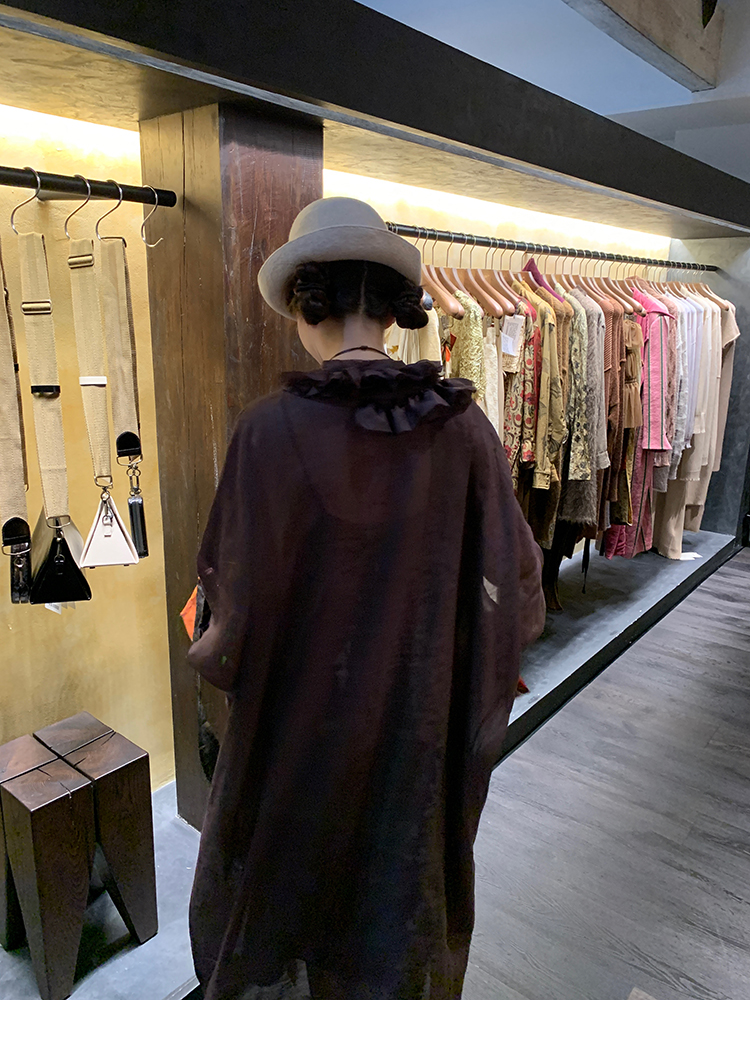 LRIB all-ramie multi-layered pleated lace withered ribbon cape dress
