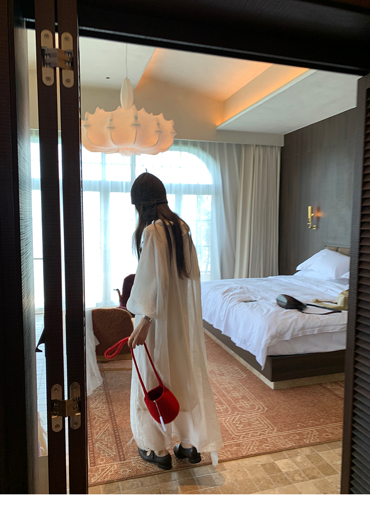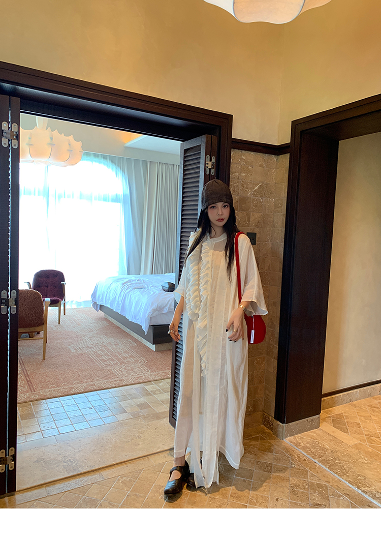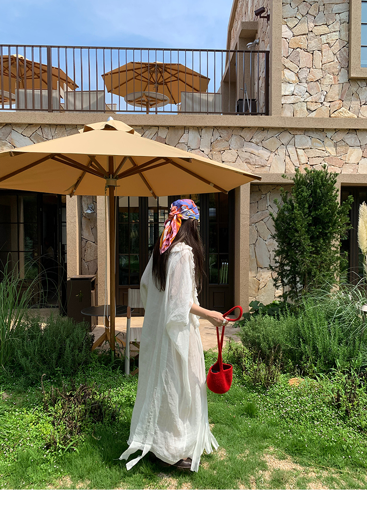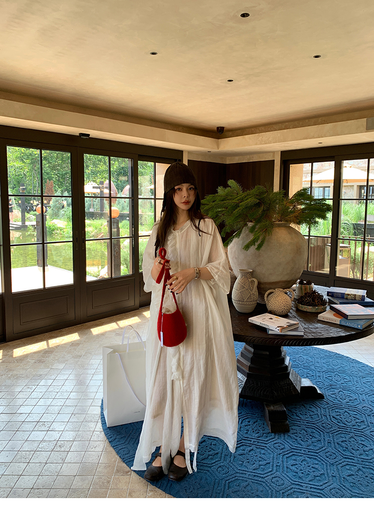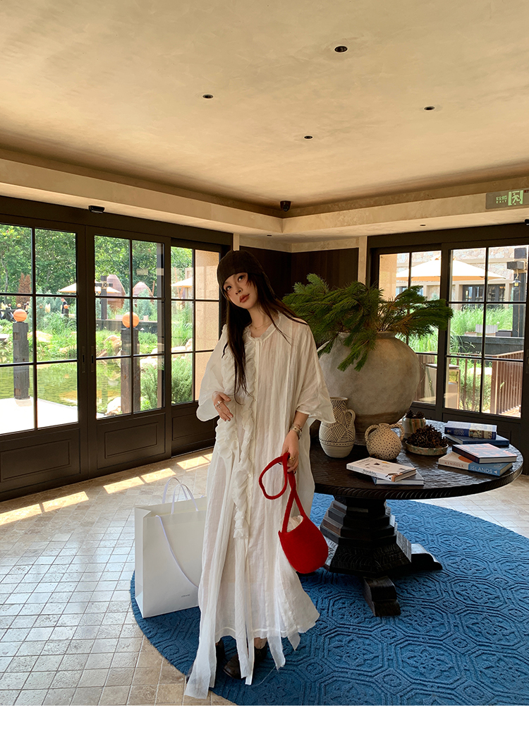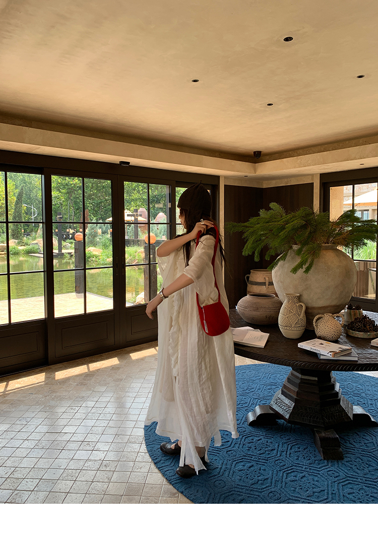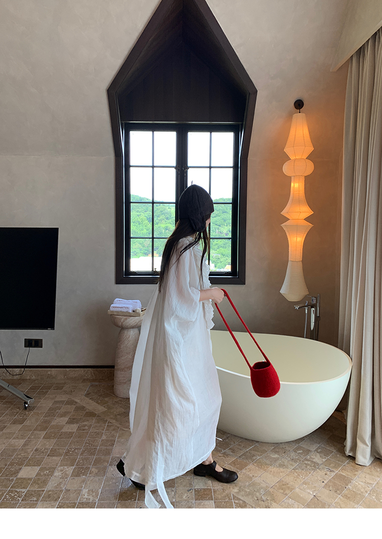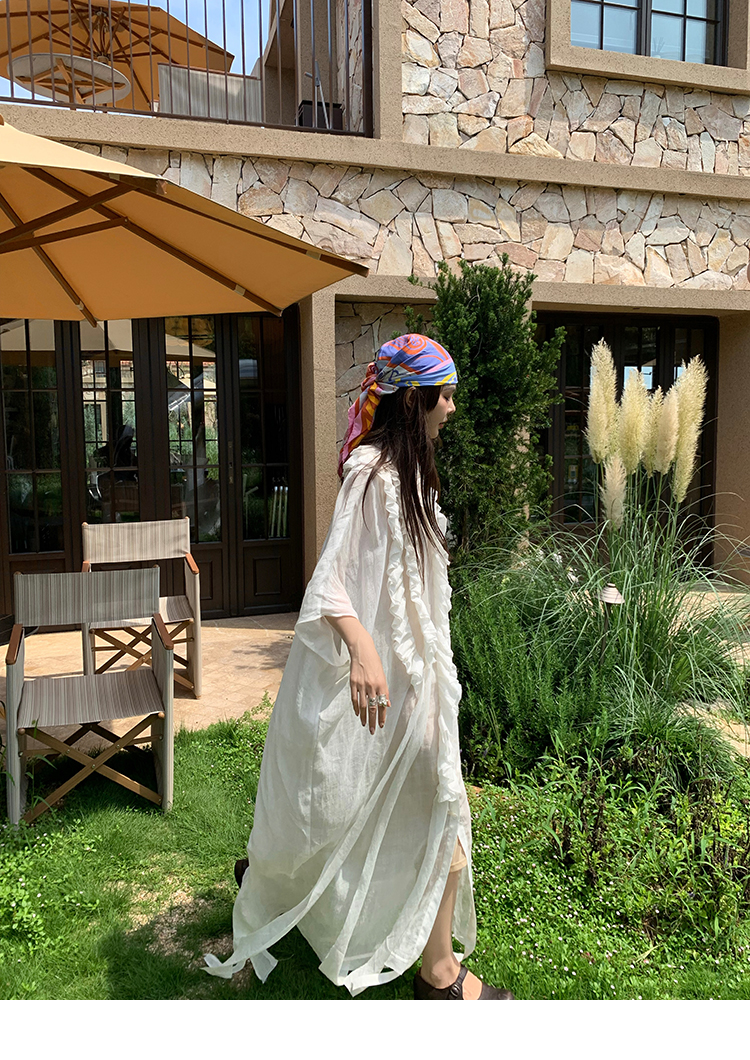 LRIB all-ramie multi-layered pleated lace withered ribbon cape dress