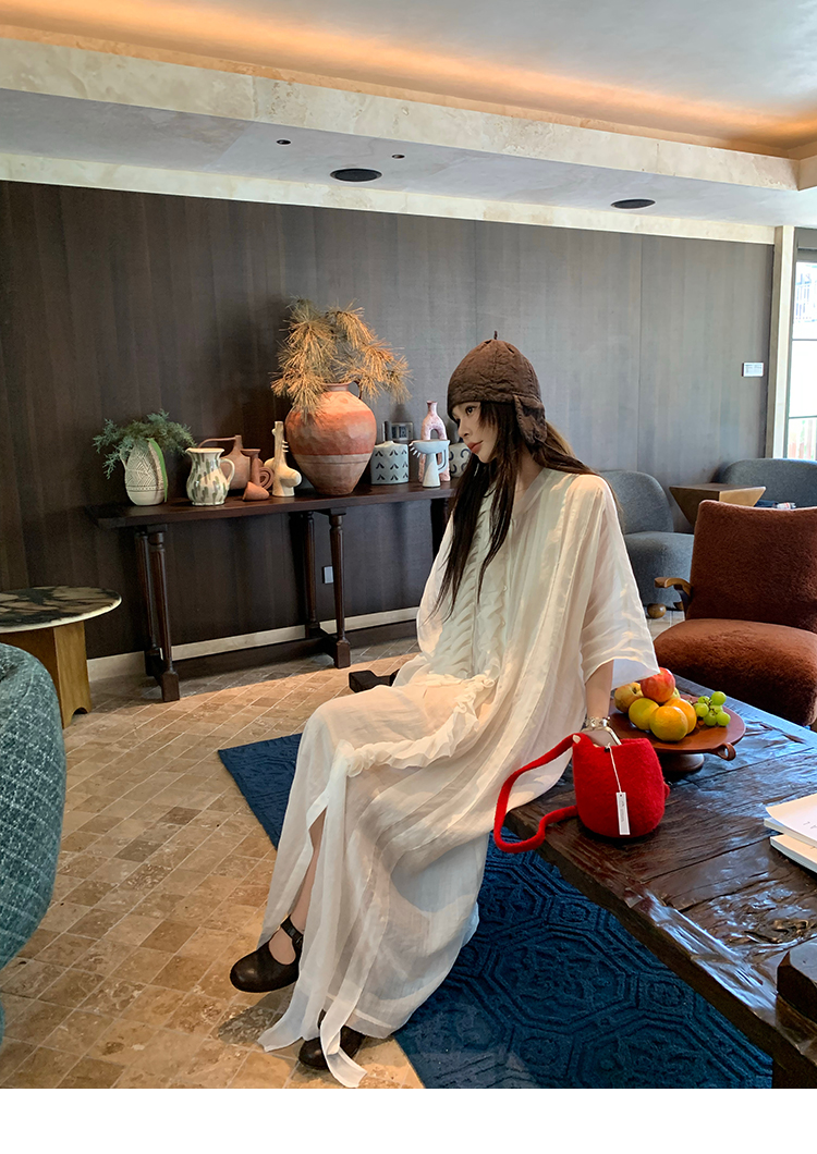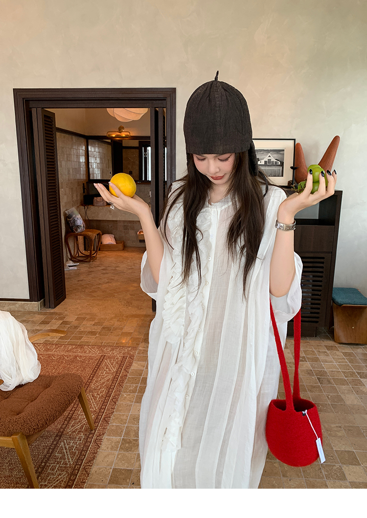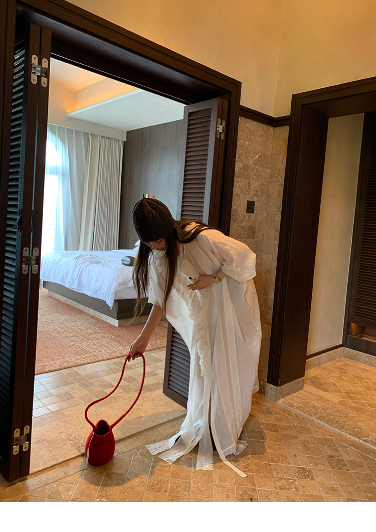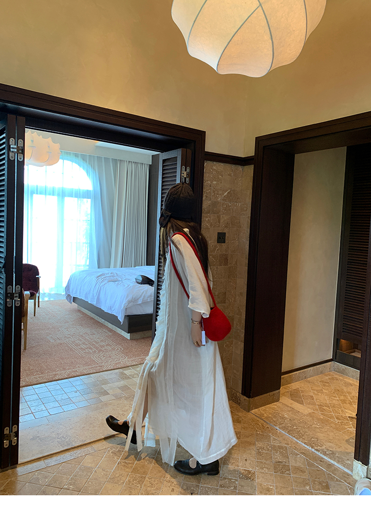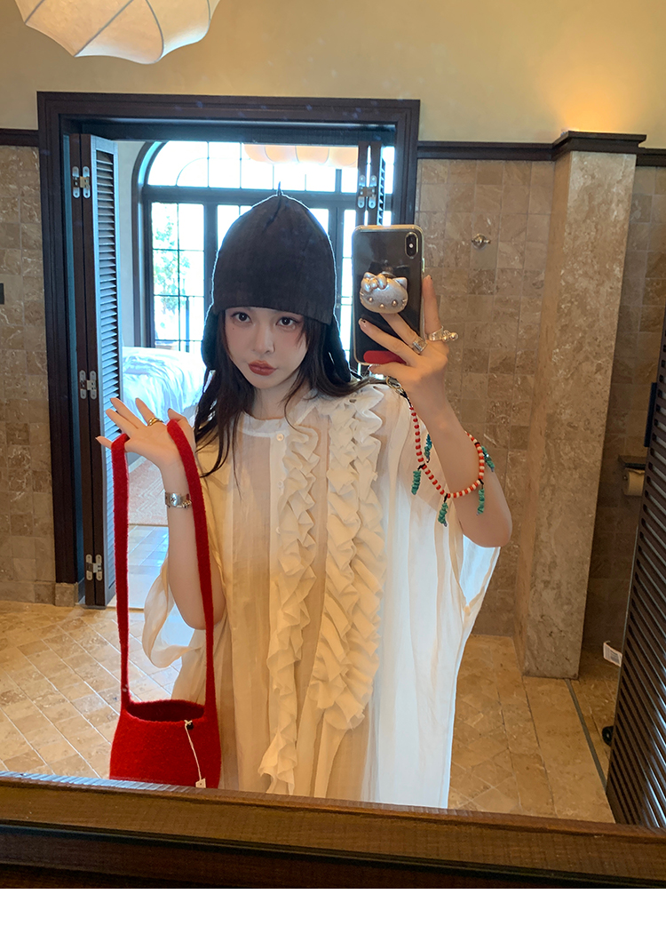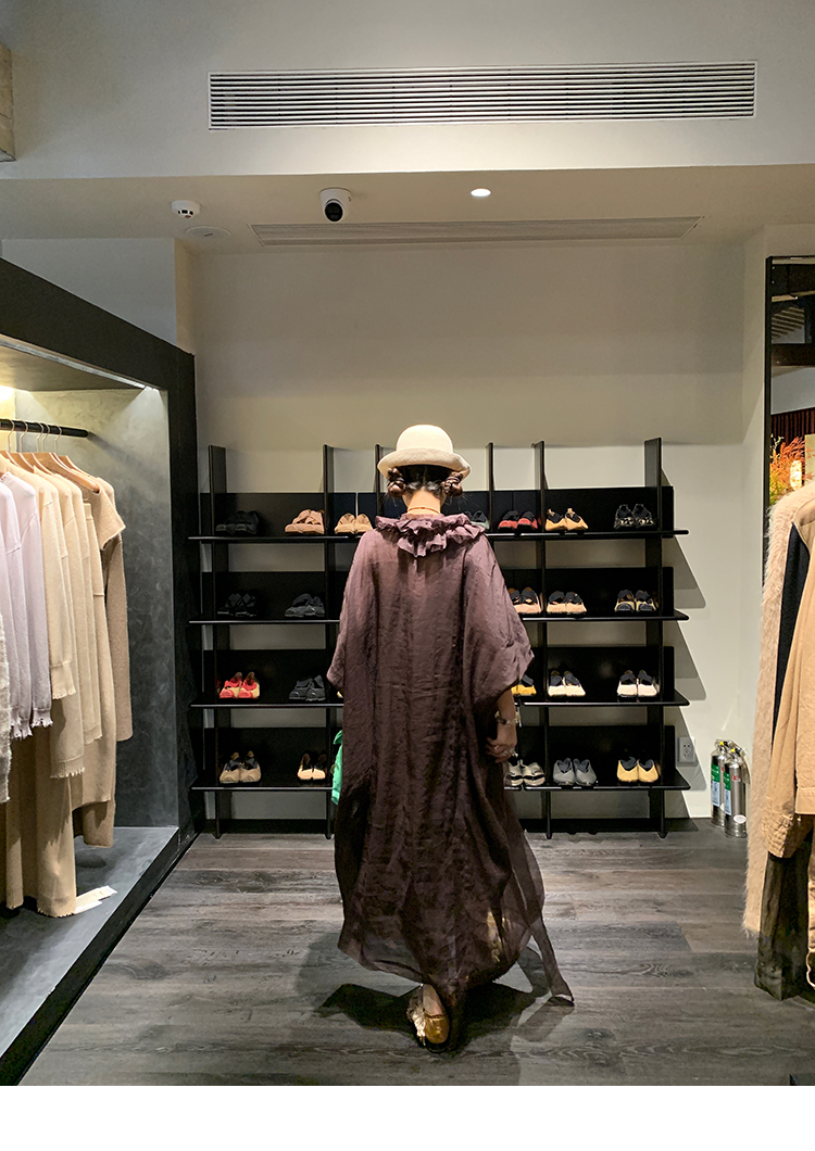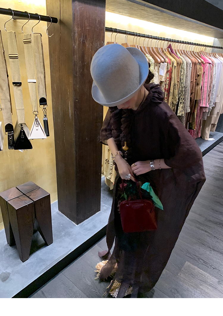 LRIB all-ramie multi-layered pleated lace withered ribbon cape dress