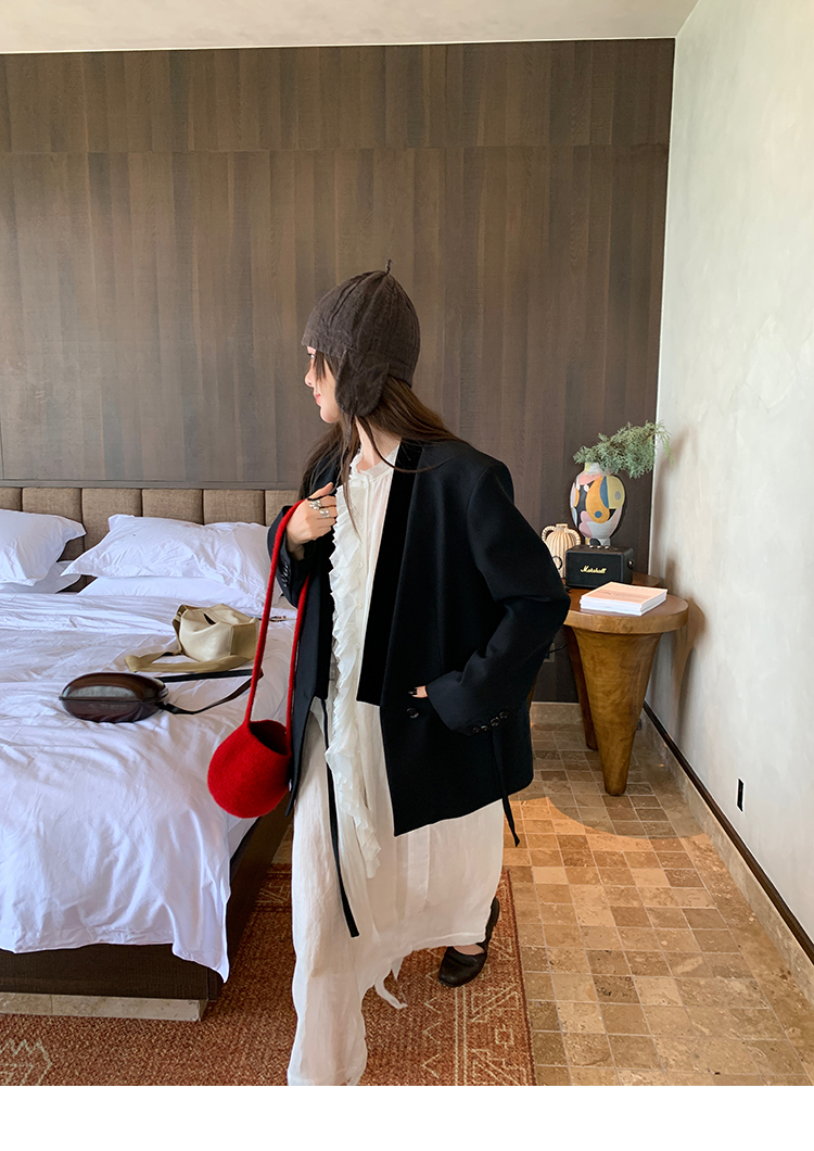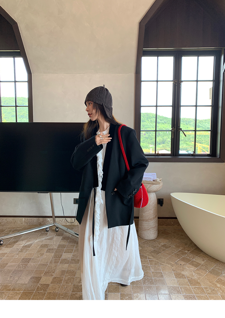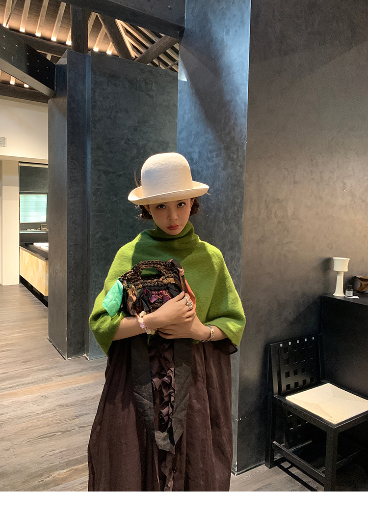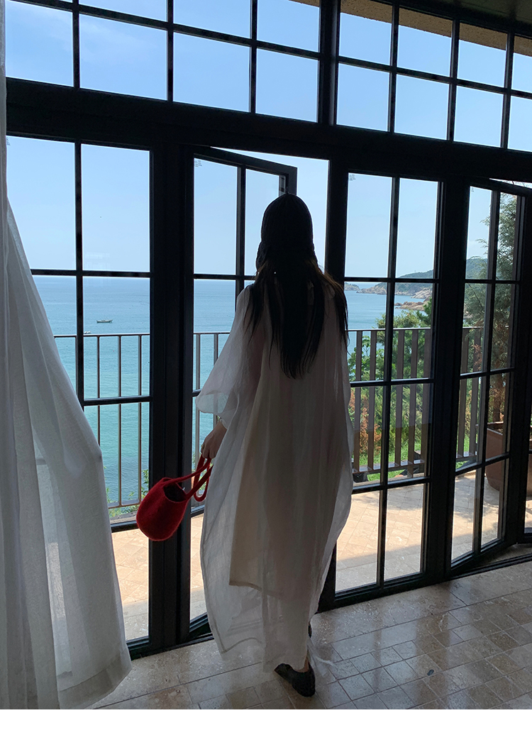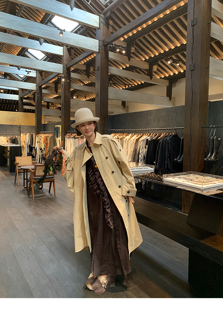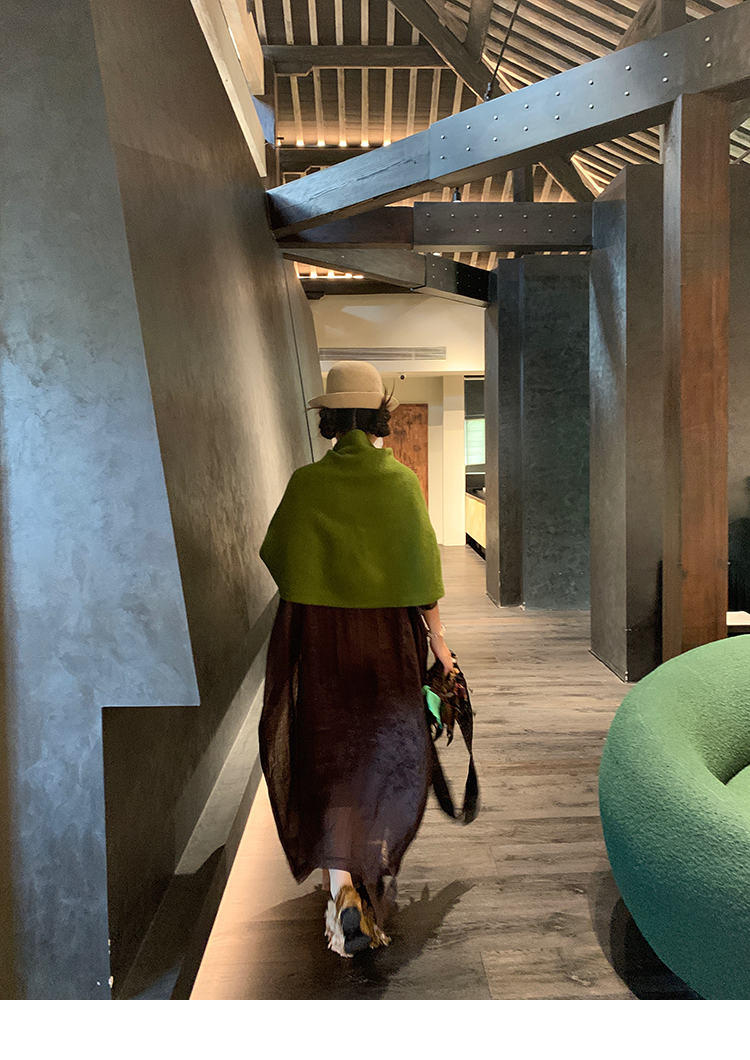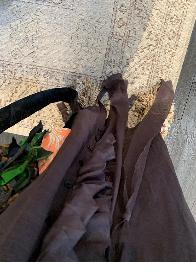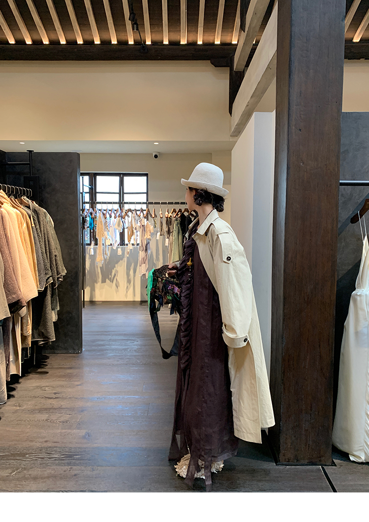 LRIB all-ramie multi-layered pleated lace withered ribbon cape dress