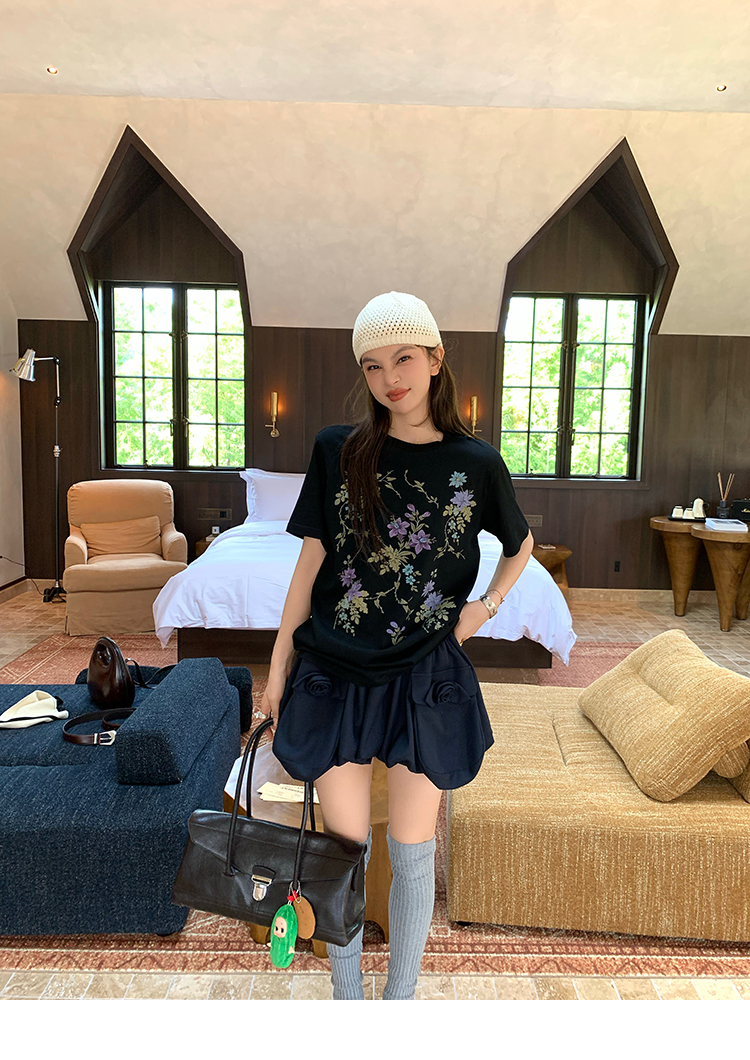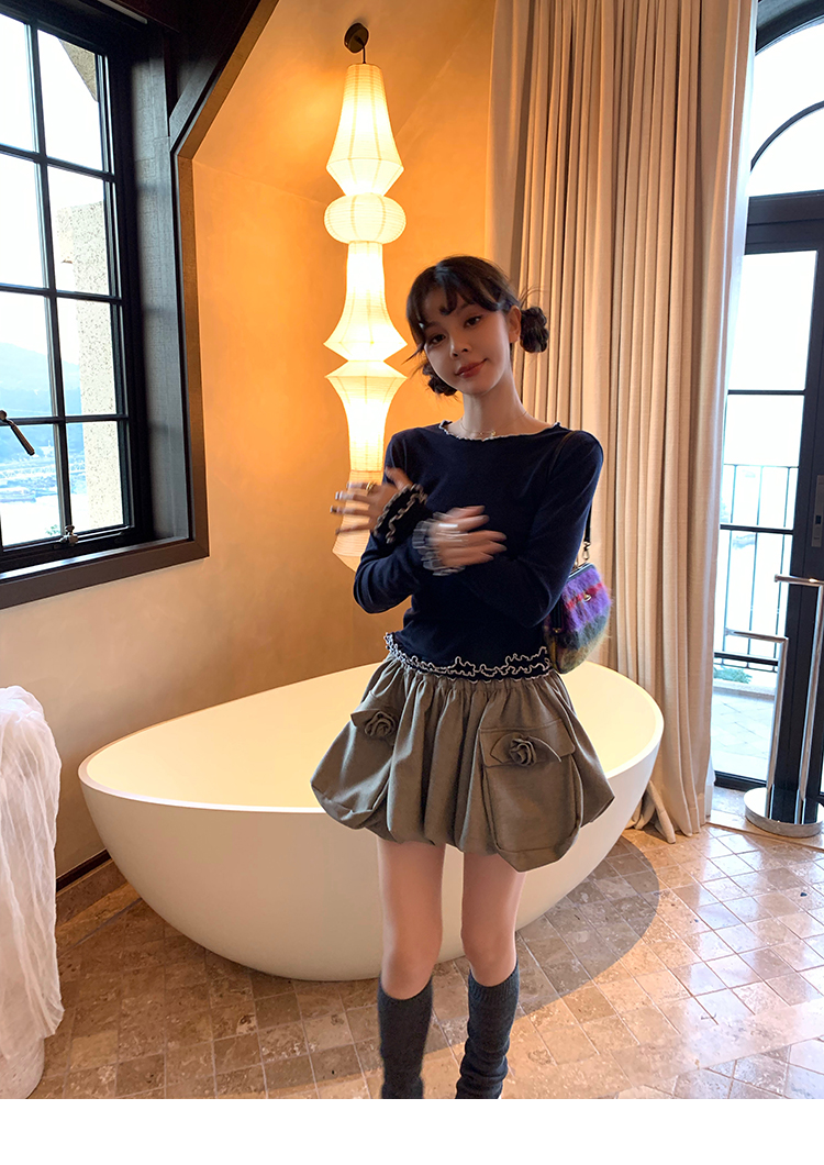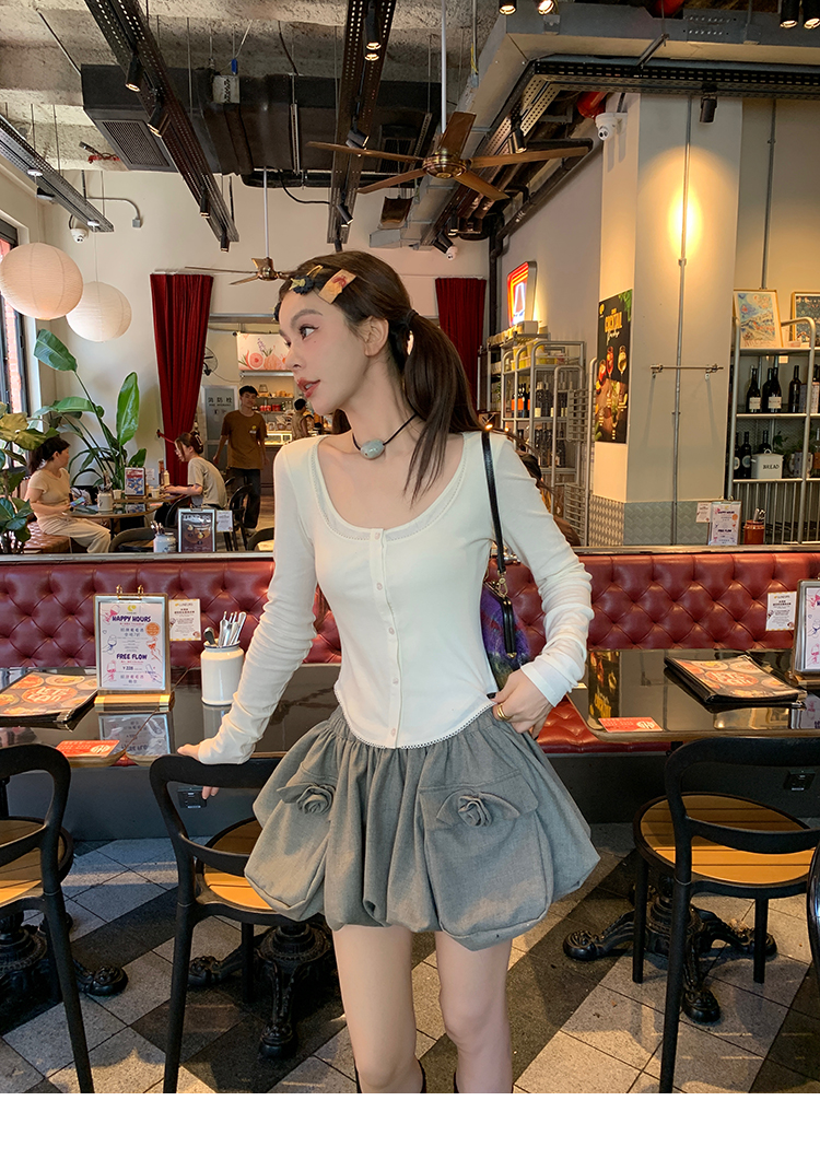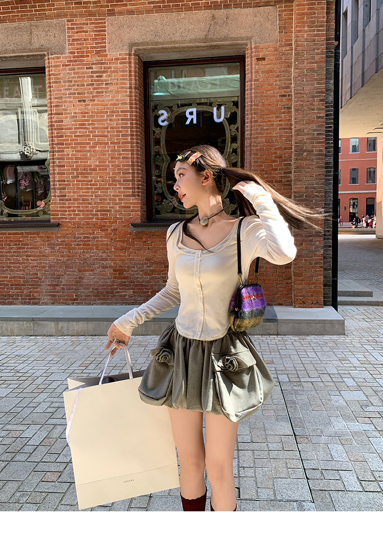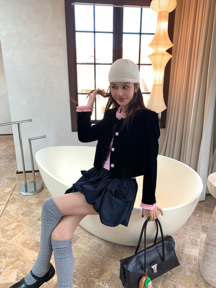 LRIB romantic buds handmade rose workwear pocket buds short skirt
