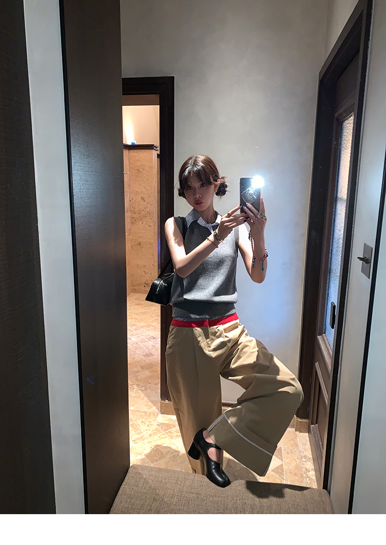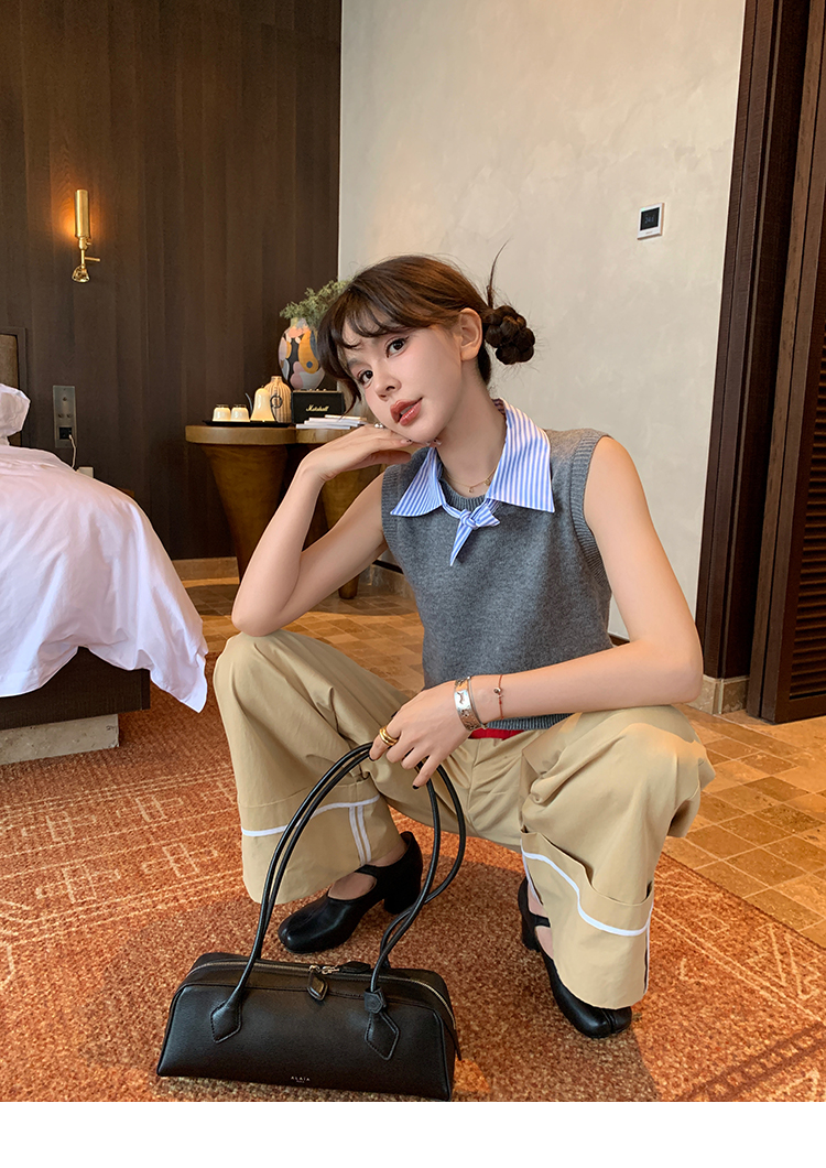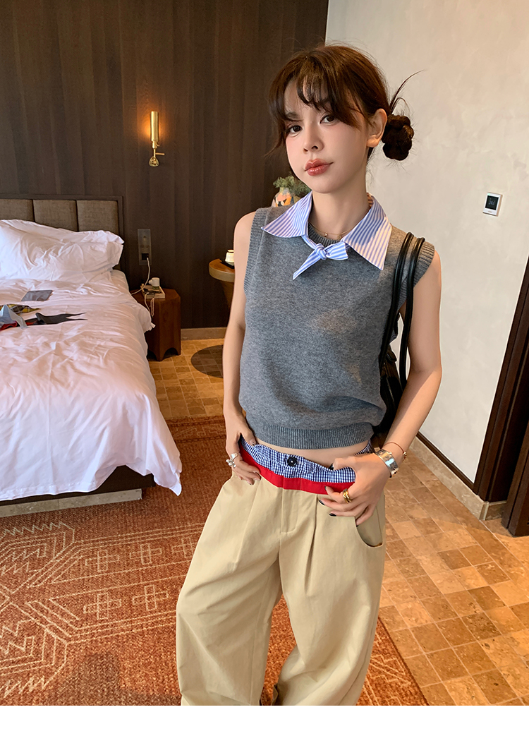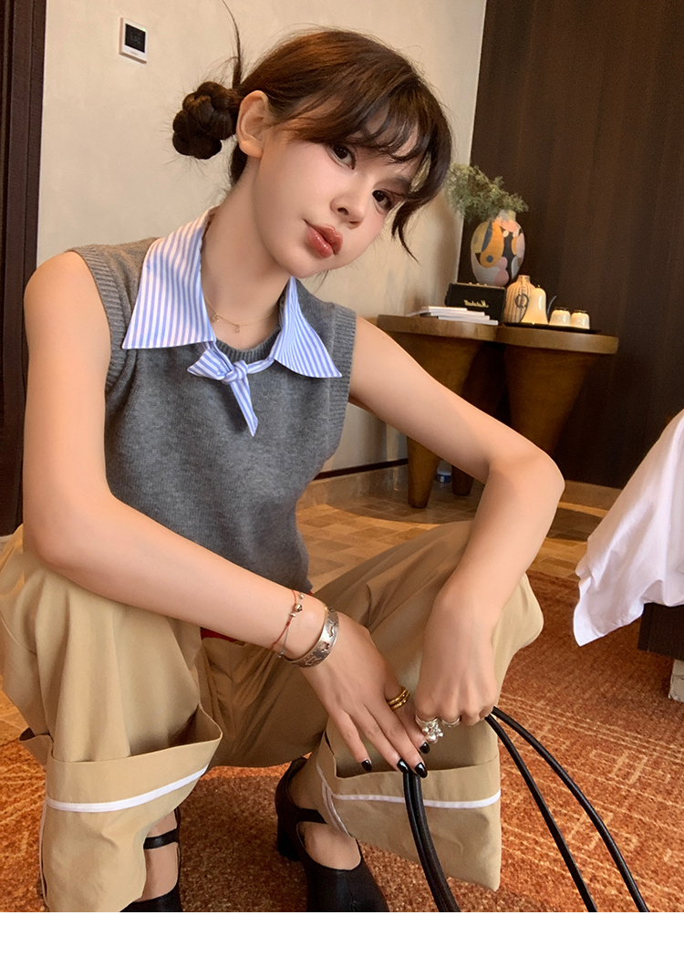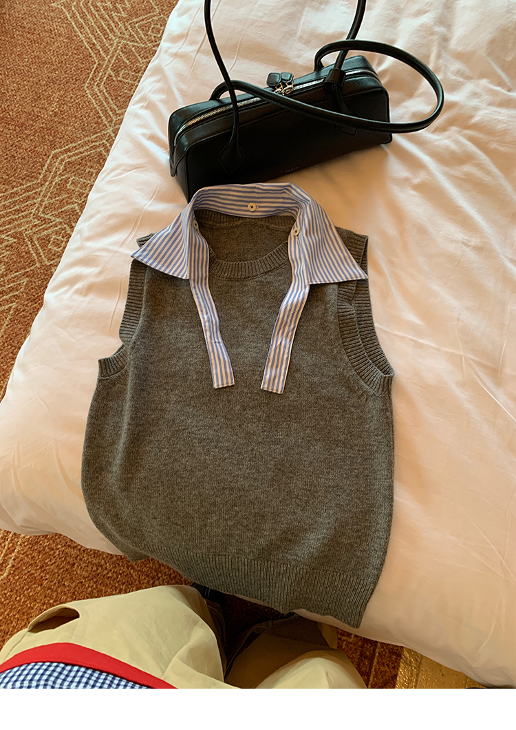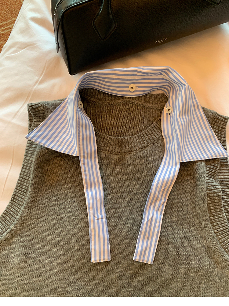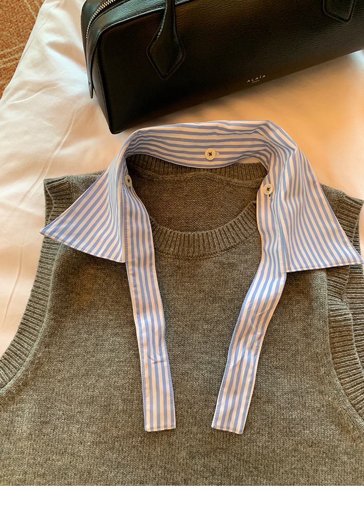 LRIB detachable blue and white striped layered wool knitted vest