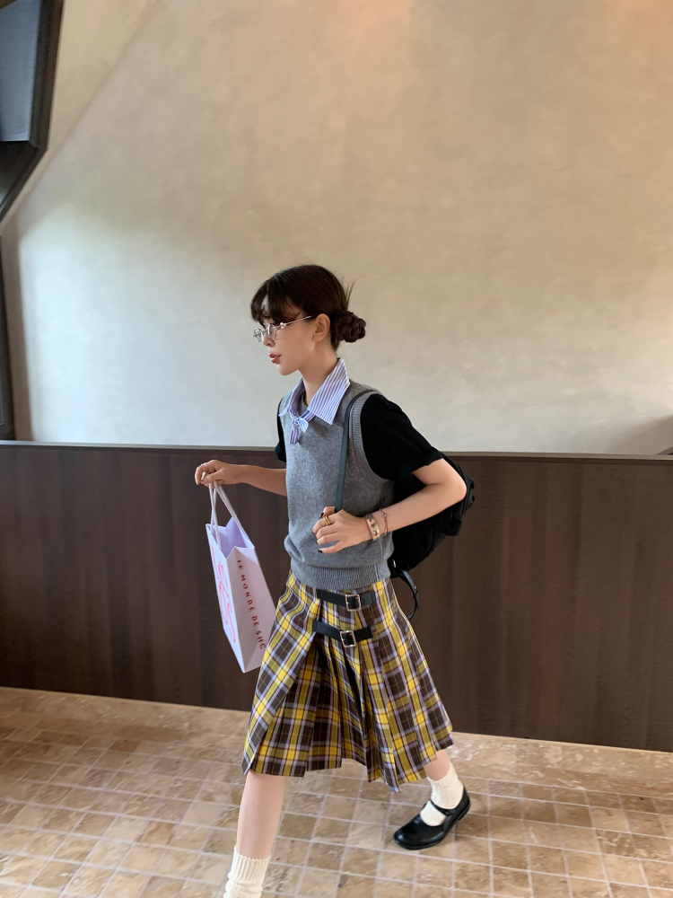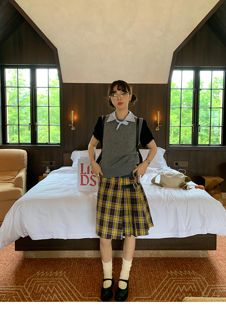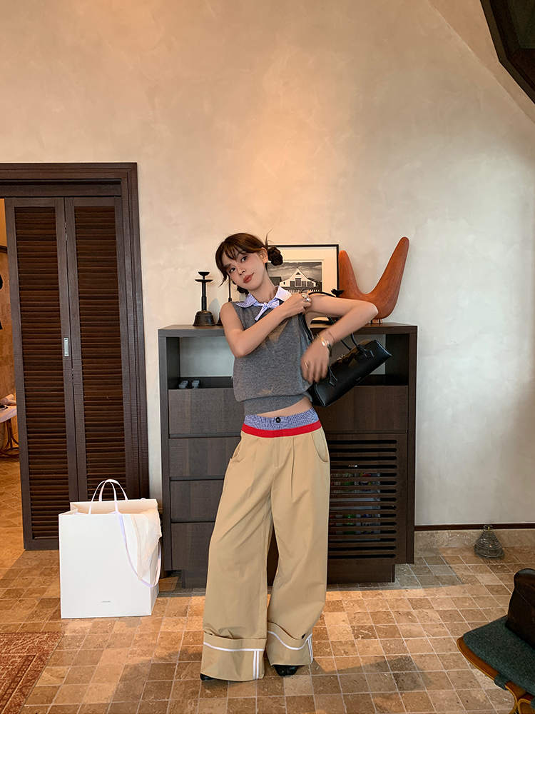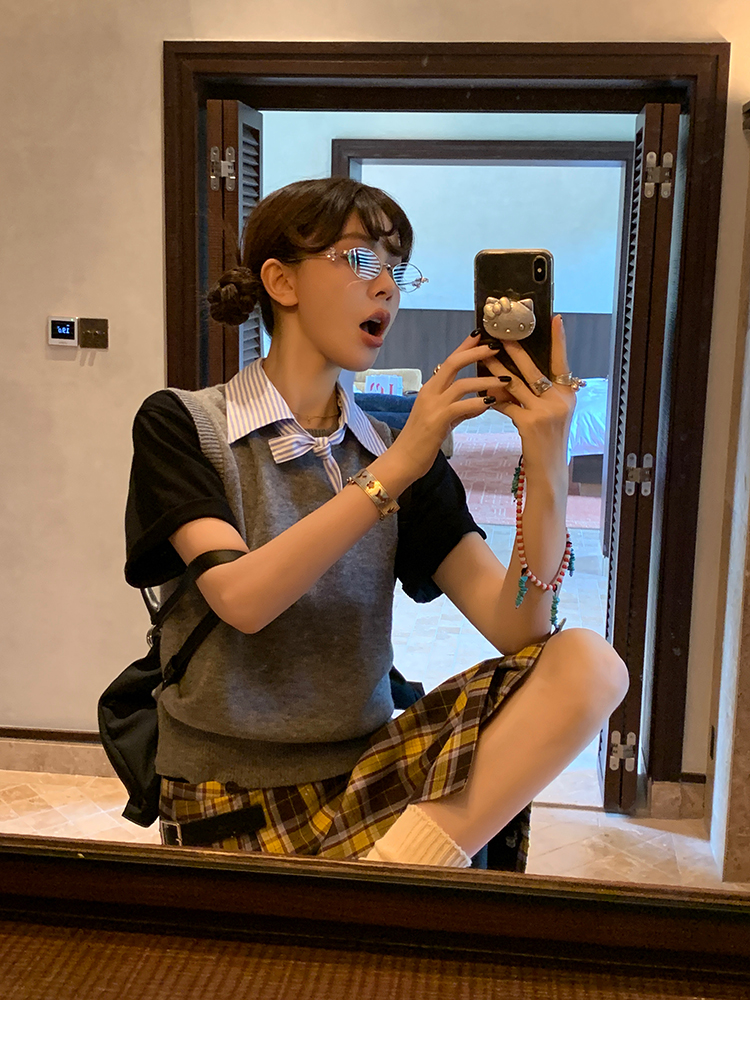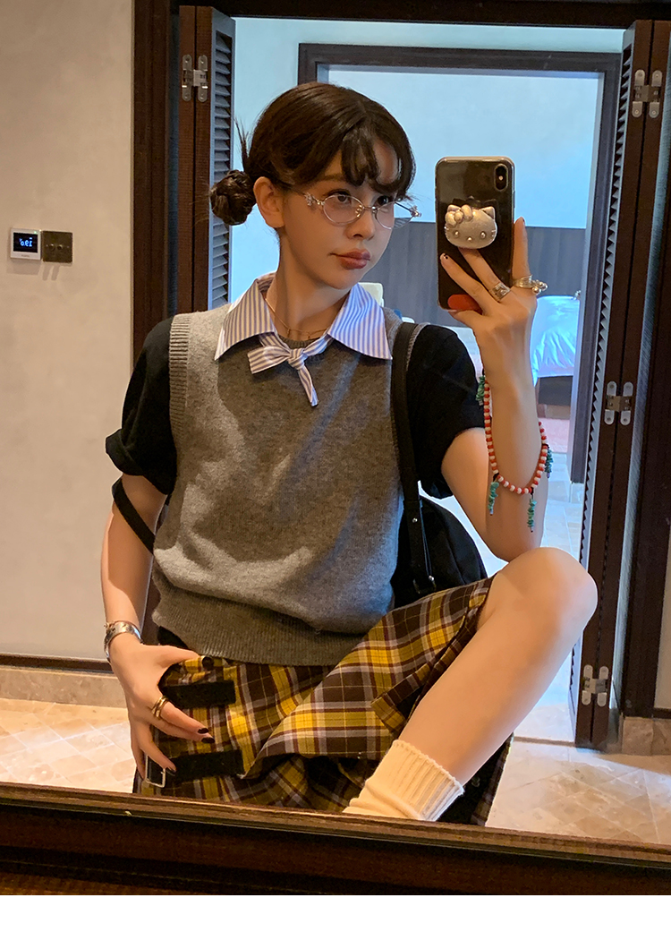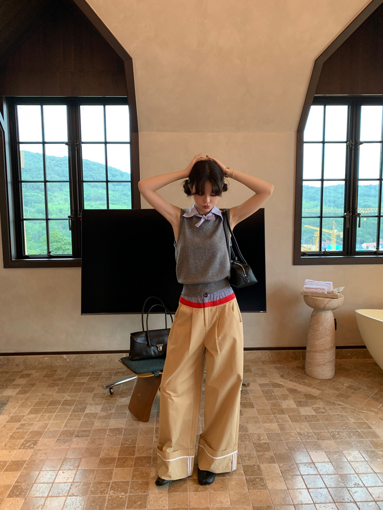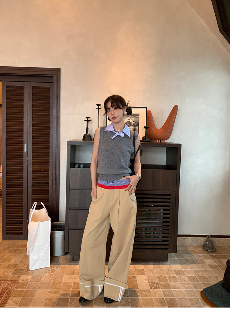 LRIB detachable blue and white striped layered wool knitted vest