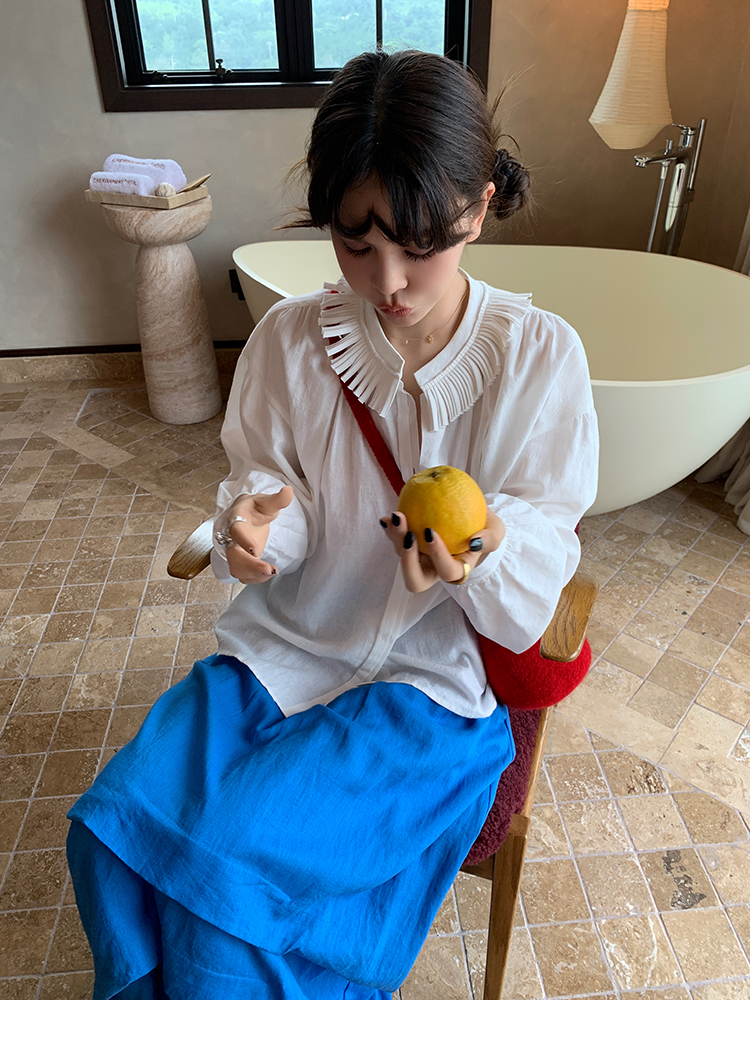 LRIB lazy elegant ramie retro tassel lace collar lantern sleeve shirt