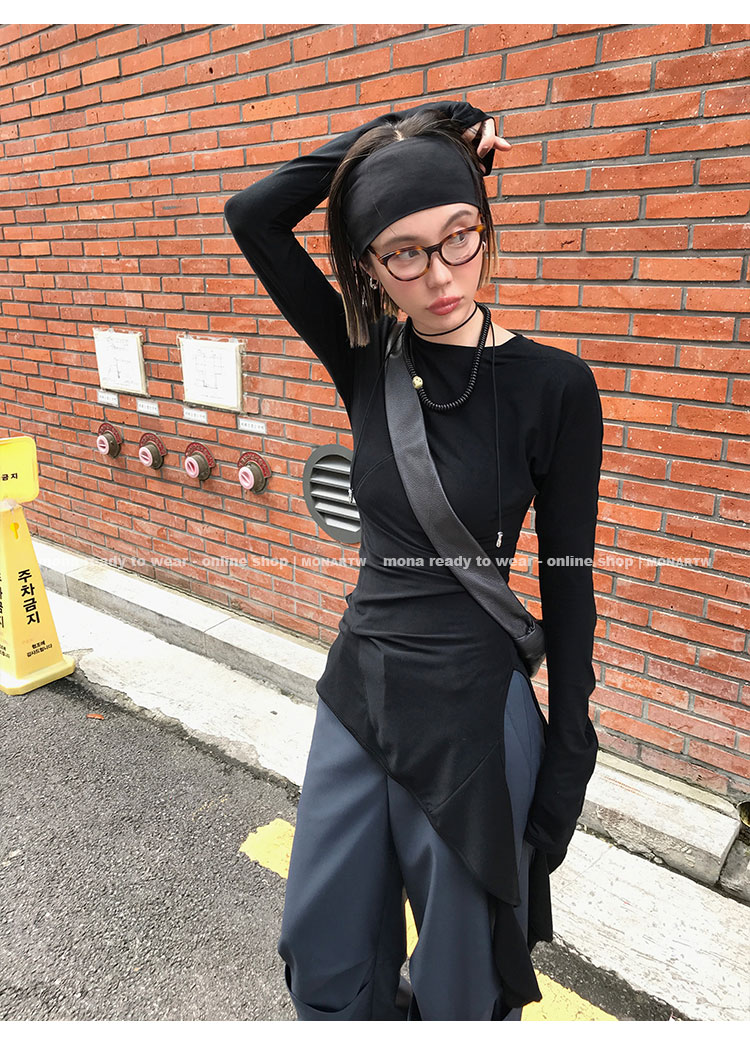 MONARTW asymmetrical temperament slim inner wear long-sleeved top