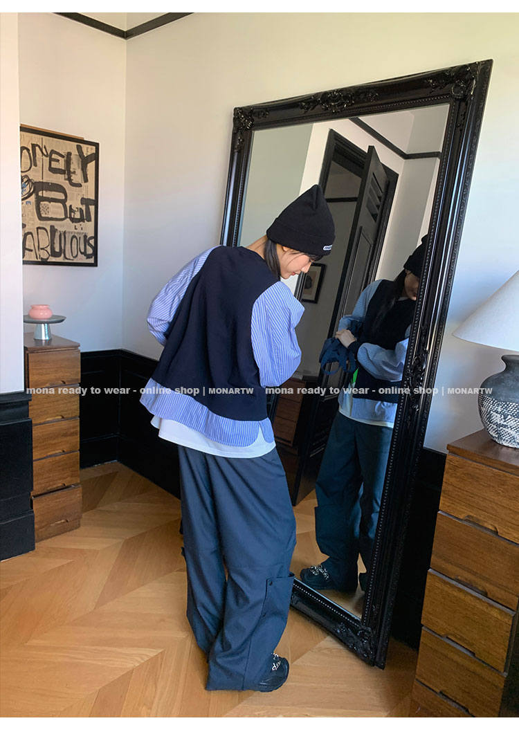 MONARTW Striped Casual Loose Splicing Sweater