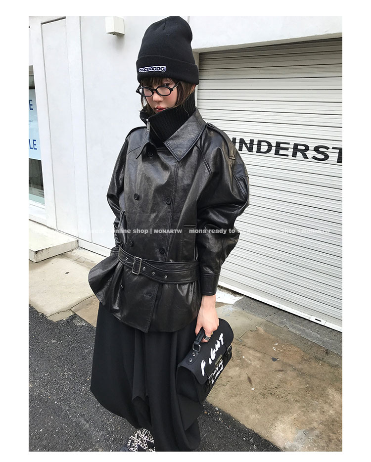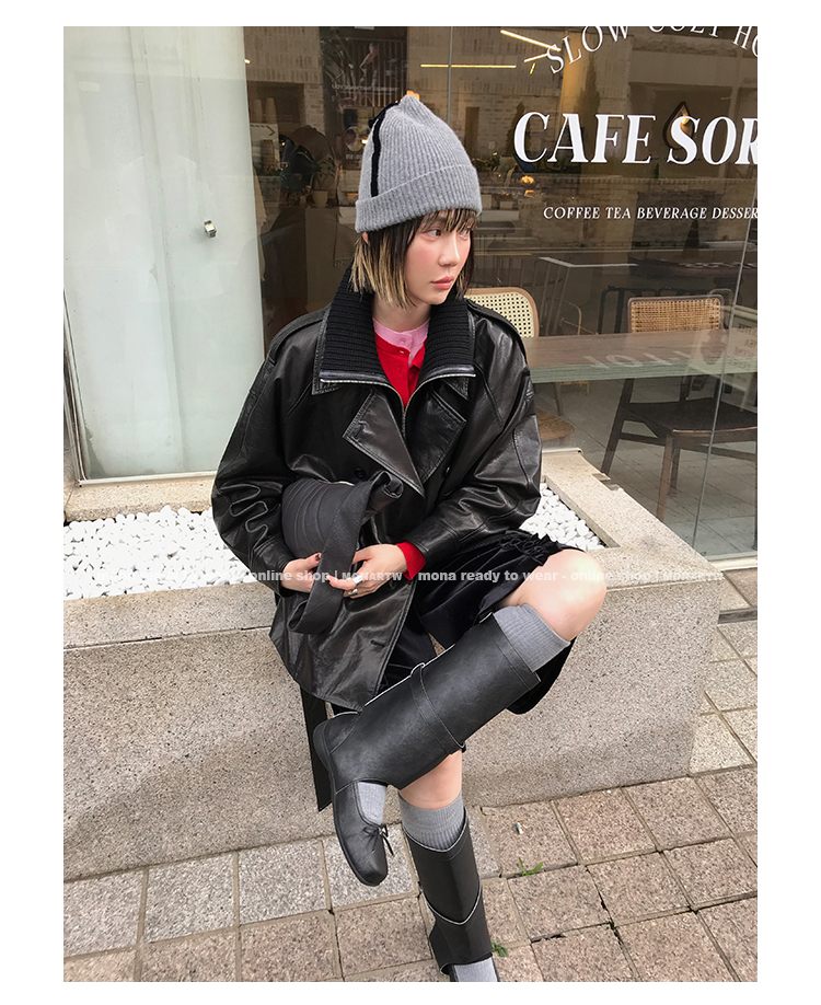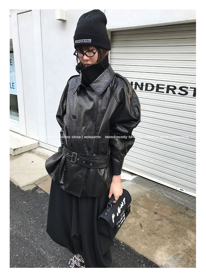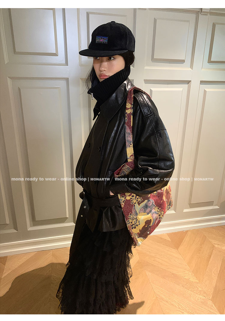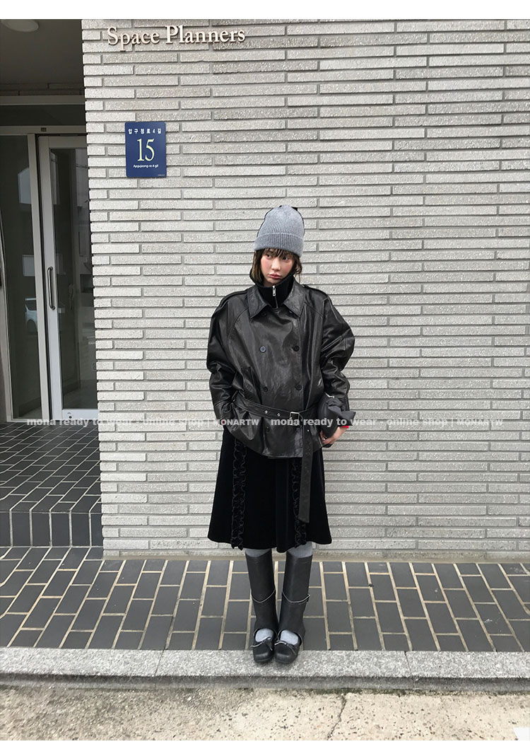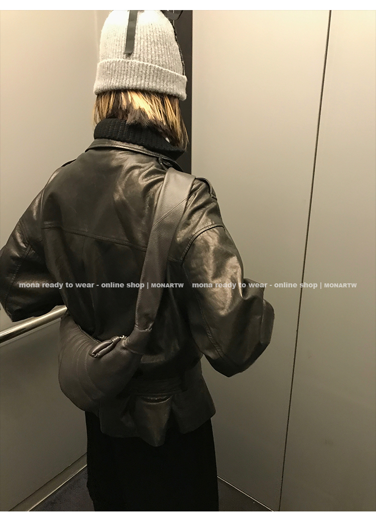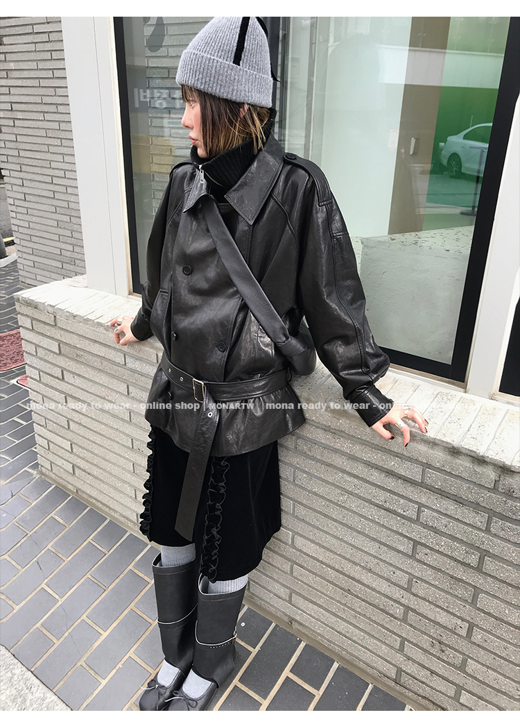 MONARTW vintage waxed sheepskin wool black classic fur coat