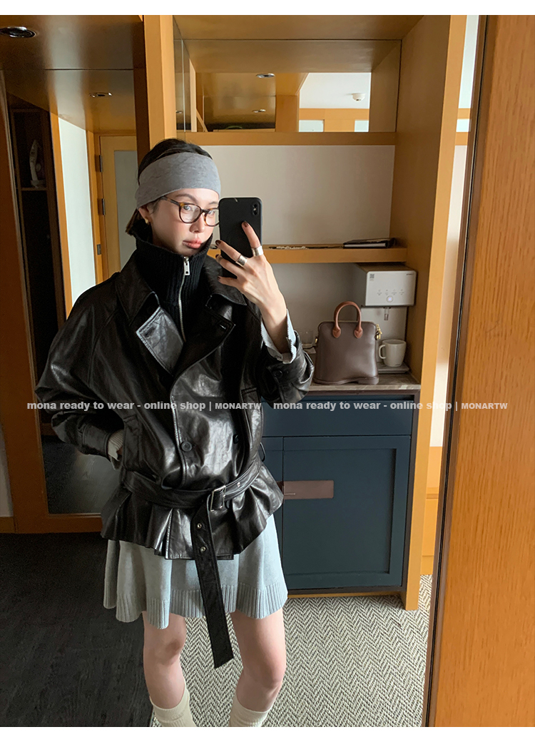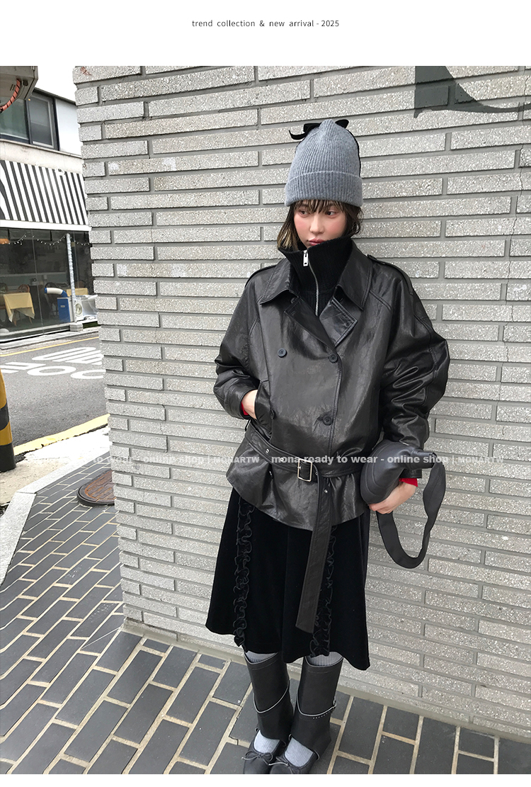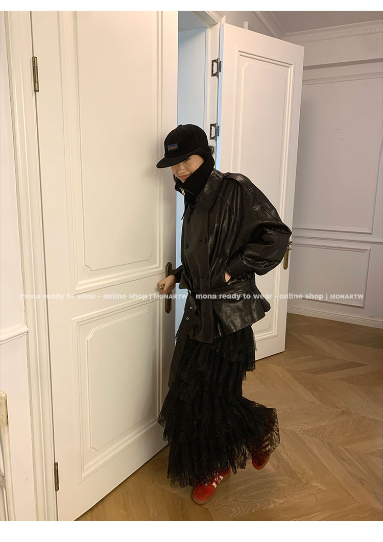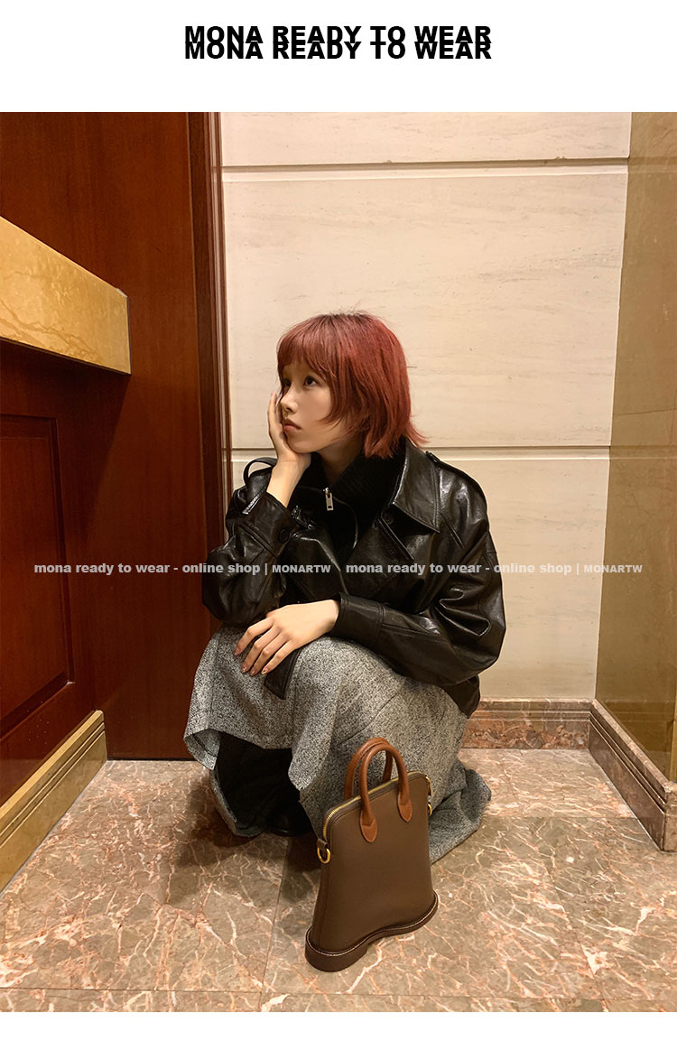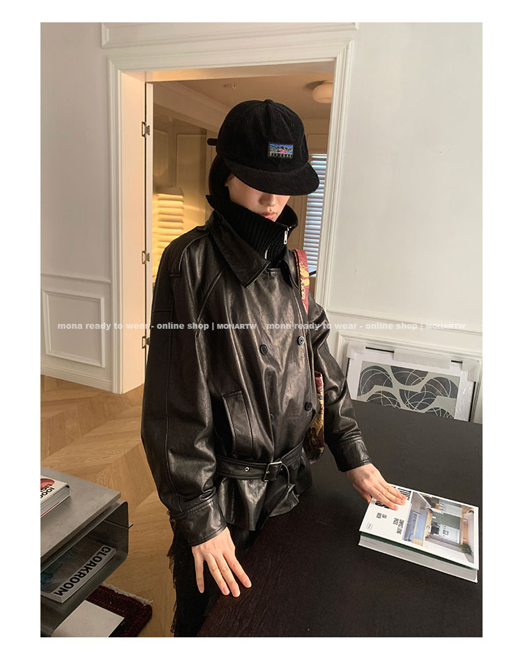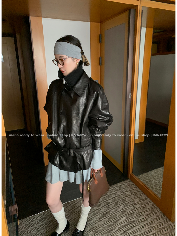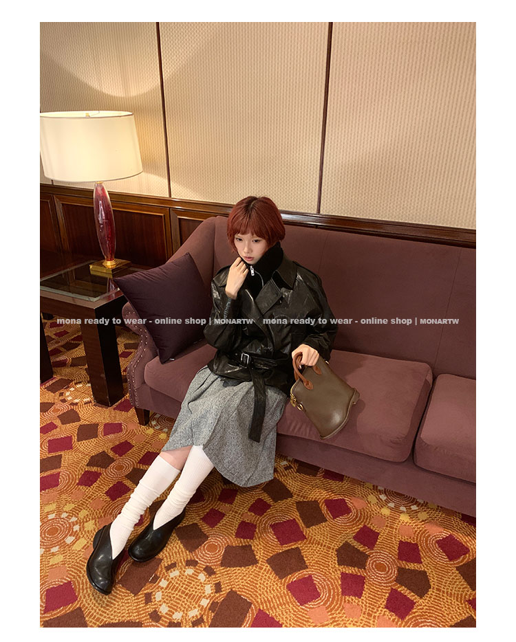 MONARTW vintage waxed sheepskin wool black classic fur coat