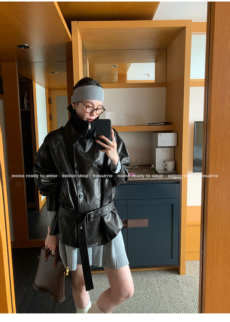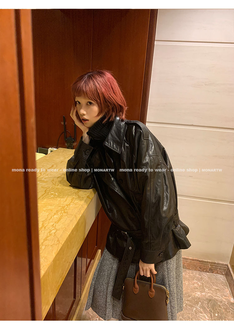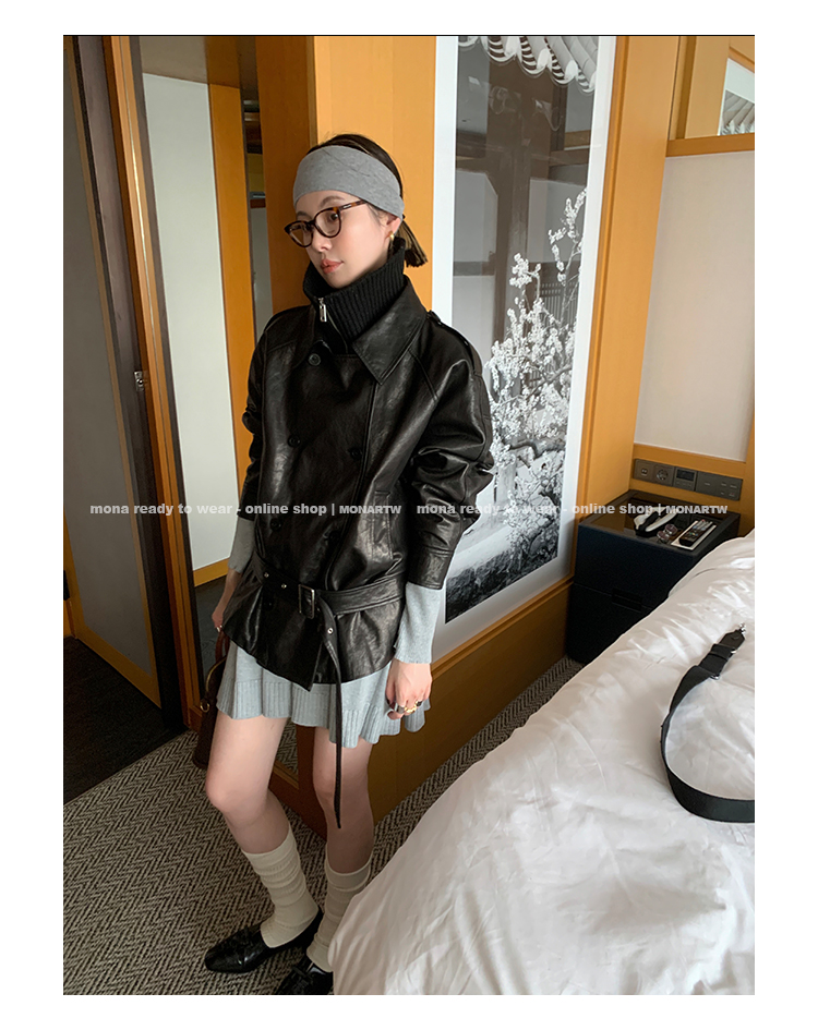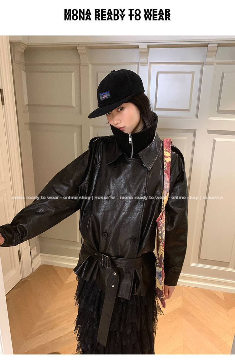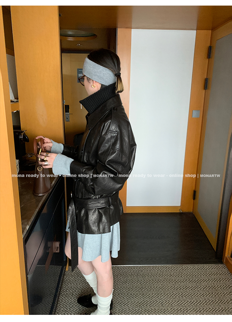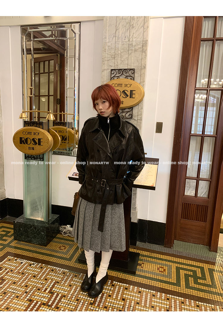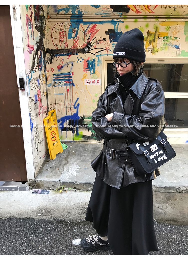 MONARTW vintage waxed sheepskin wool black classic fur coat