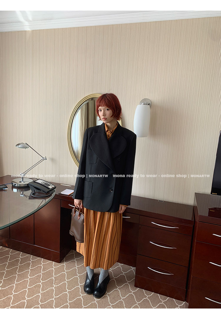 MONARTW cotton retro striped shirt mid-waist skirt set