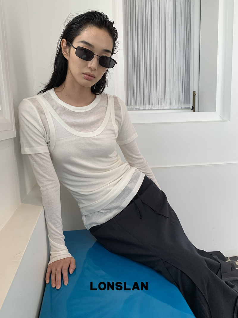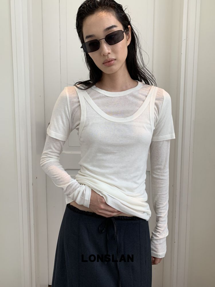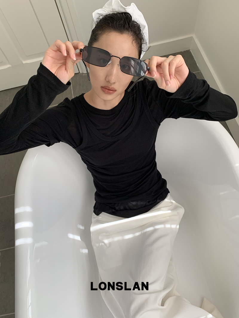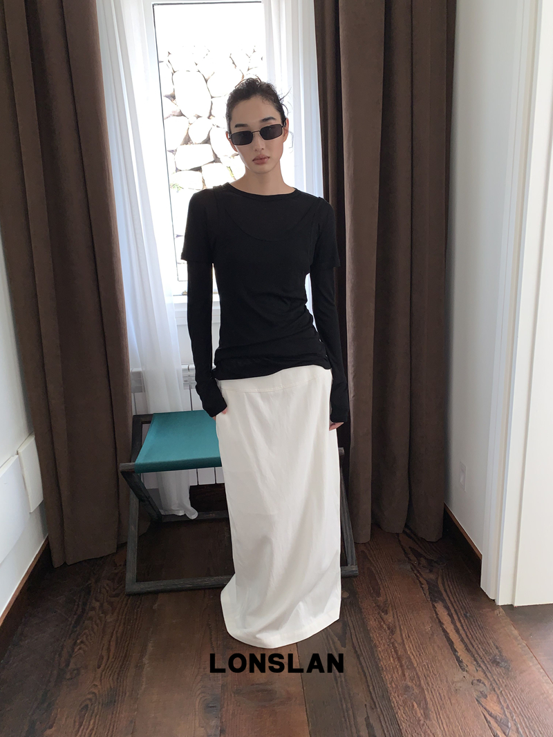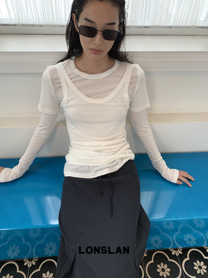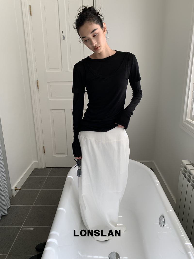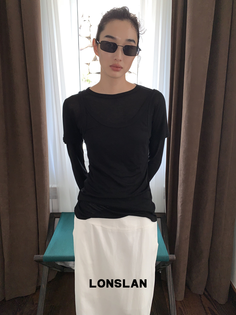 LONSLAN fake three-piece long-sleeved bottoming T + vest two-piece set