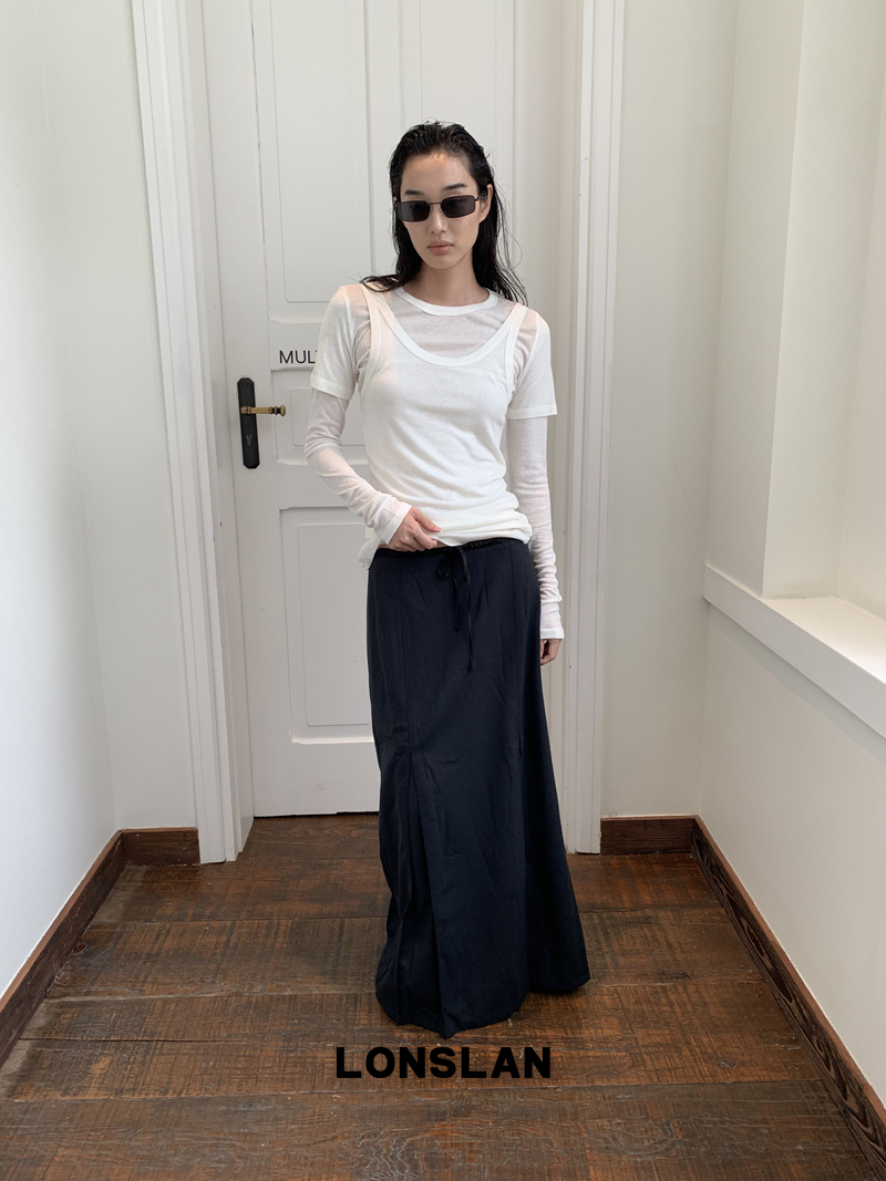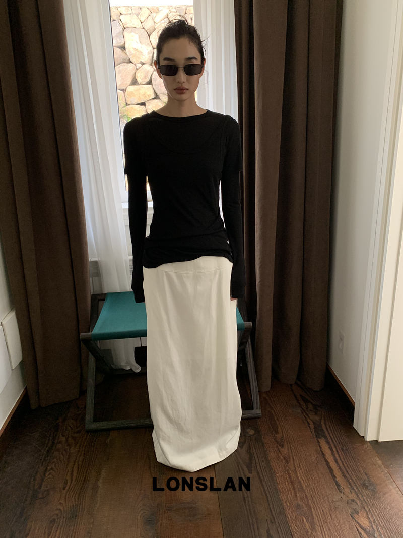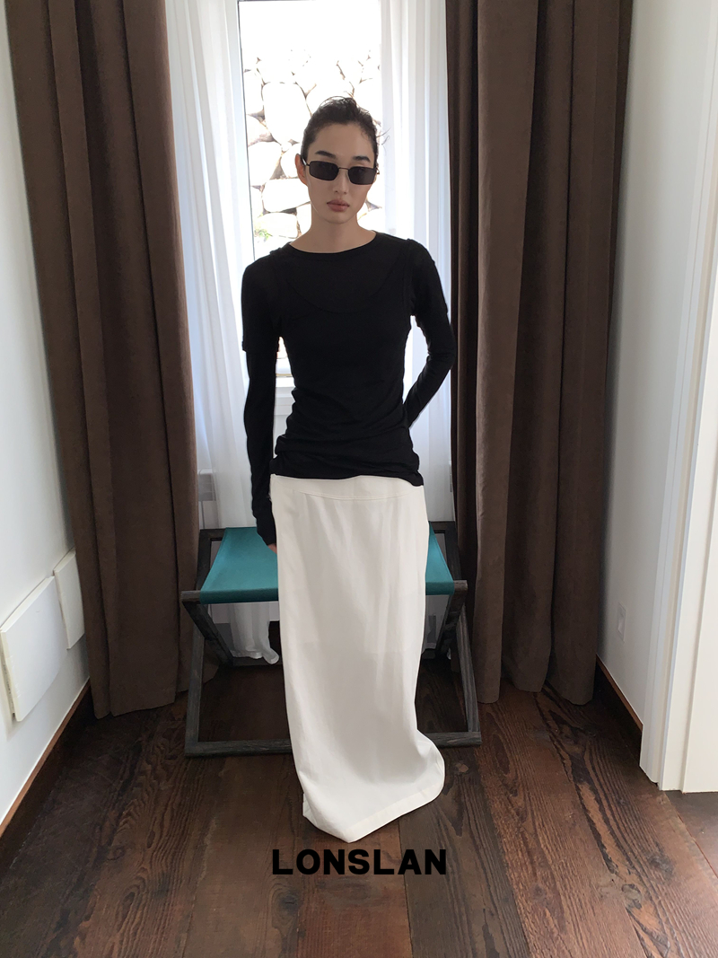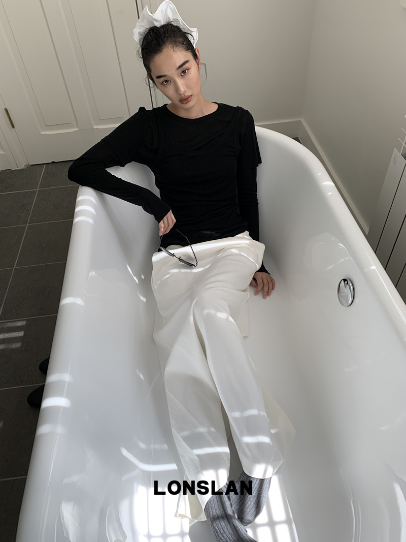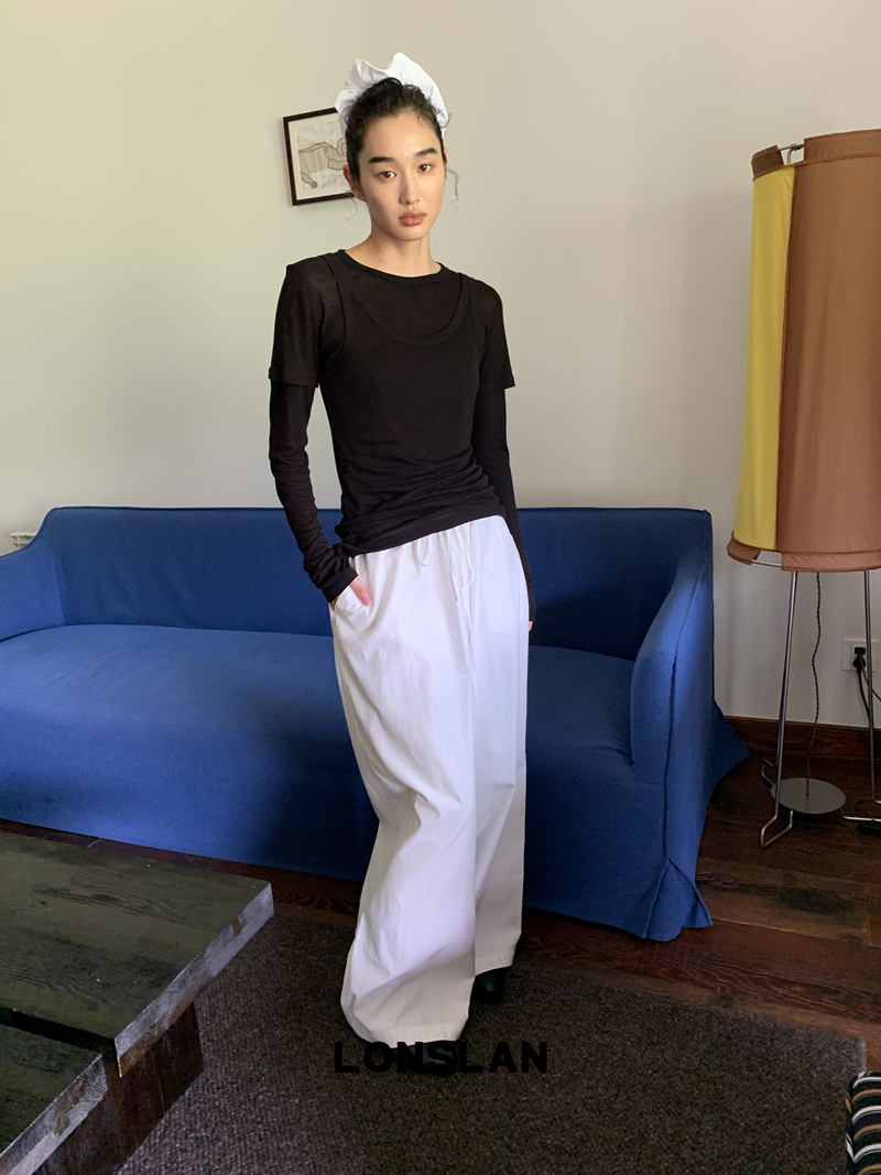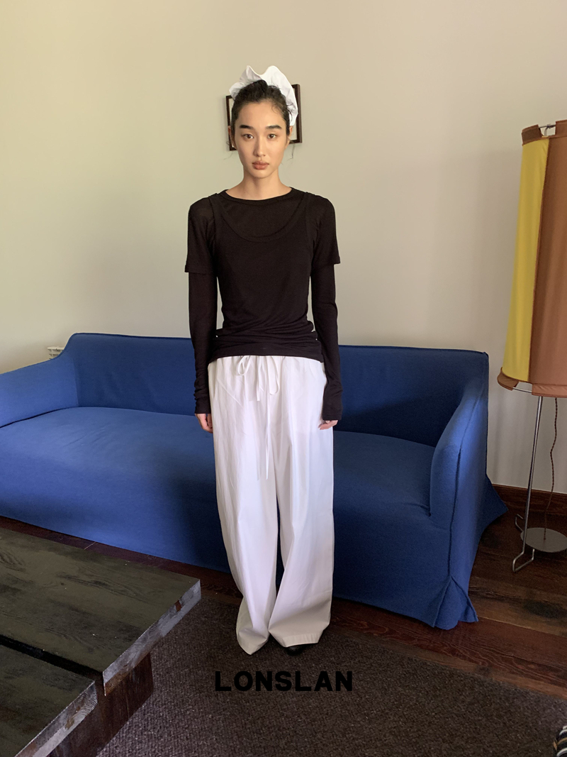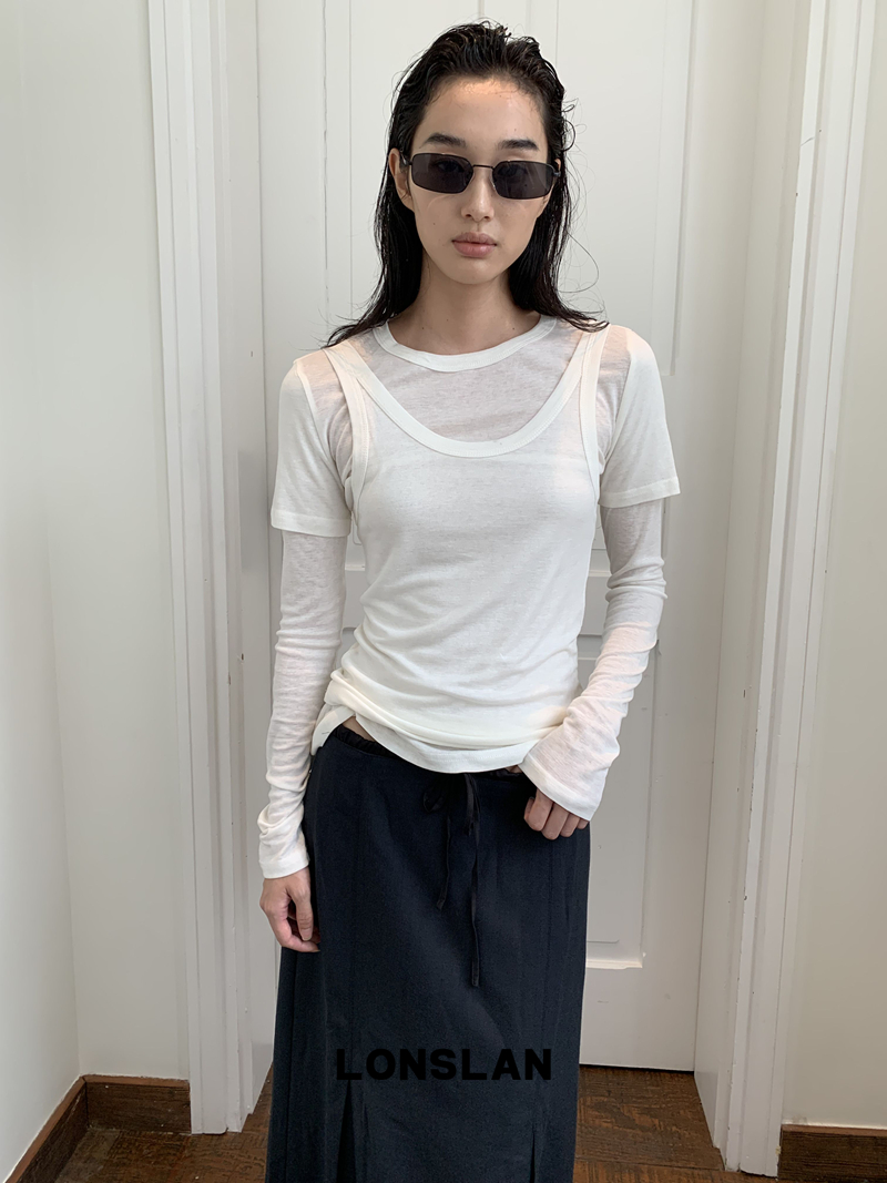 LONSLAN fake three-piece long-sleeved bottoming T + vest two-piece set