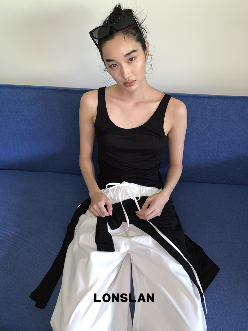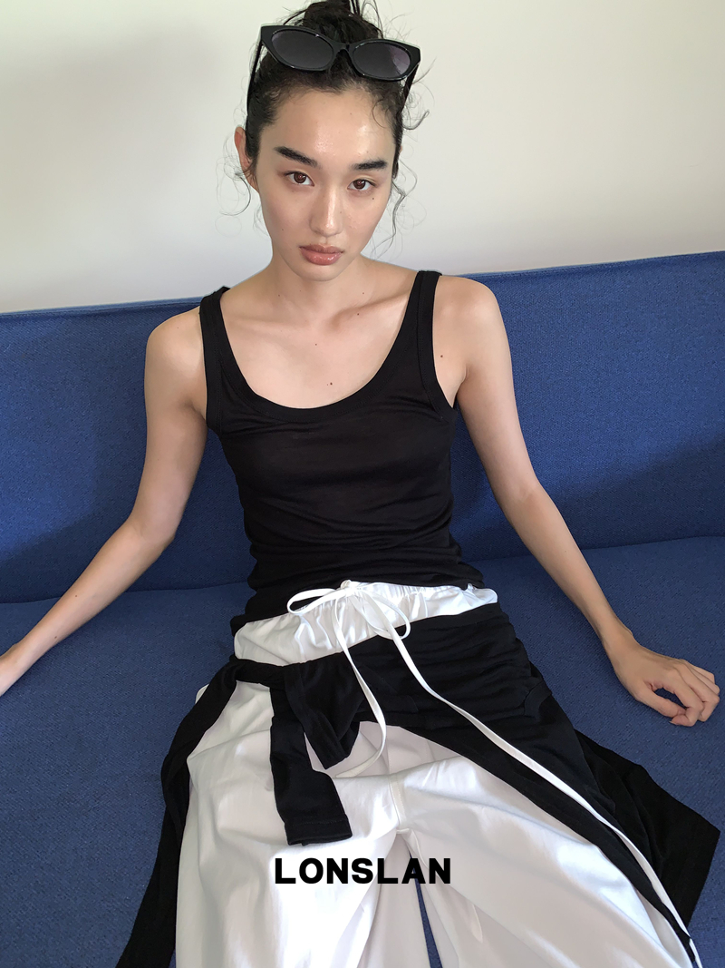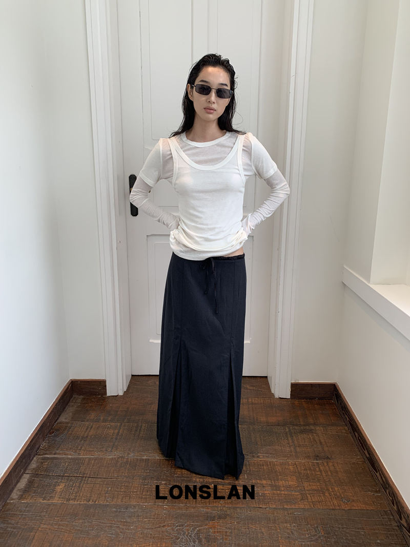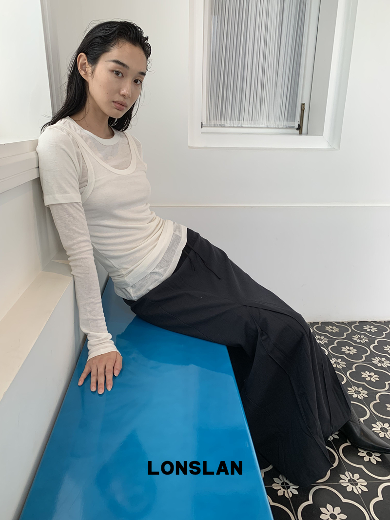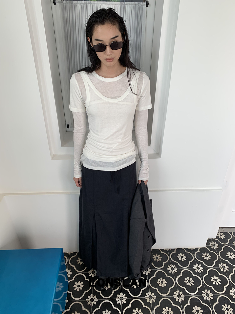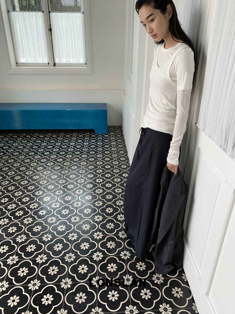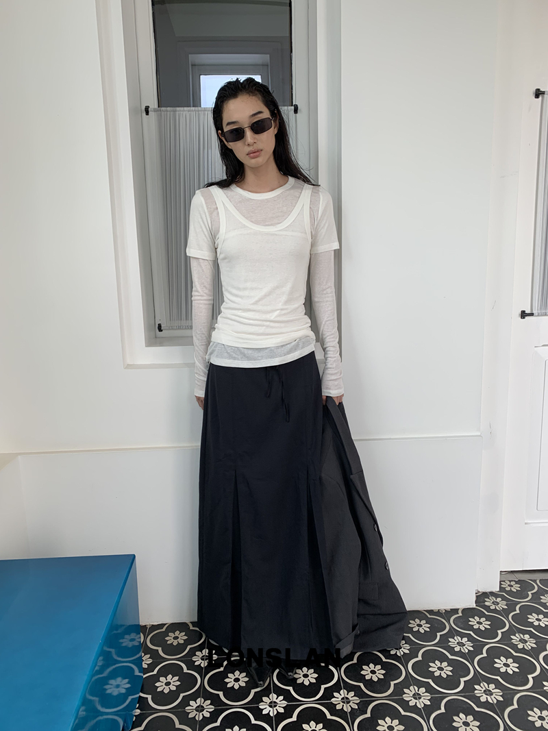LONSLAN fake three-piece long-sleeved bottoming T + vest two-piece set