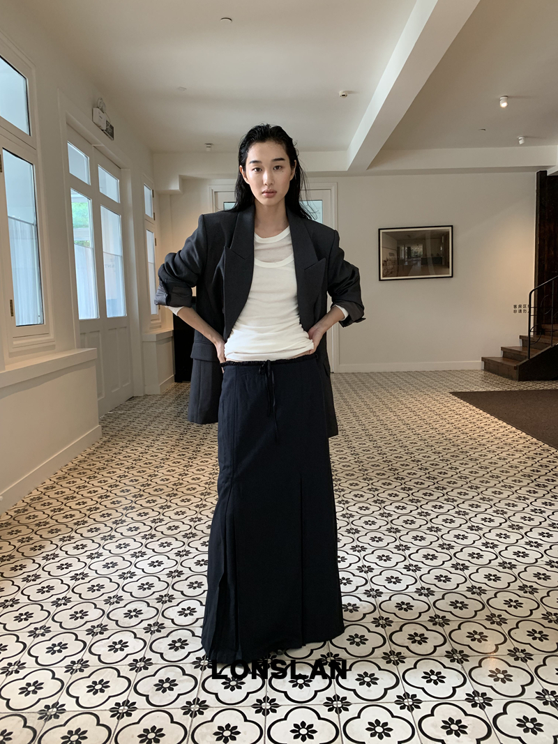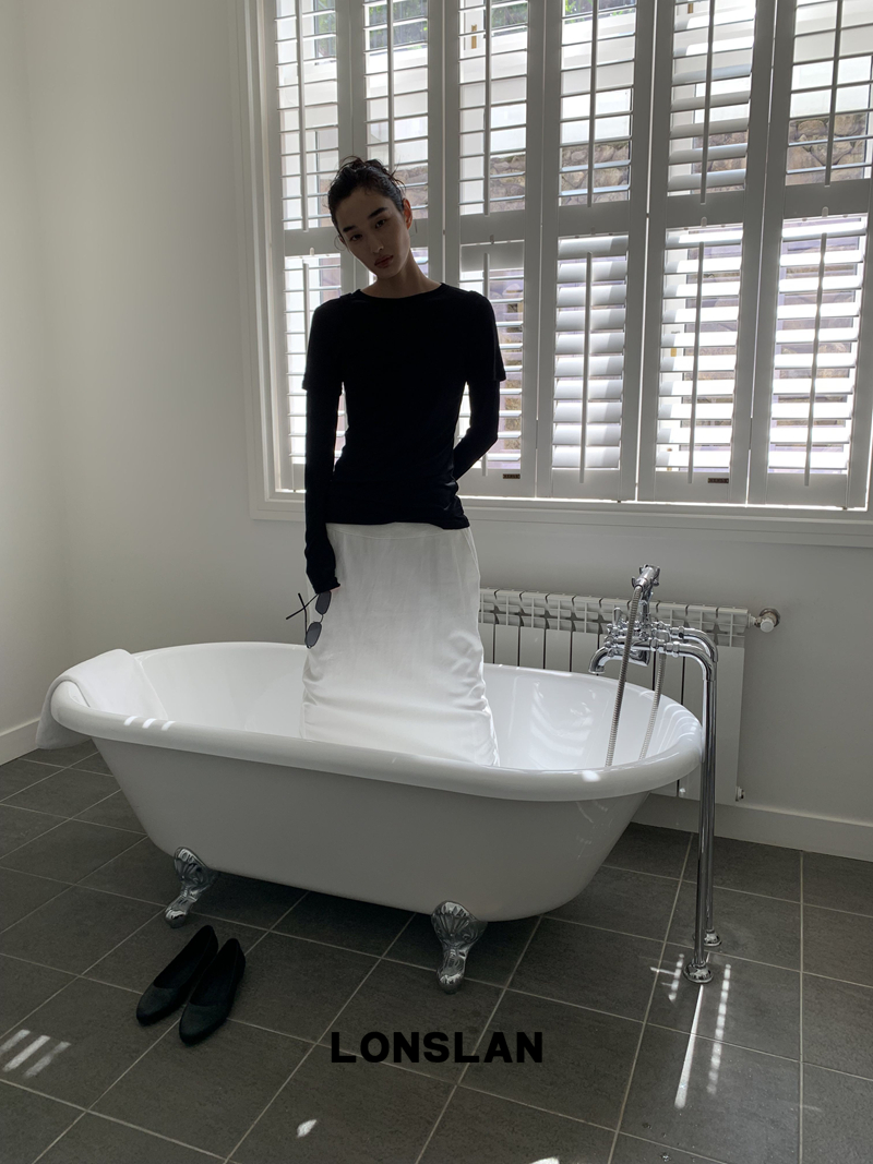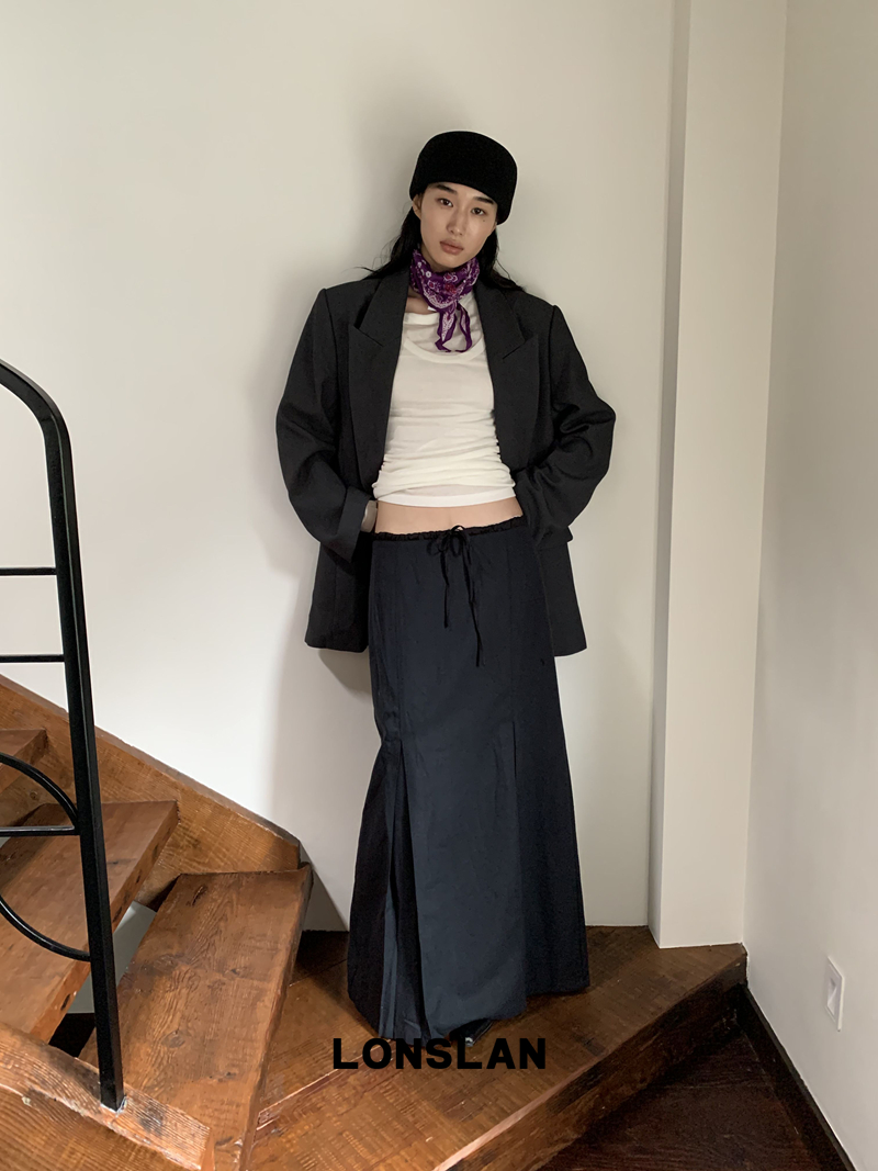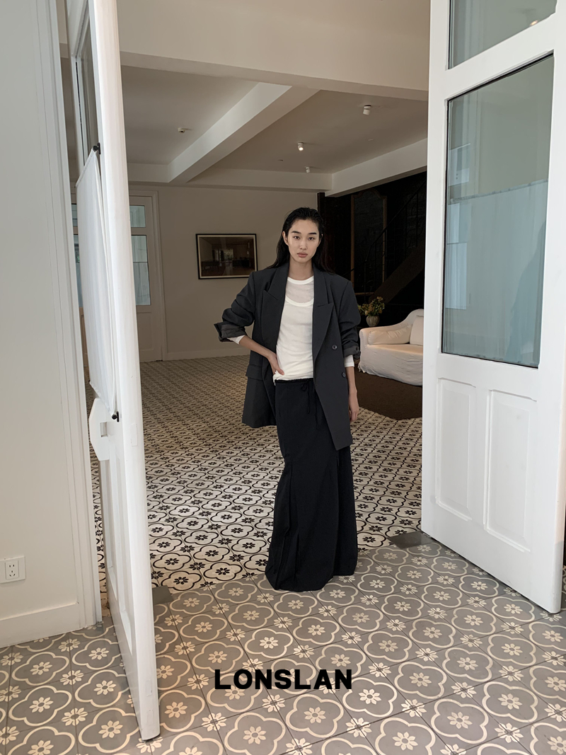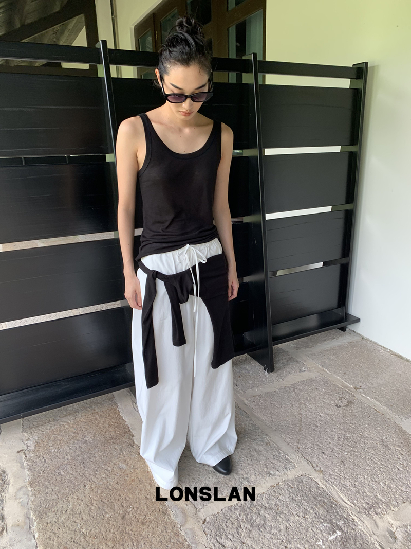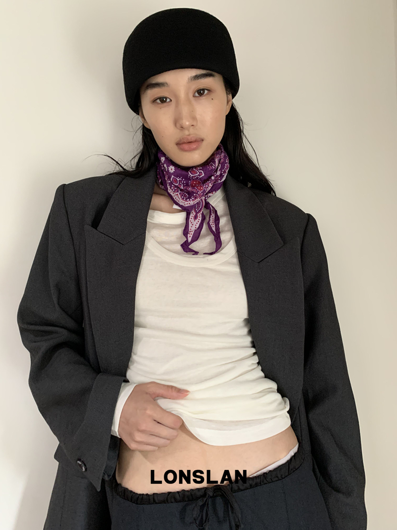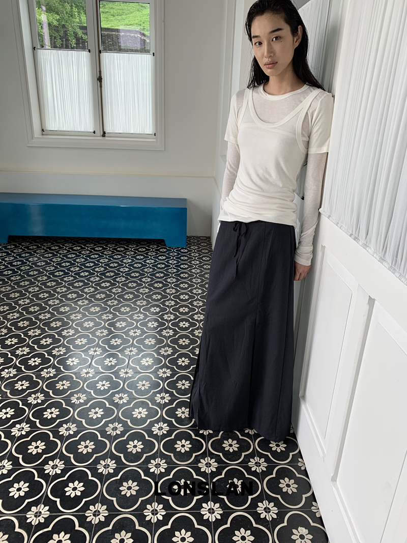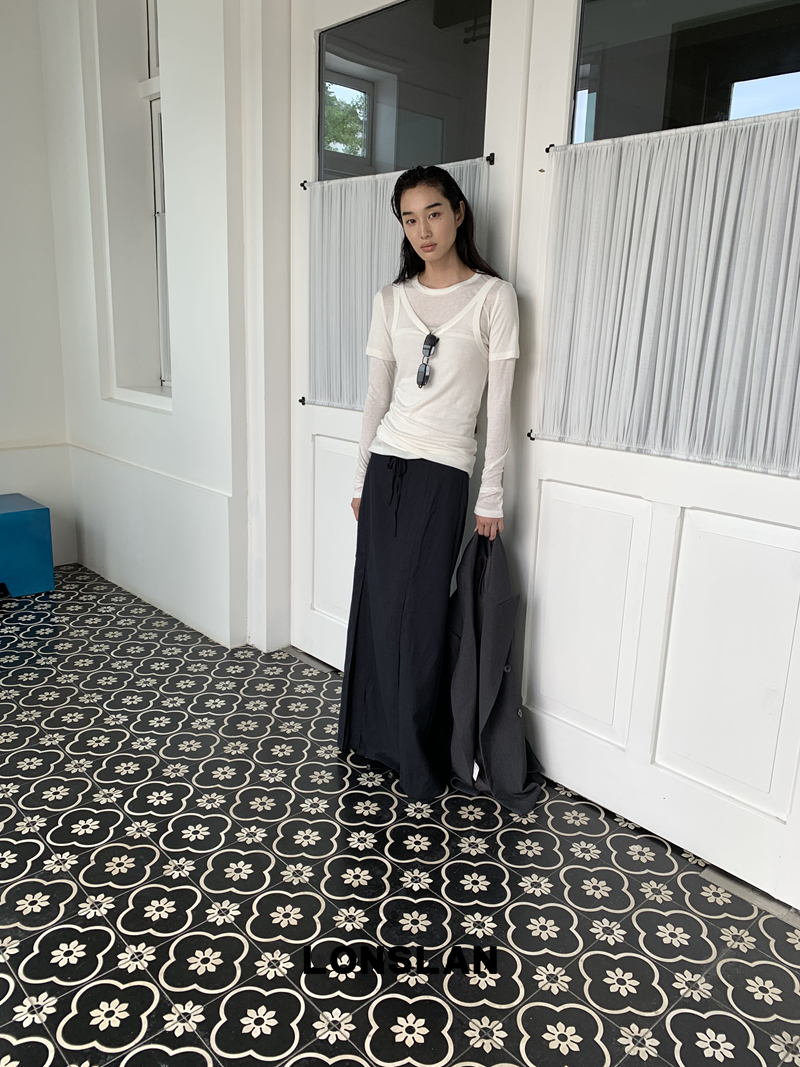 LONSLAN fake three-piece long-sleeved bottoming T + vest two-piece set