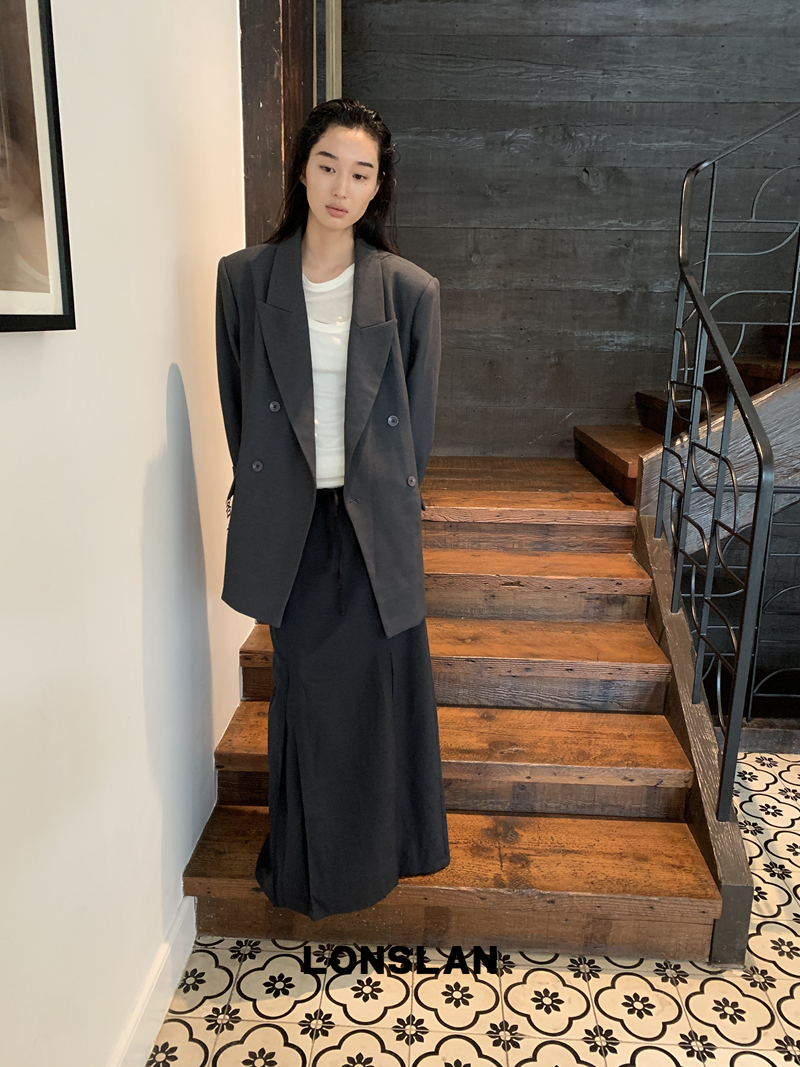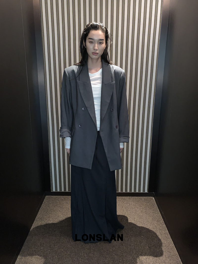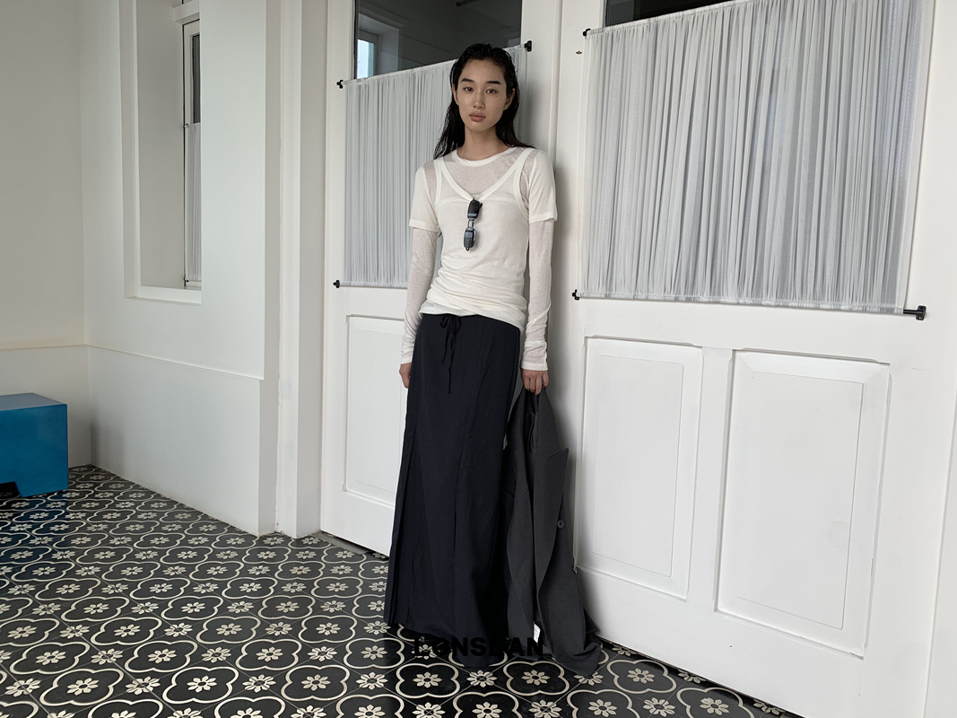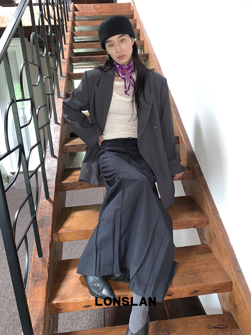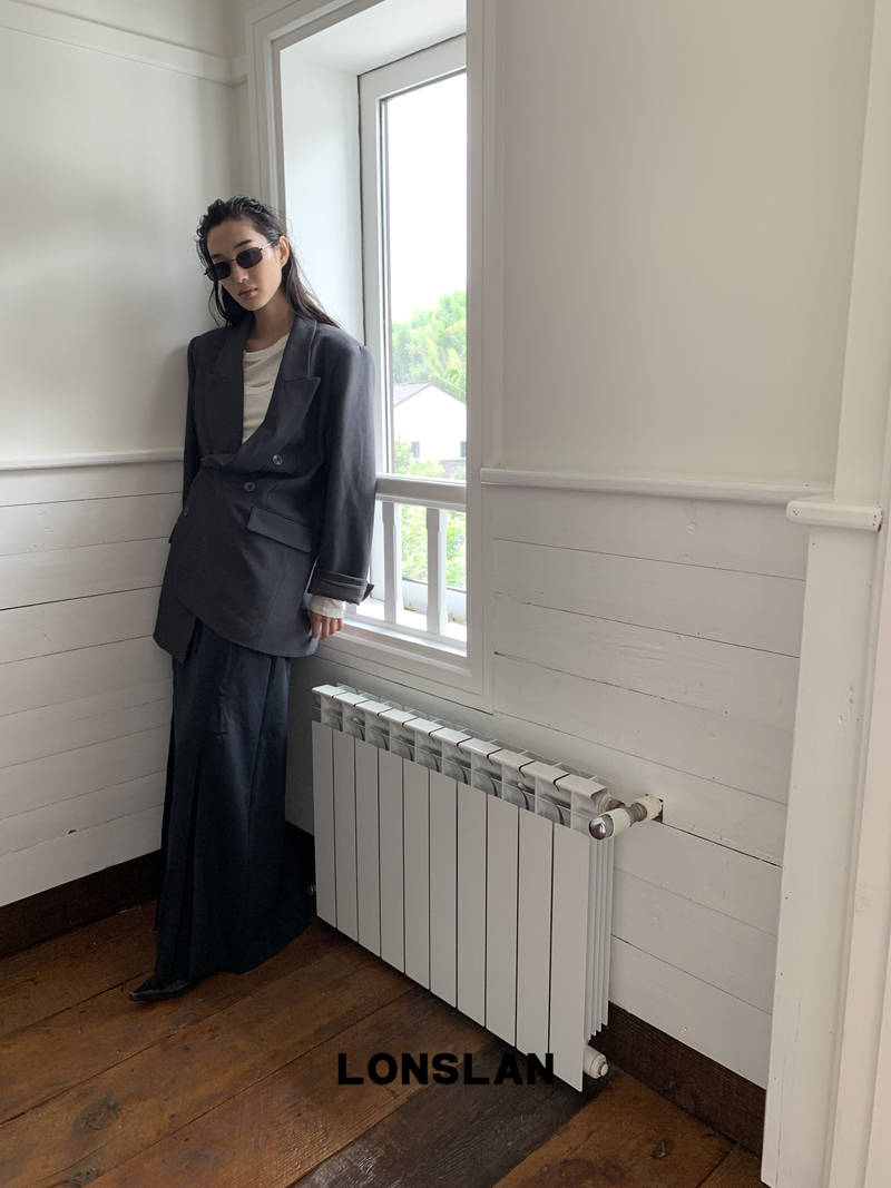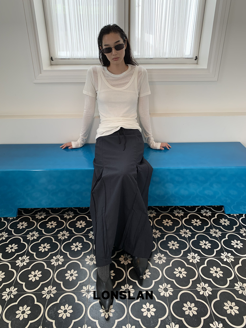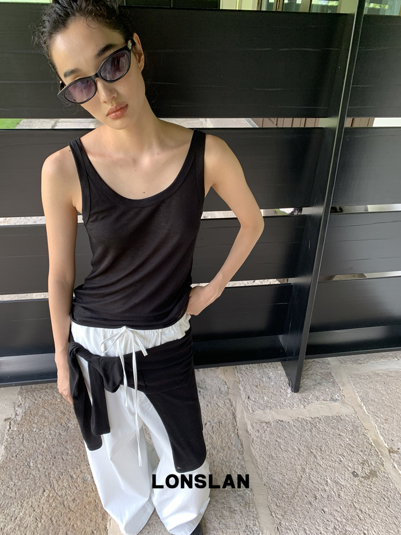LONSLAN fake three-piece long-sleeved bottoming T + vest two-piece set