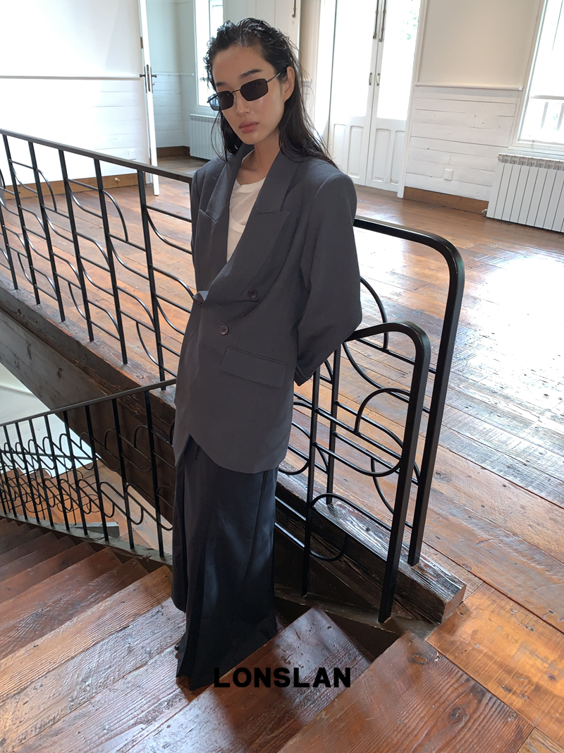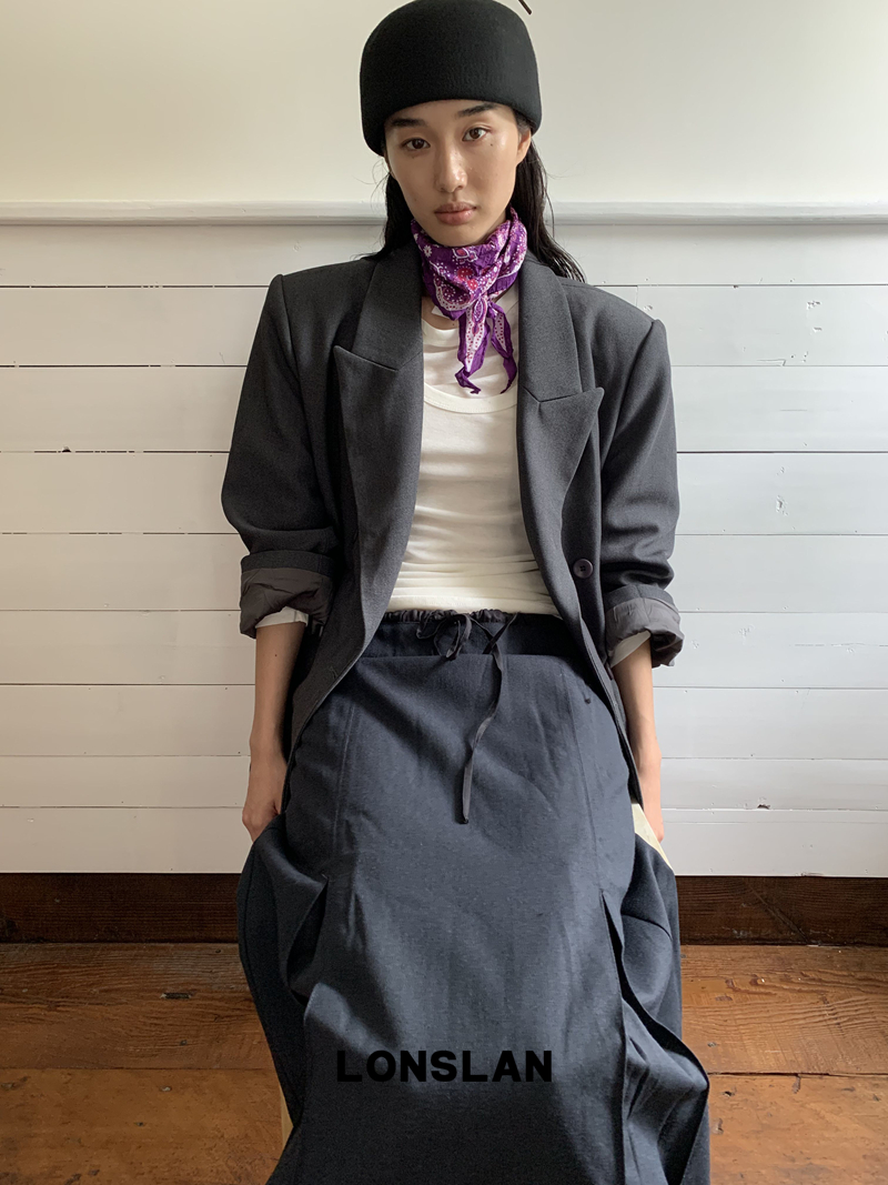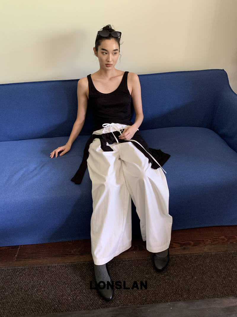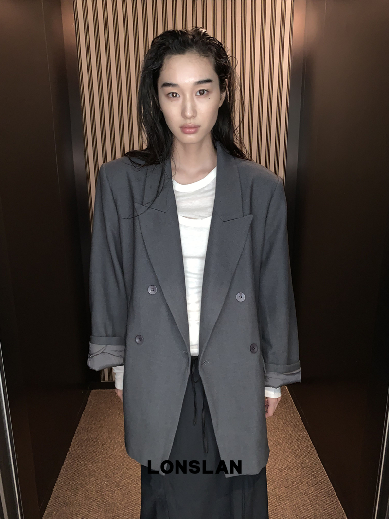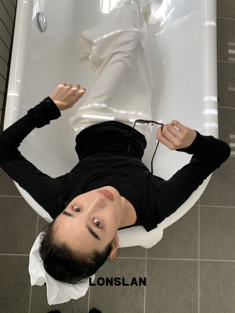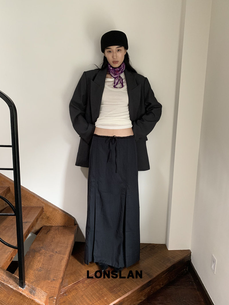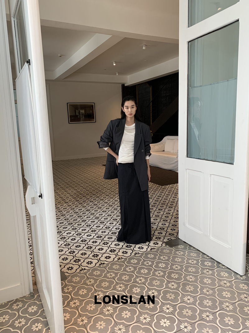 LONSLAN fake three-piece long-sleeved bottoming T + vest two-piece set