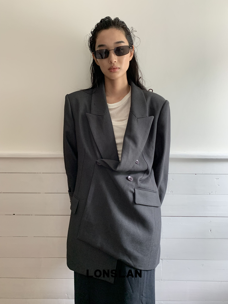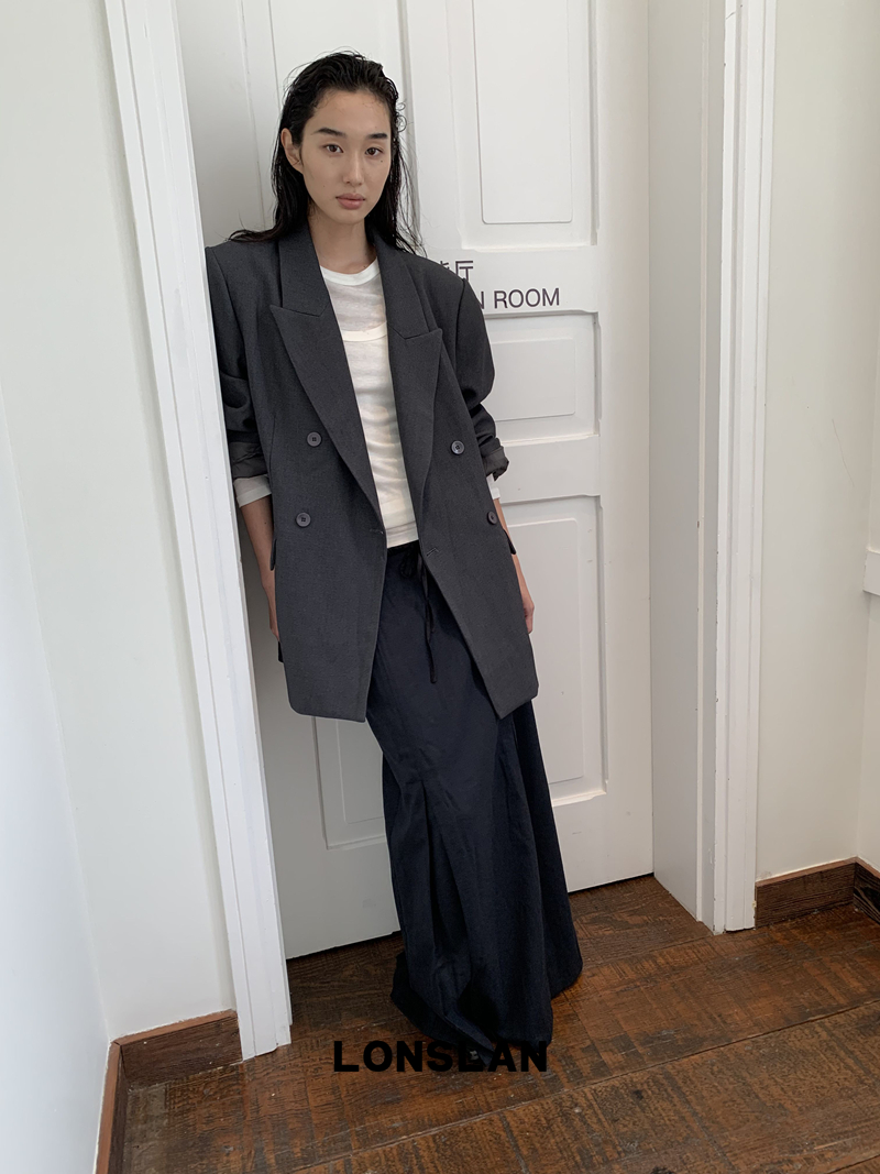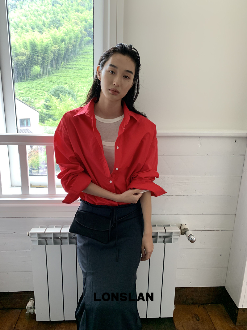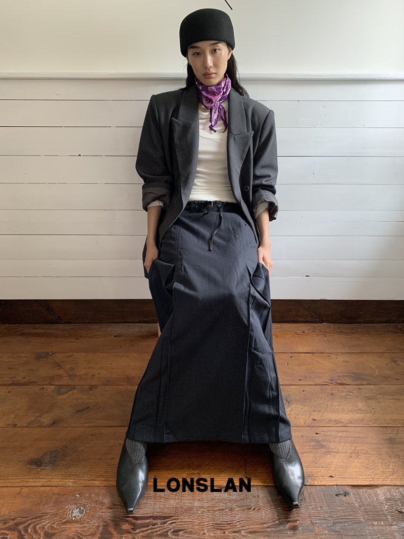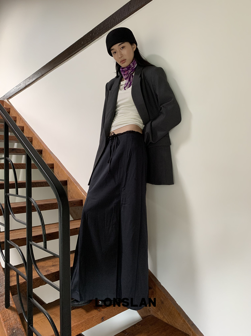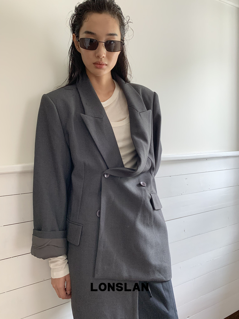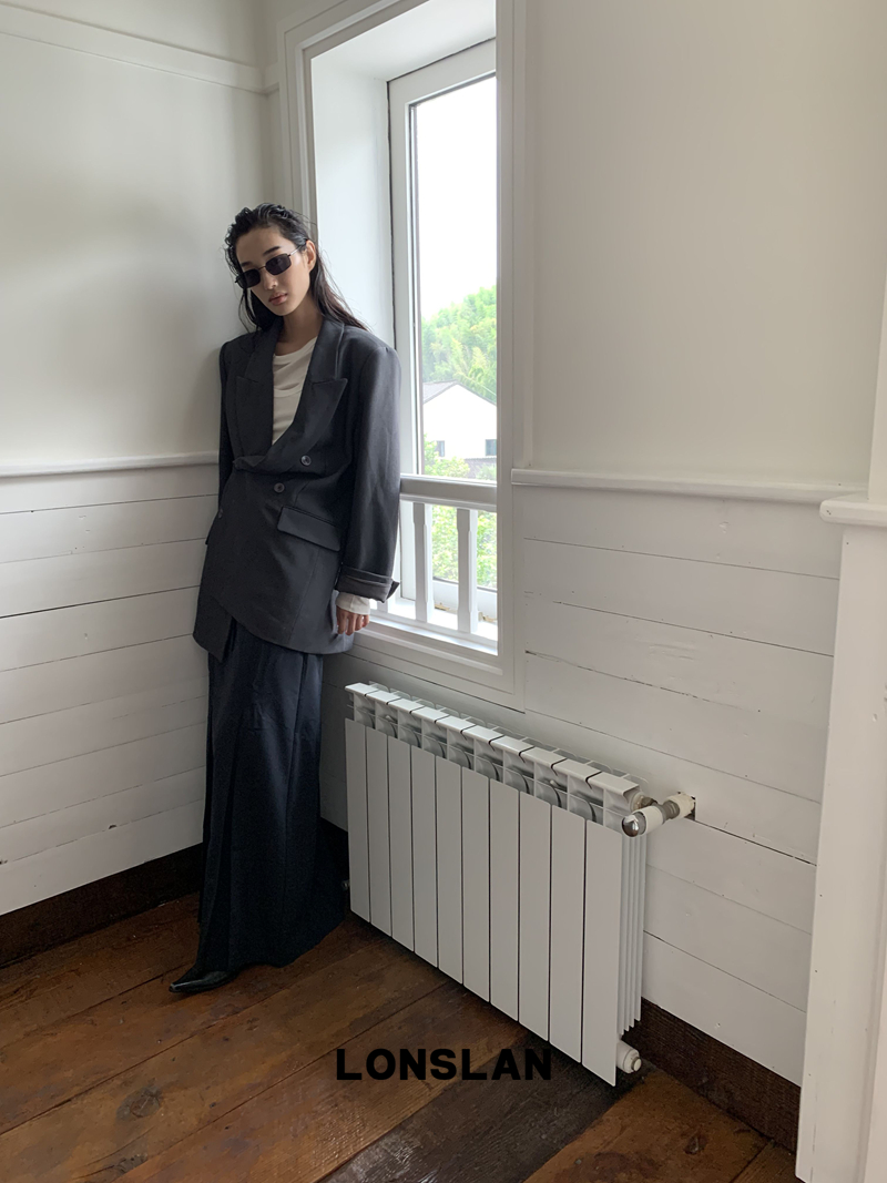 LONSLAN fake three-piece long-sleeved bottoming T + vest two-piece set