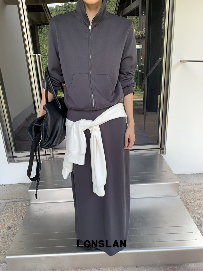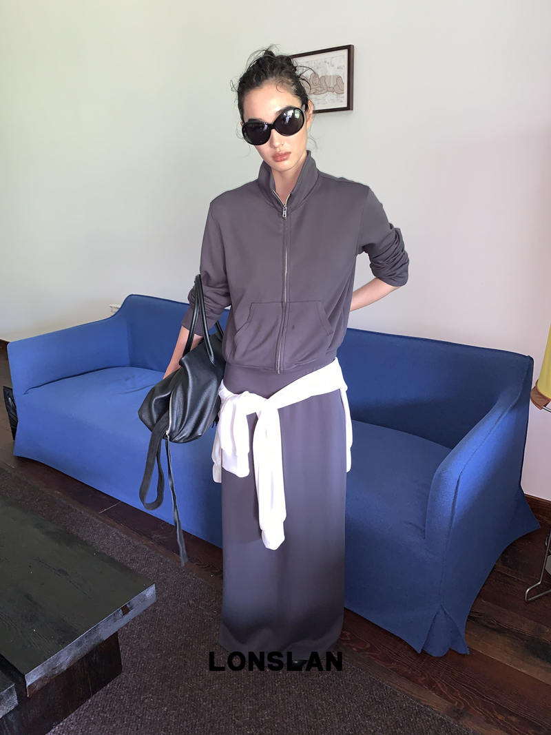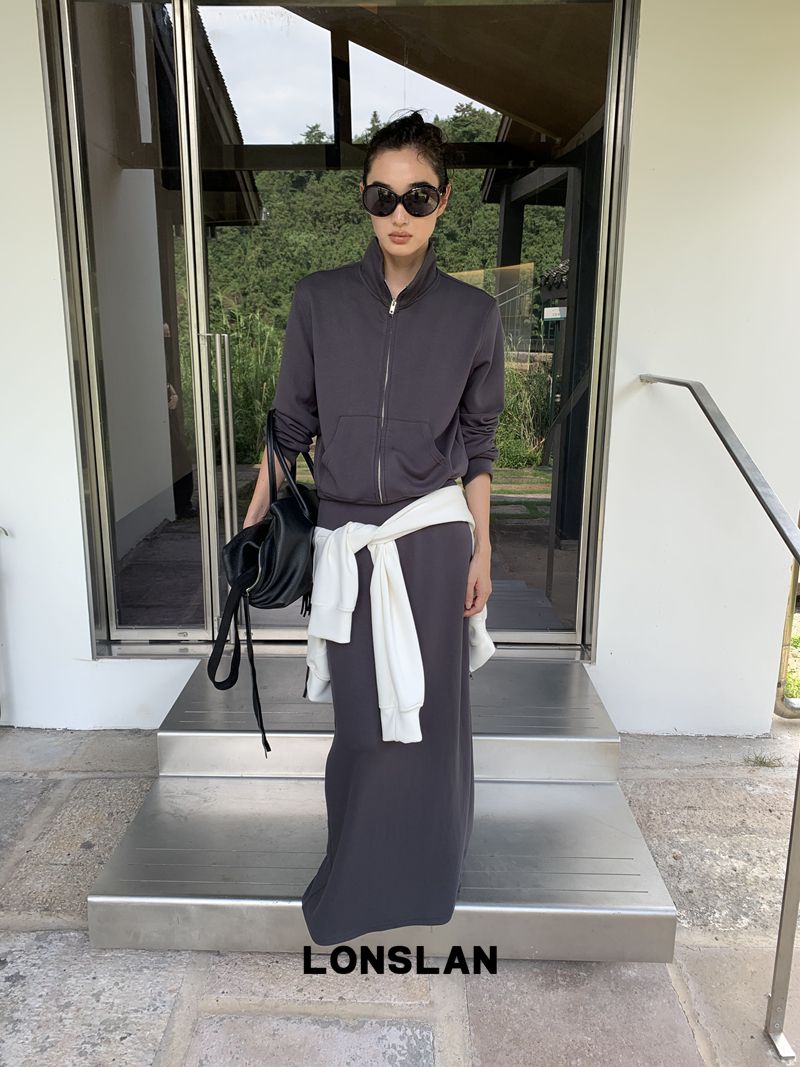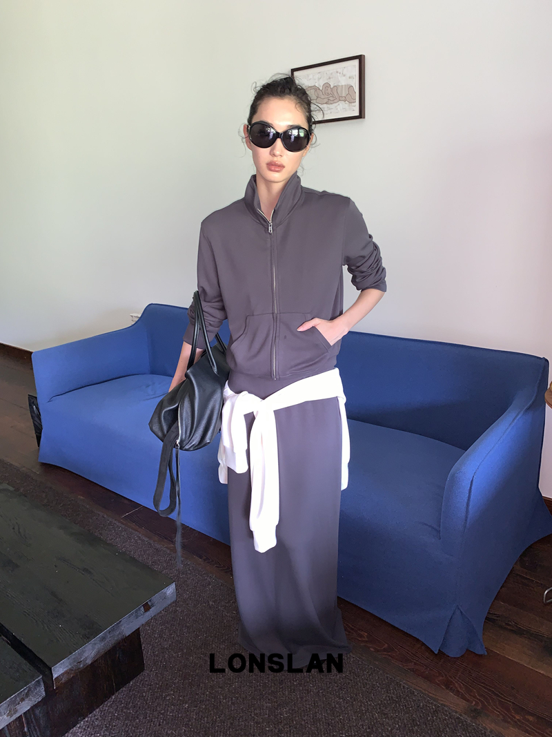 LONSLAN Comfortable Lazy Short Sweater + Skirt Set