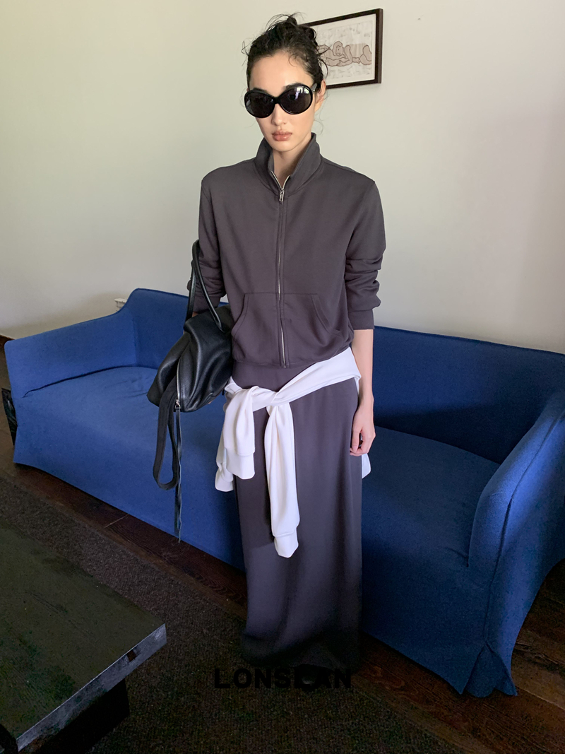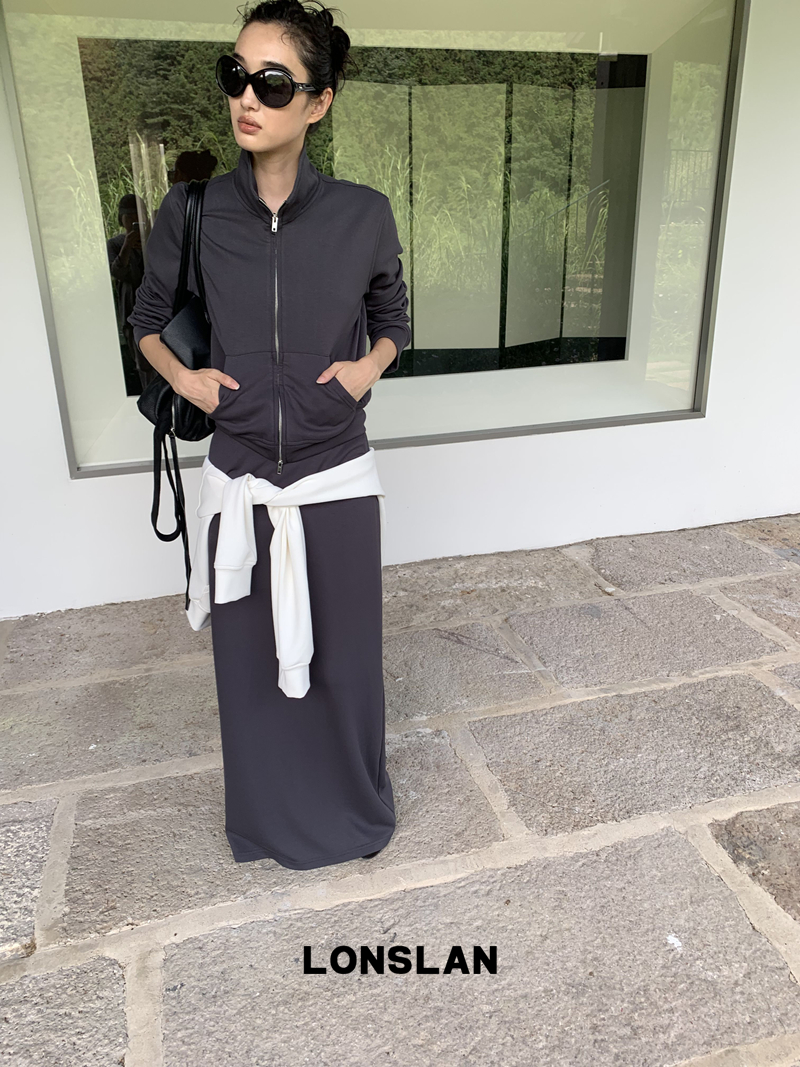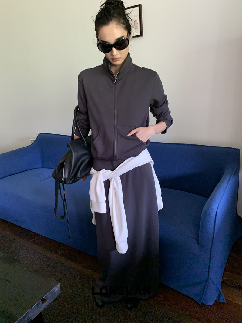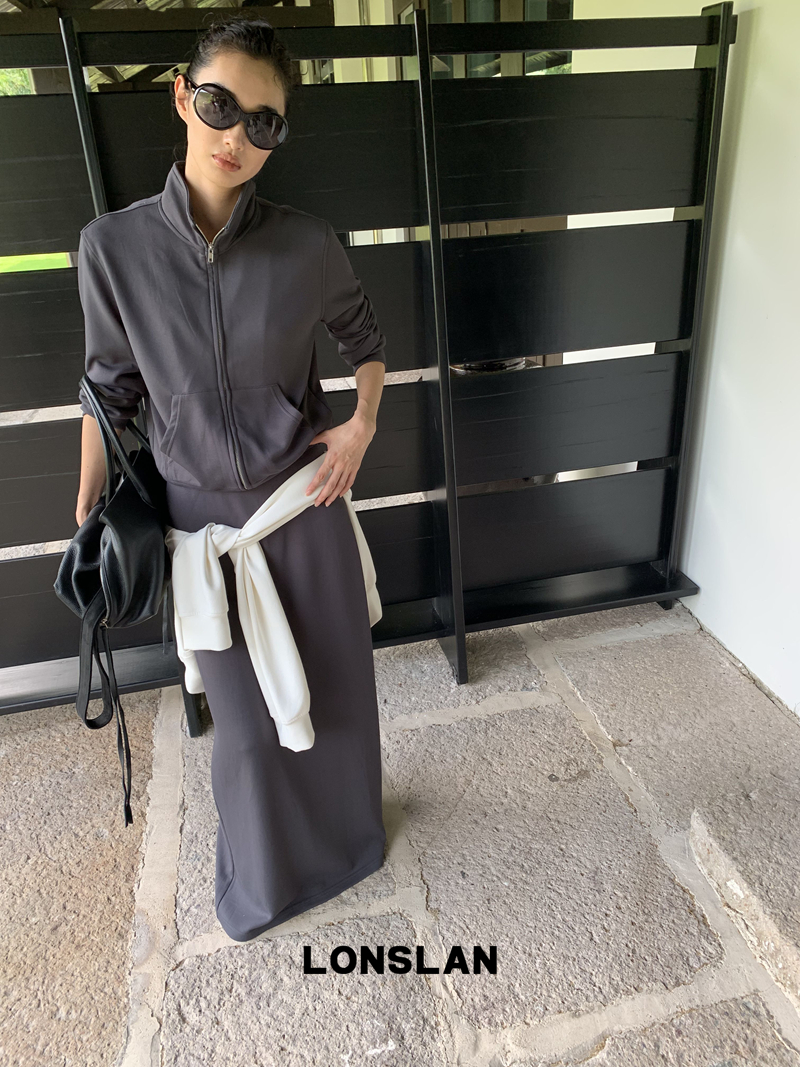 LONSLAN Comfortable Lazy Short Sweater + Skirt Set