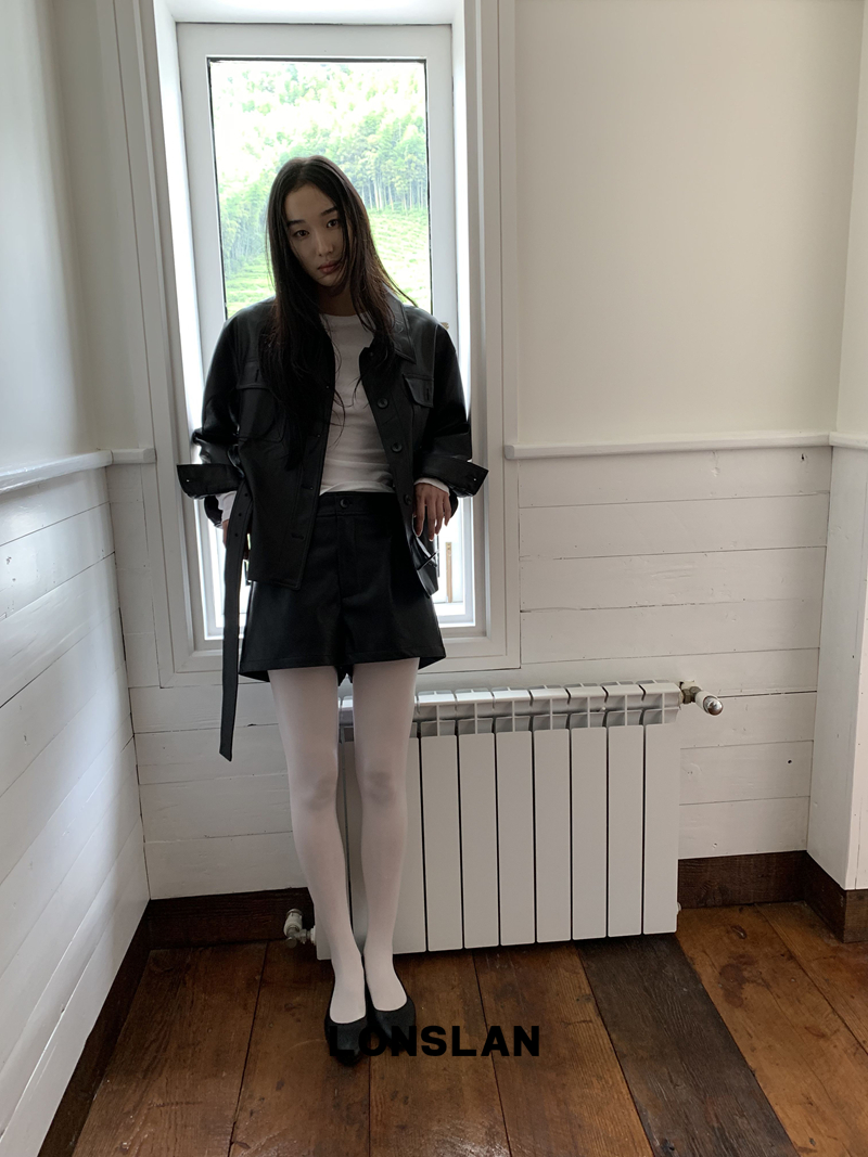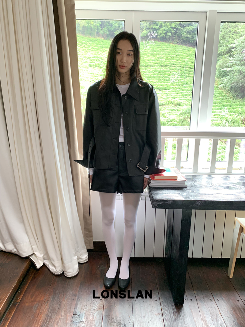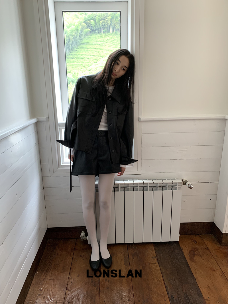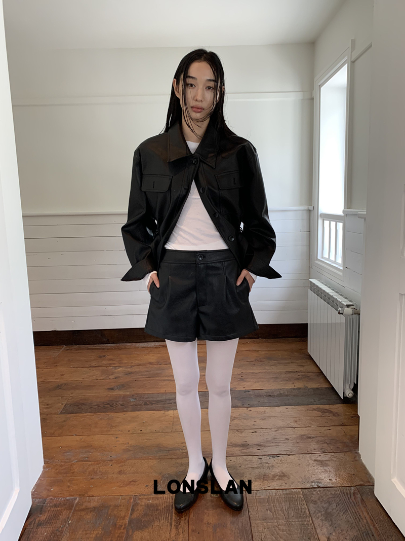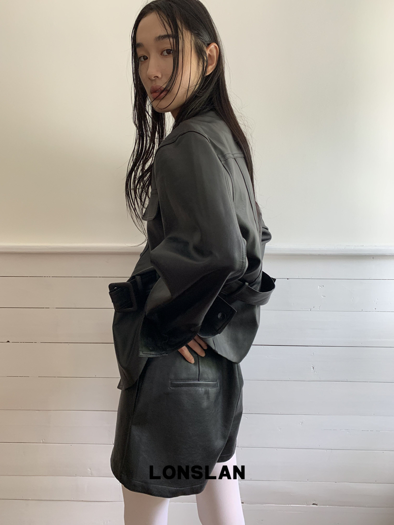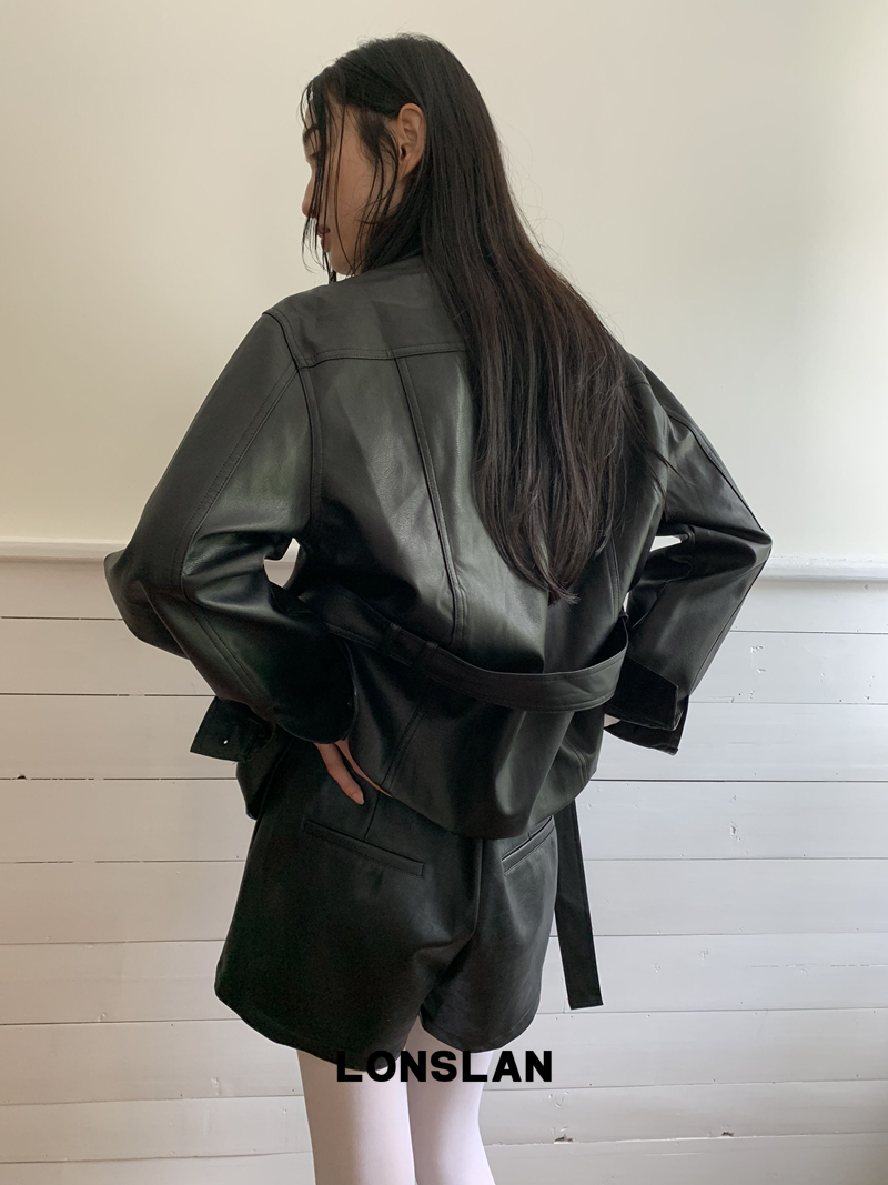 LONSLAN Belt Pocket Leather Jacket + Shorts Set