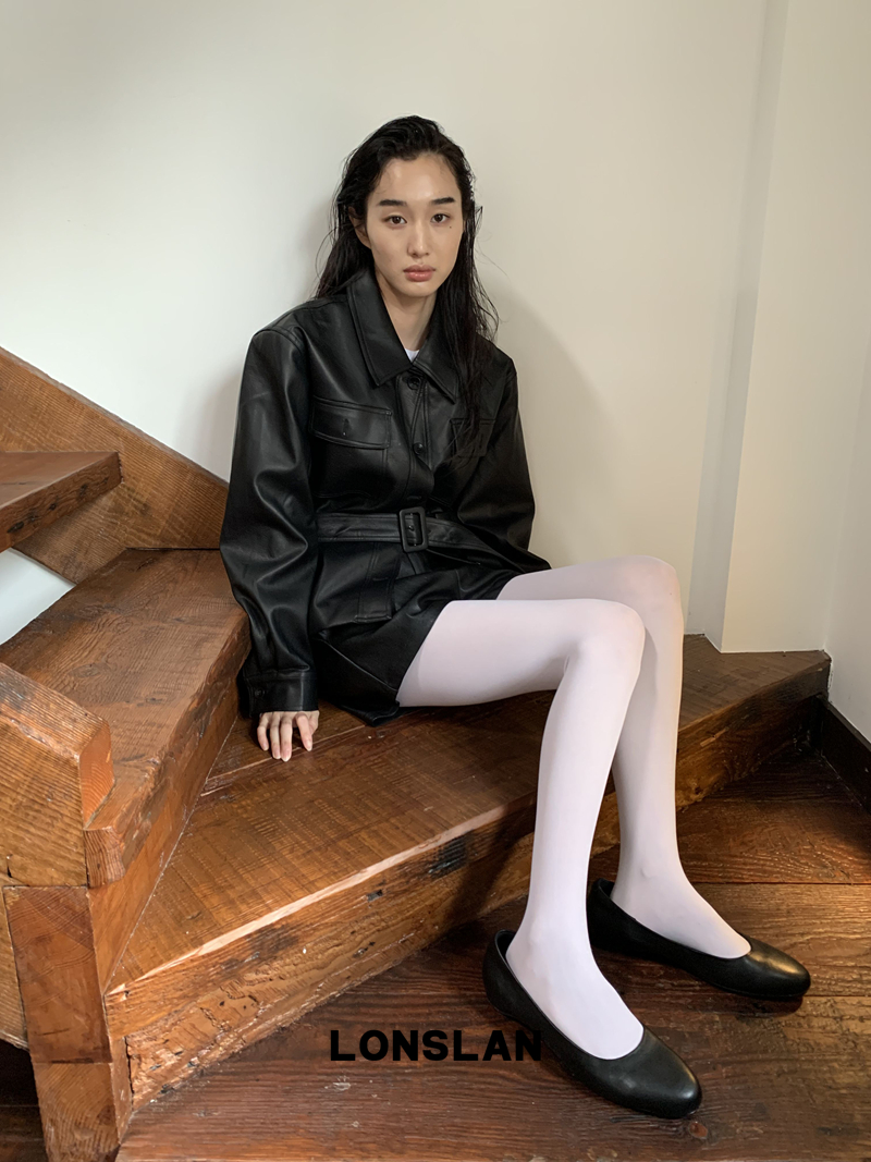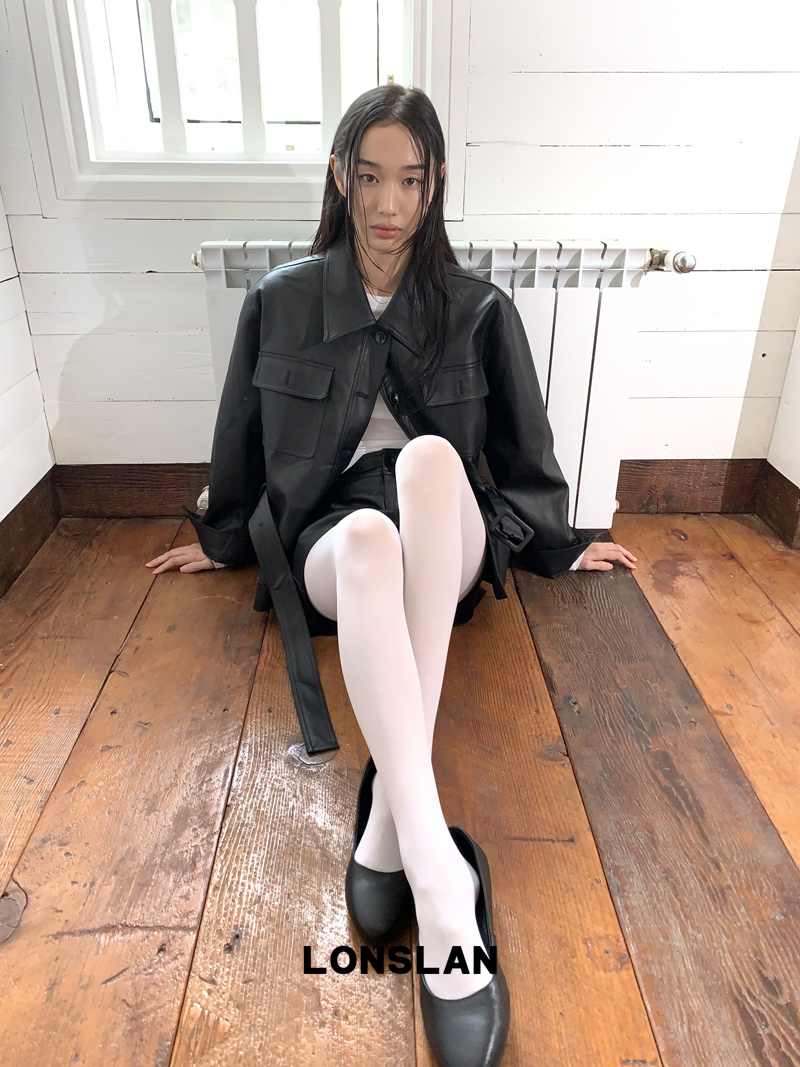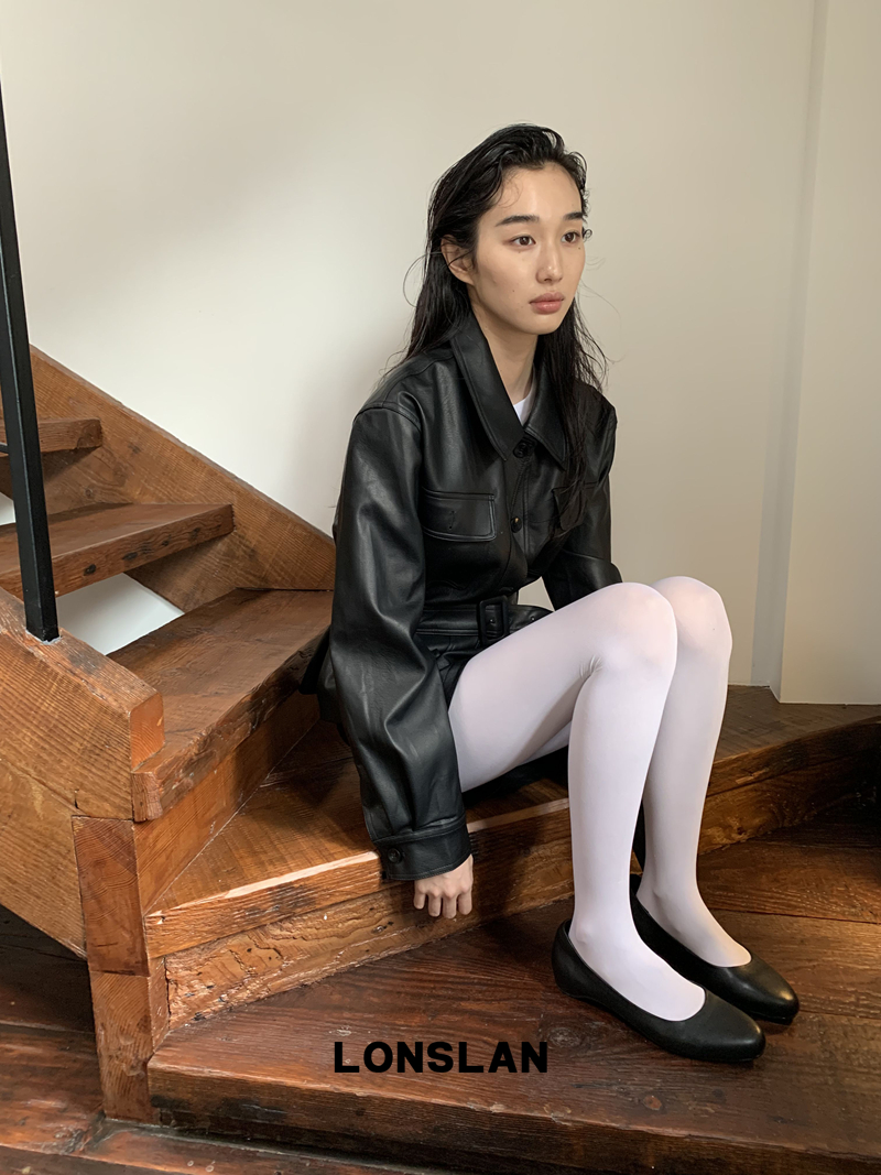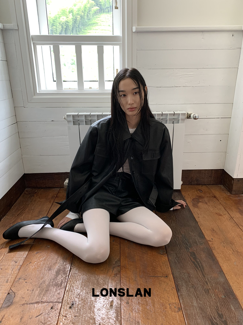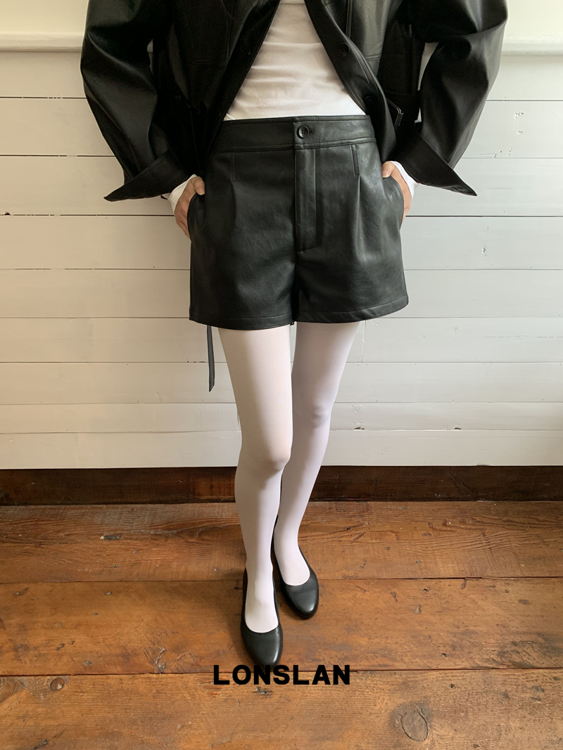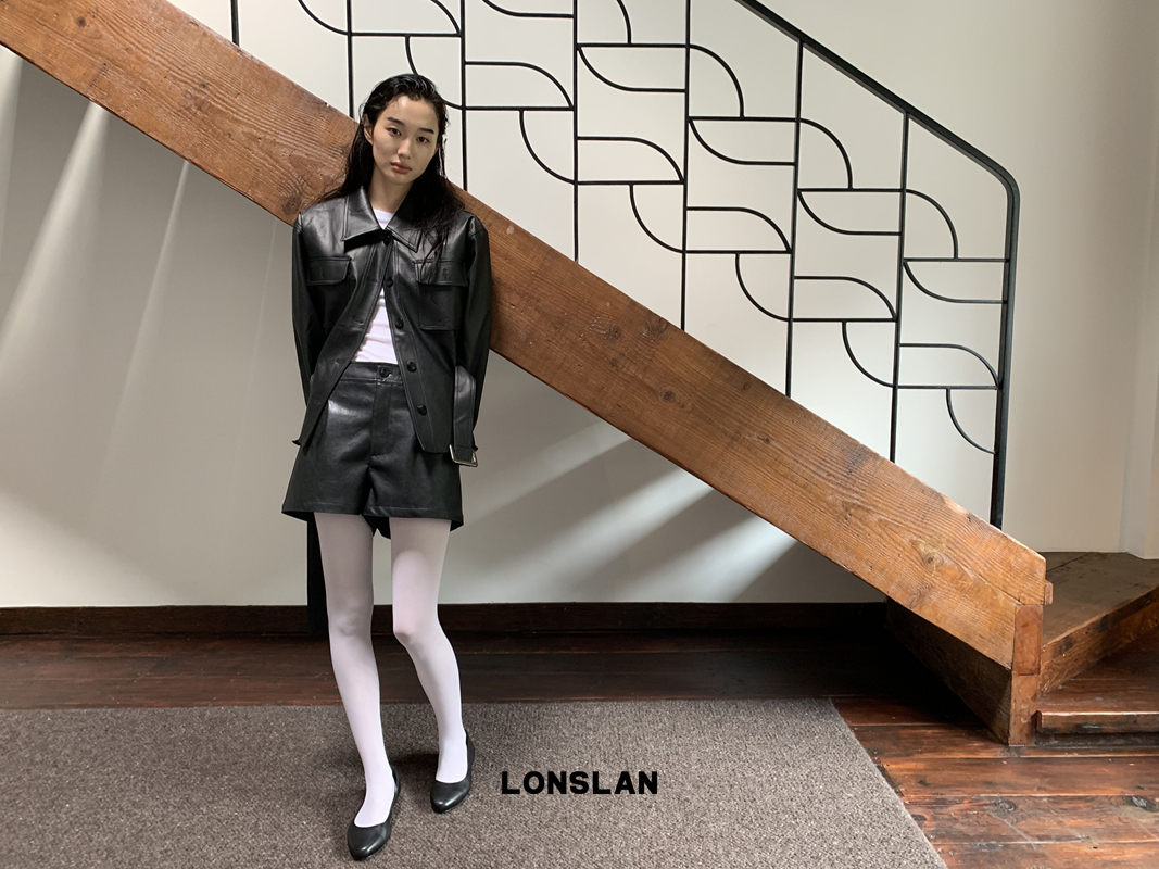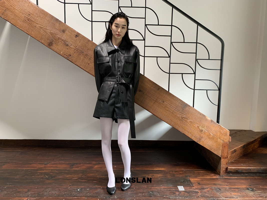 LONSLAN Belt Pocket Leather Jacket + Shorts Set