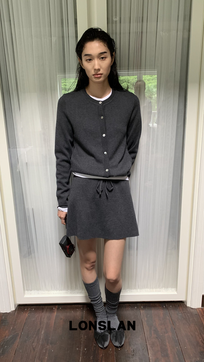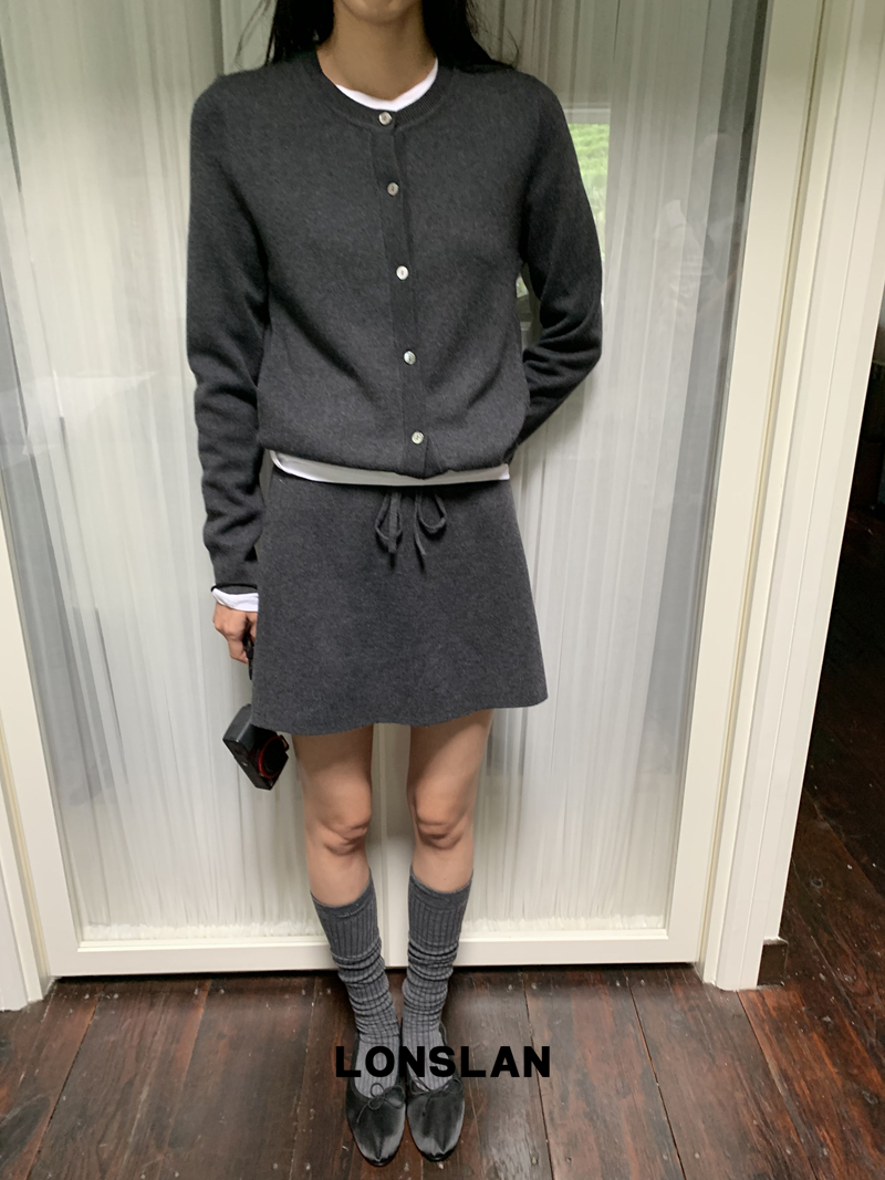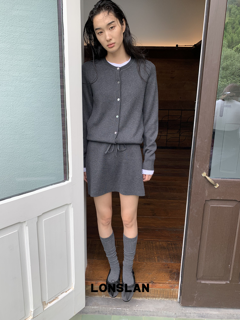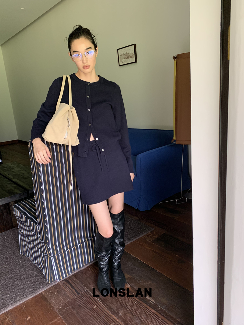 LONSLAN Knitted Cardigan + A-Line Skirt Set