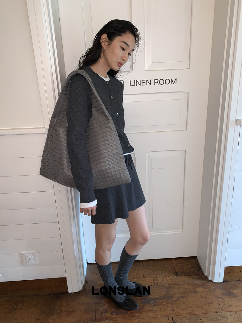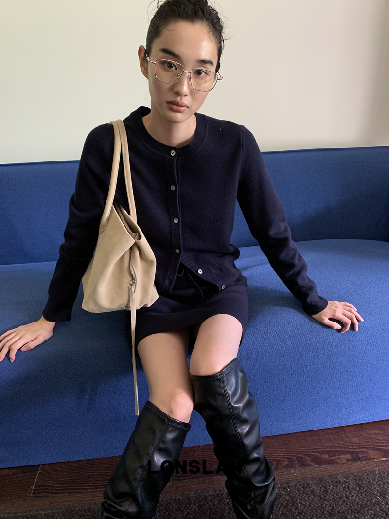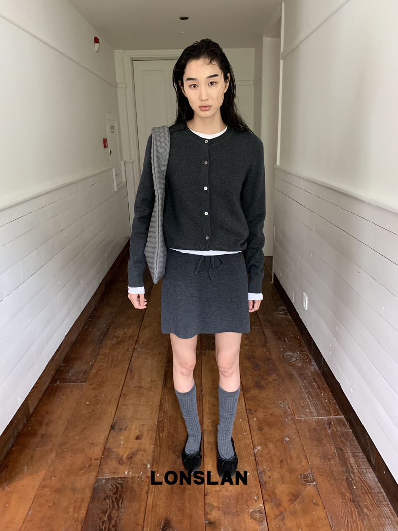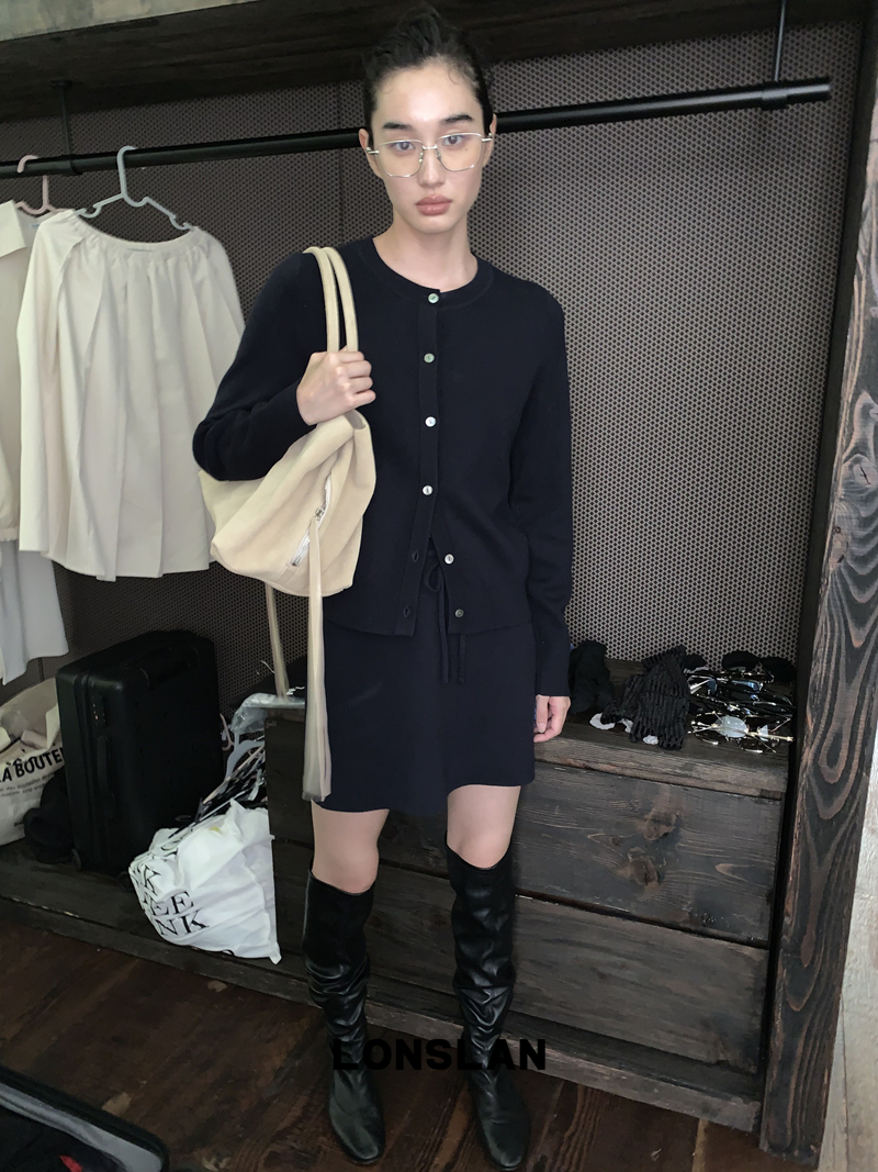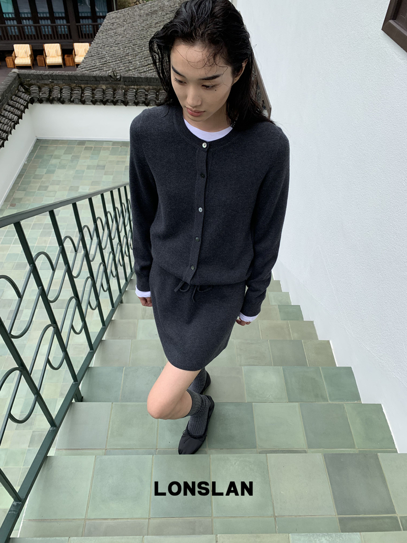 LONSLAN Knitted Cardigan + A-Line Skirt Set