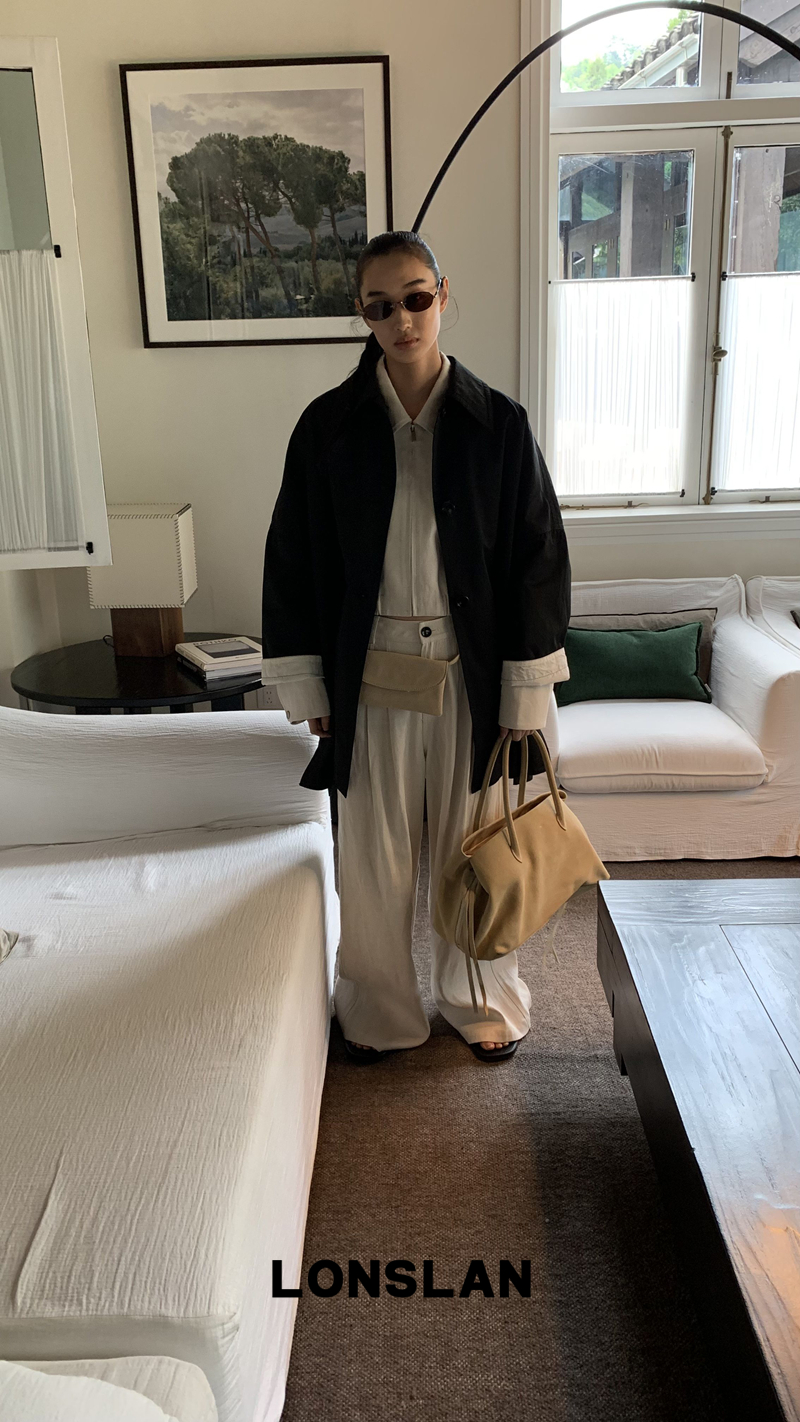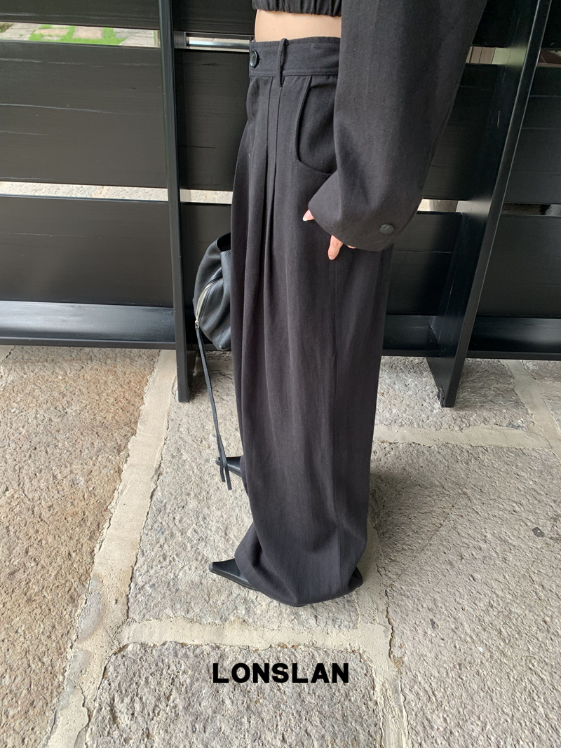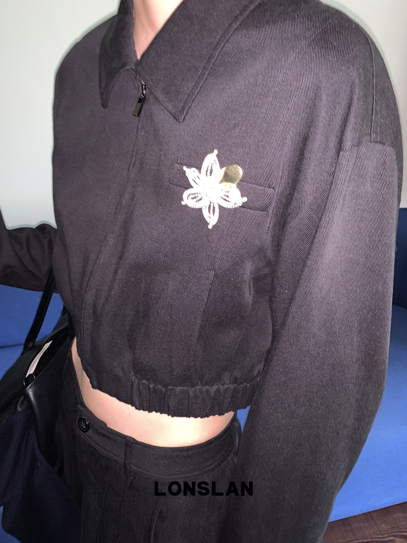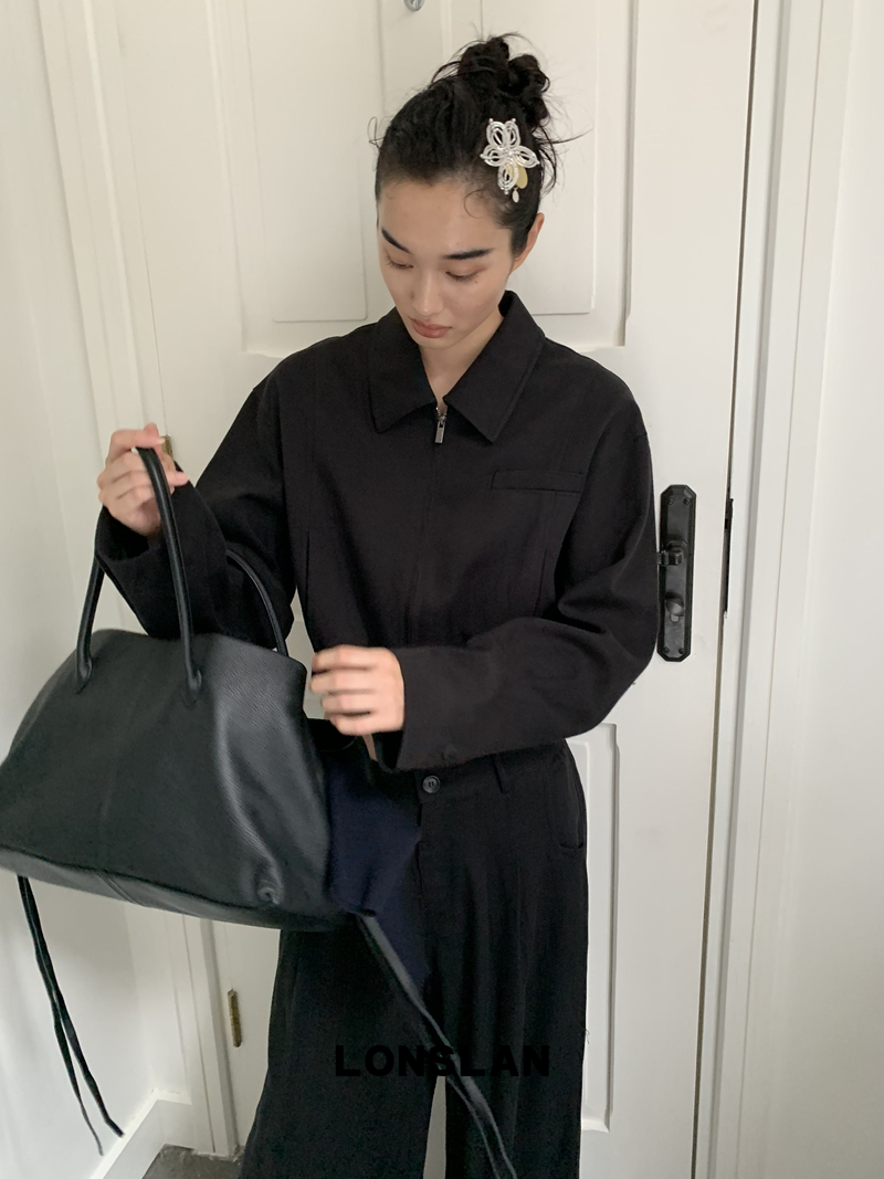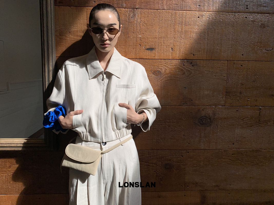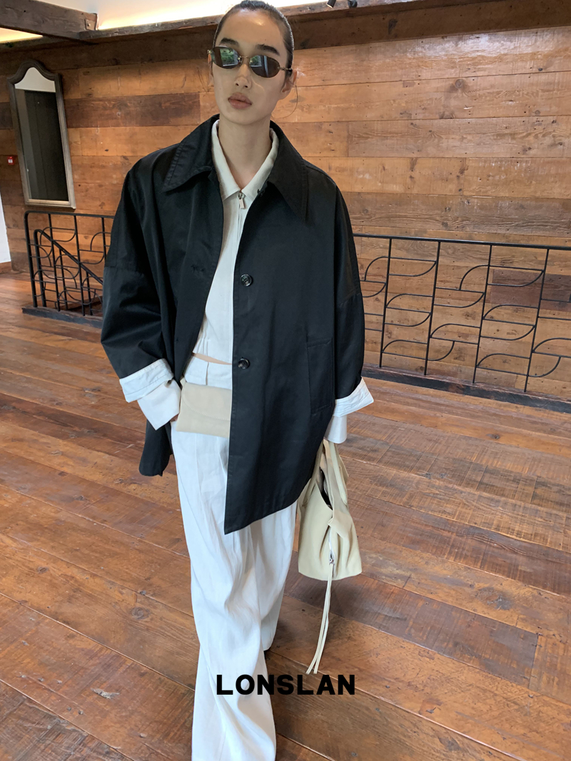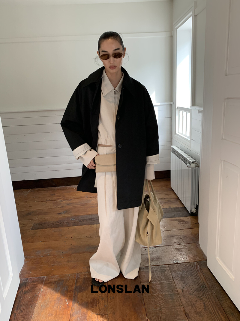 LONSLAN Cotton and Linen Shorts Zipper Lapel Jacket + Wide-leg Pants Set