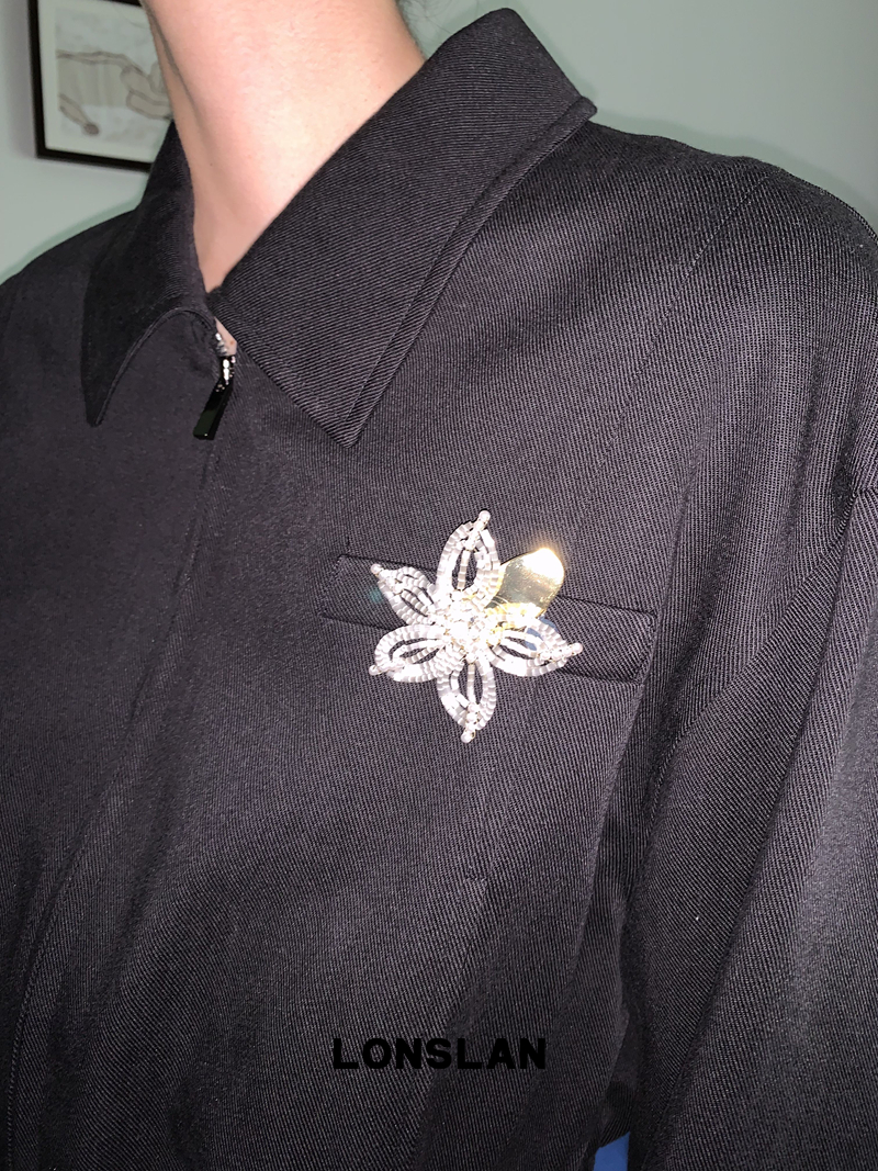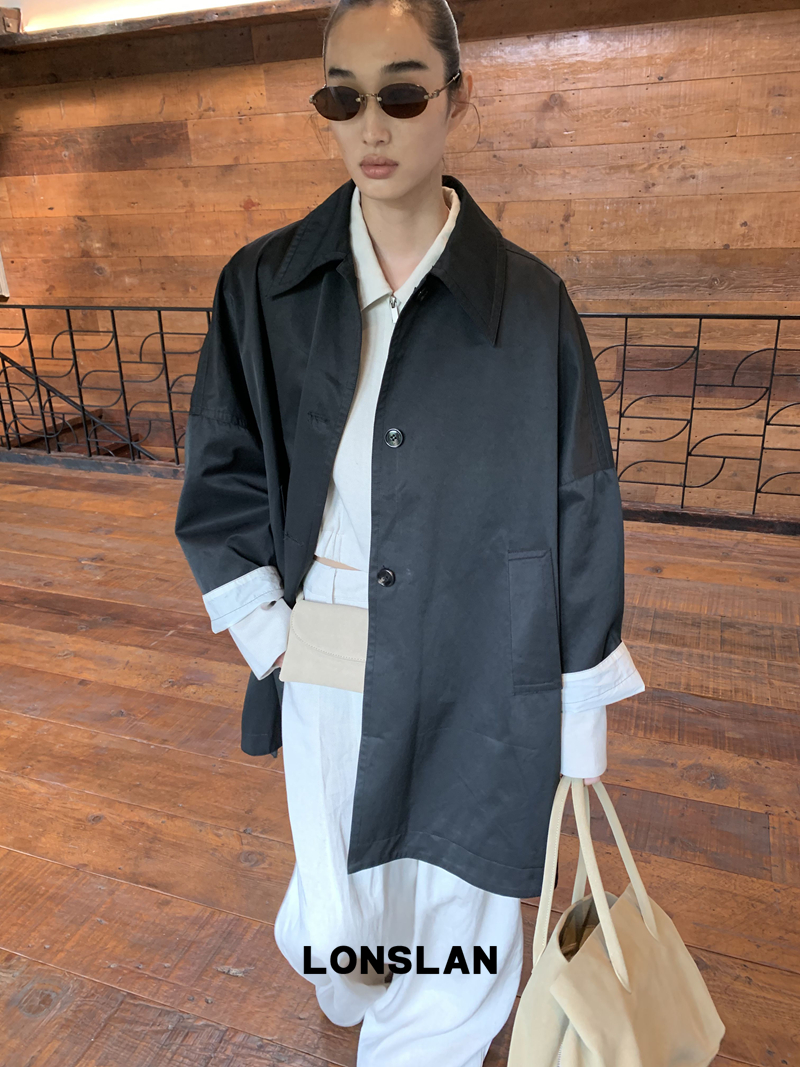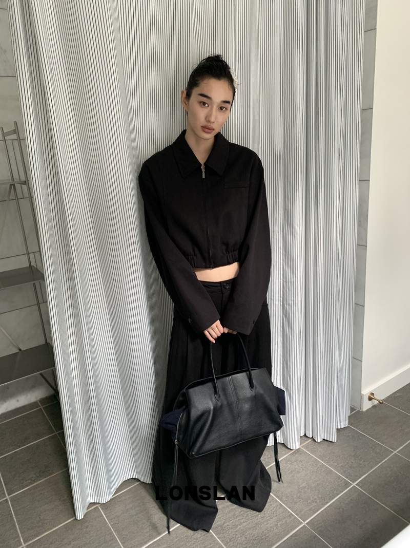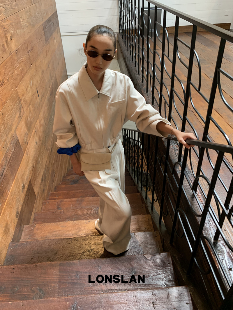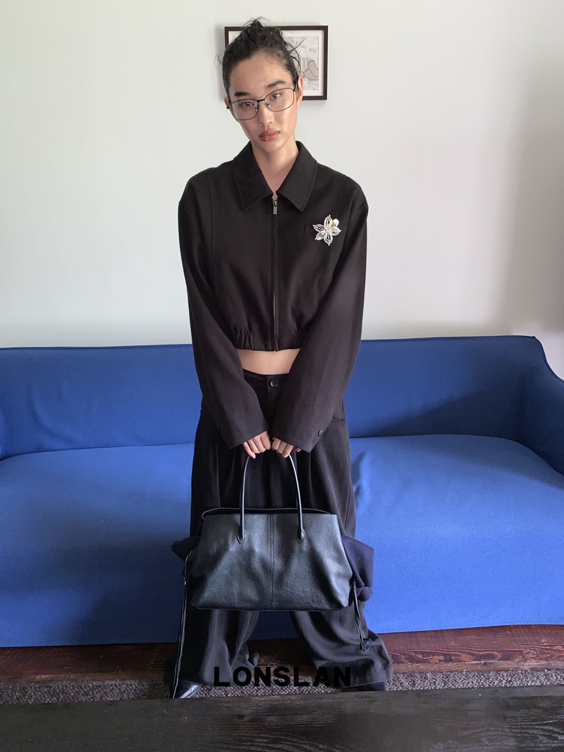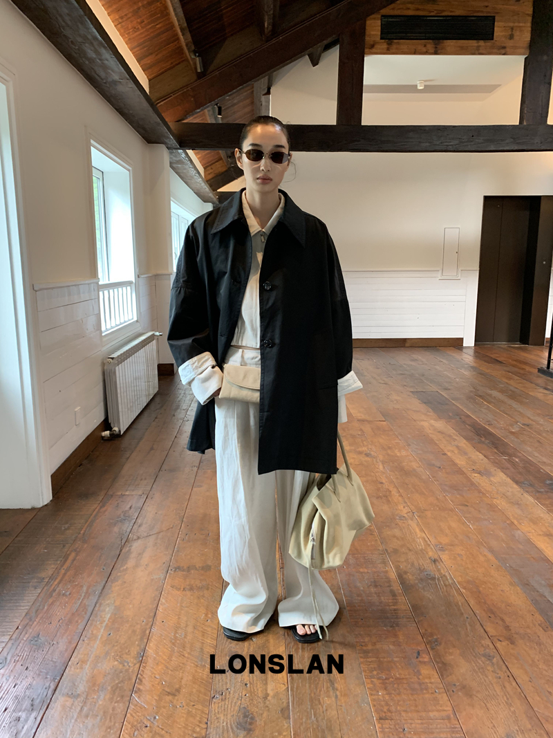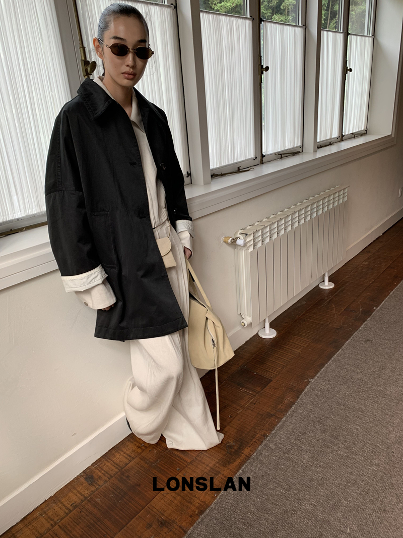 LONSLAN Cotton and Linen Shorts Zipper Lapel Jacket + Wide-leg Pants Set