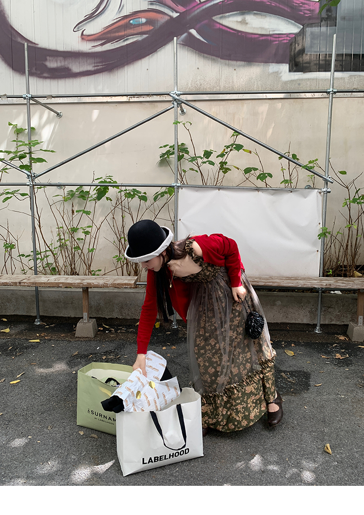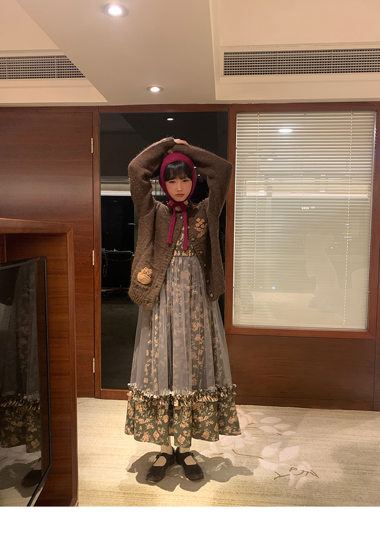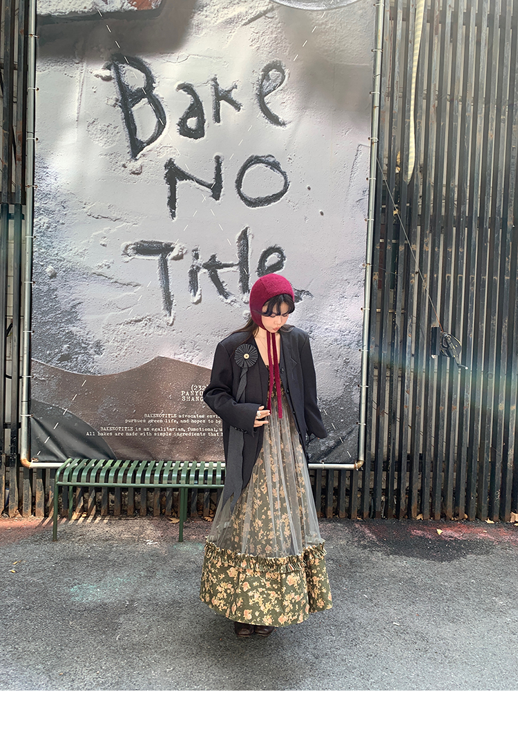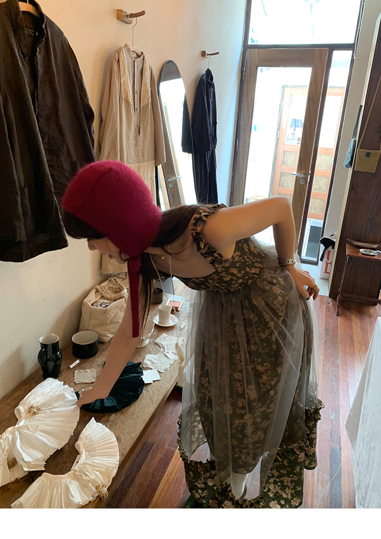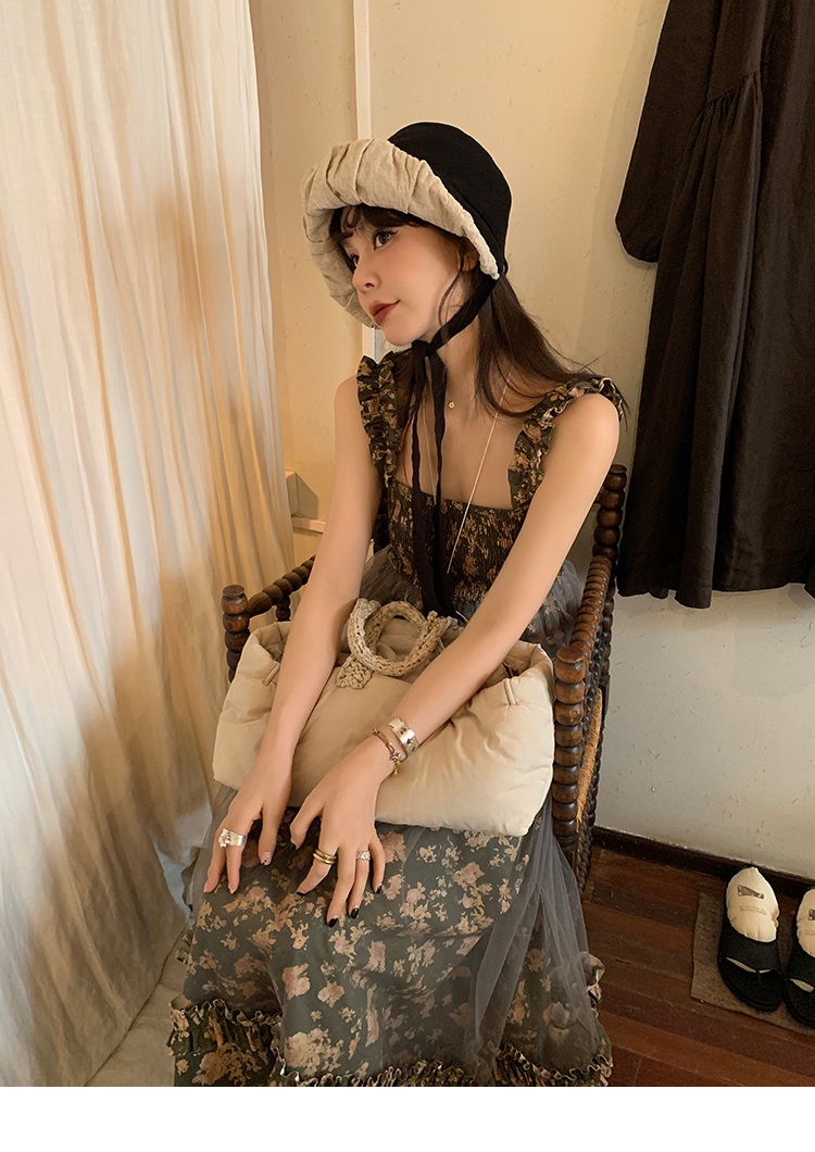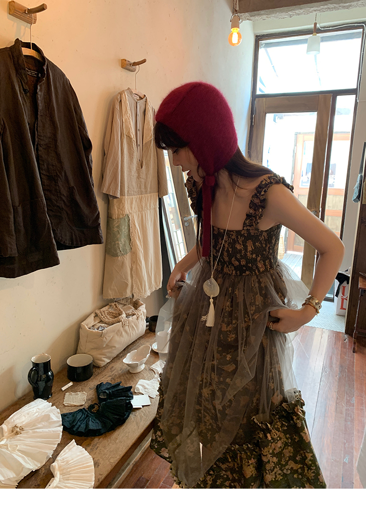 LRIB Autumn Story floral pattern hazy mesh stitching suspender dress