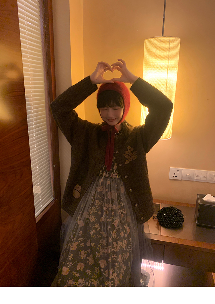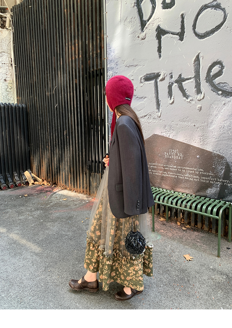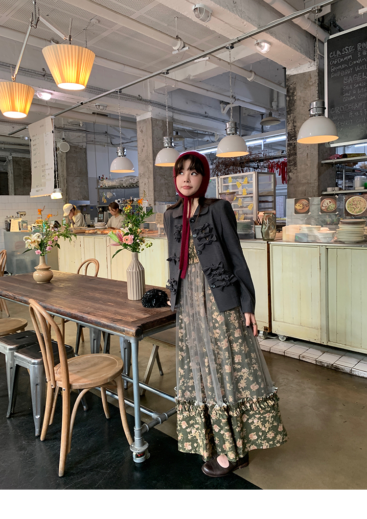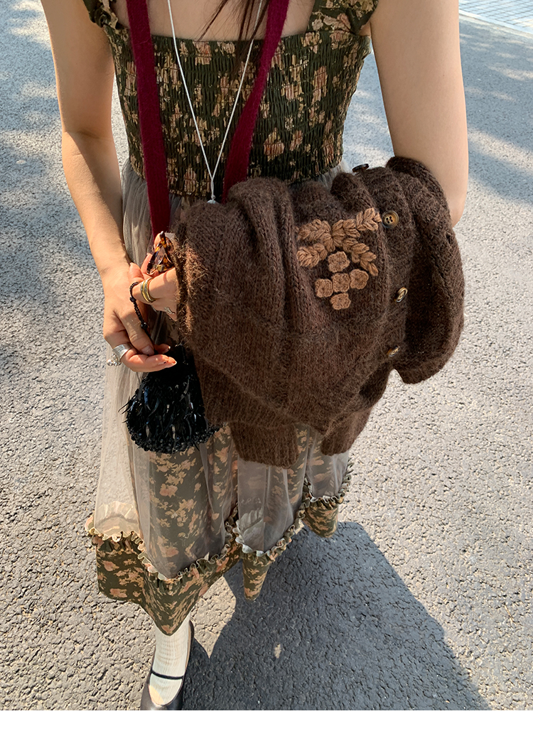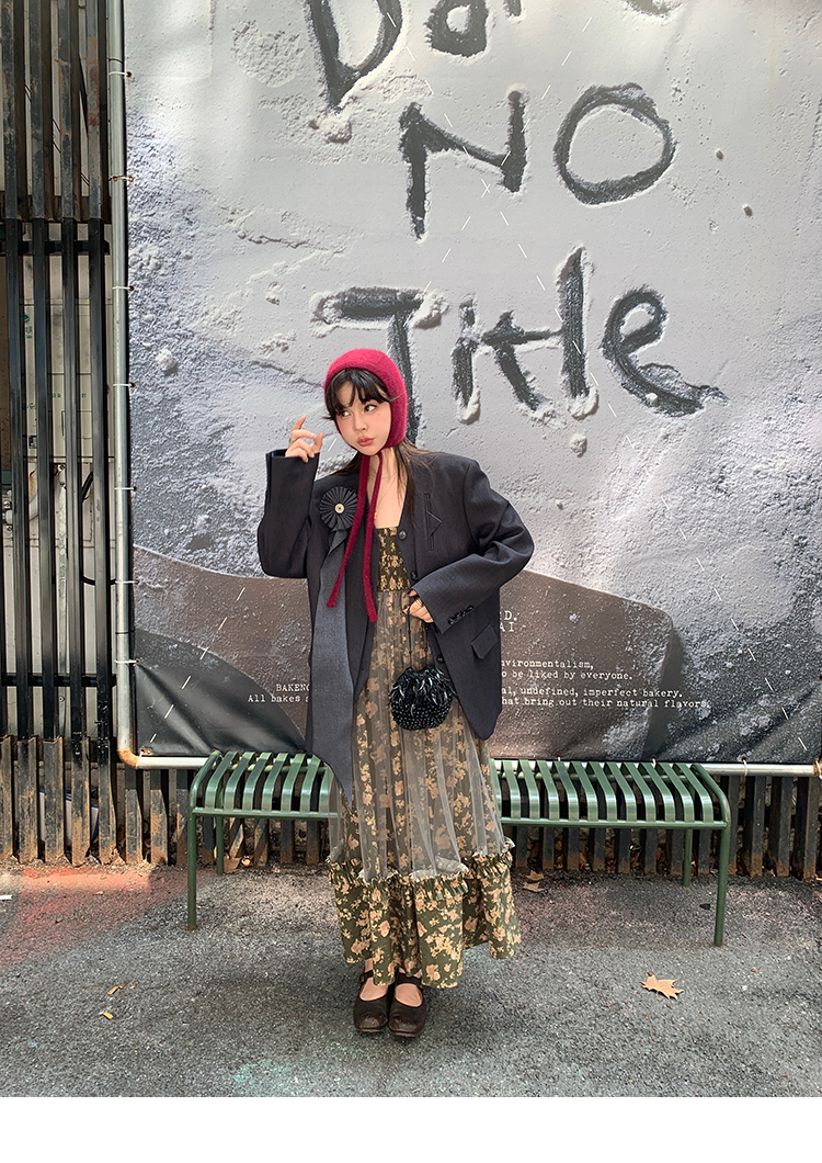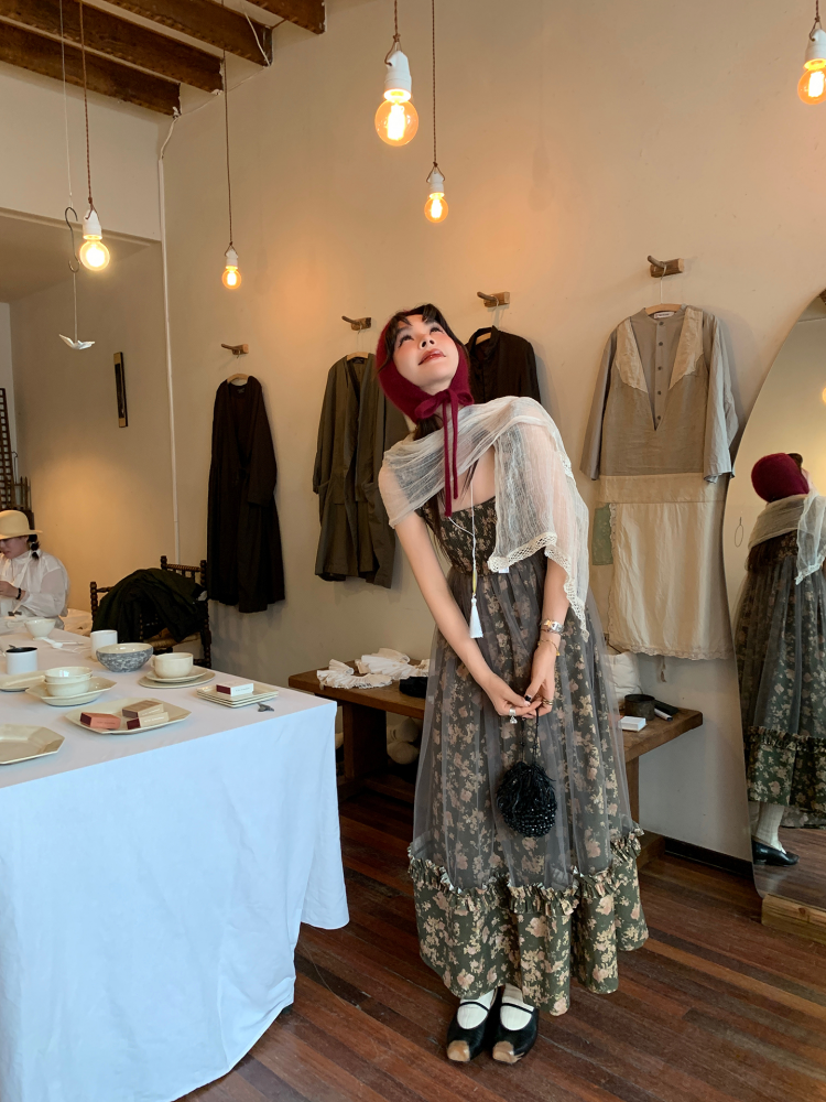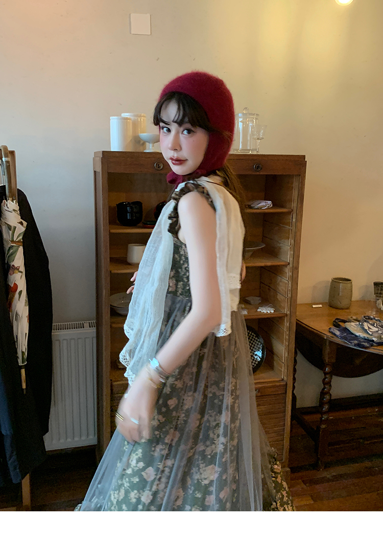 LRIB Autumn Story floral pattern hazy mesh stitching suspender dress