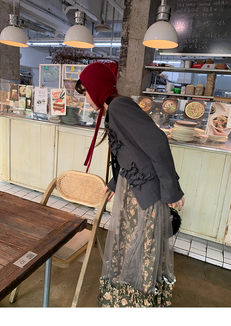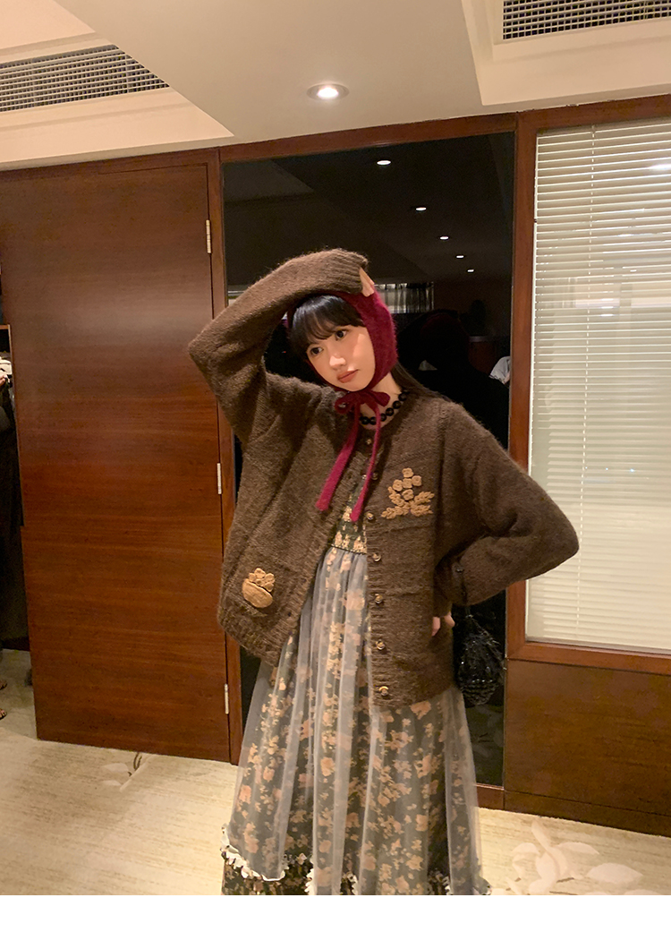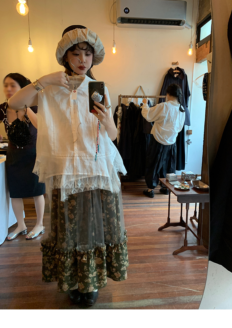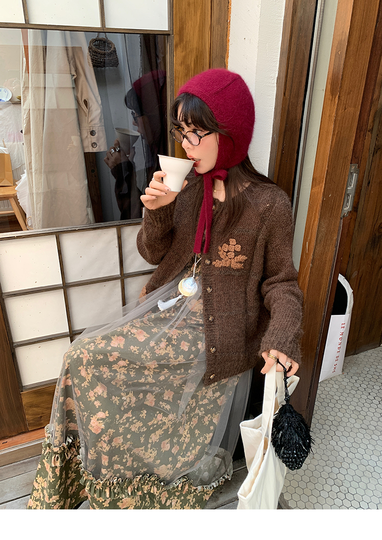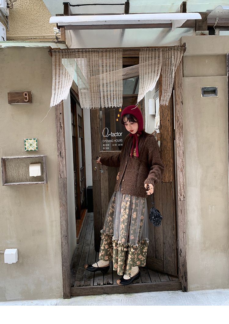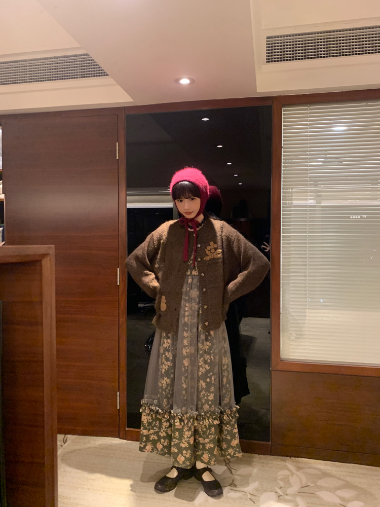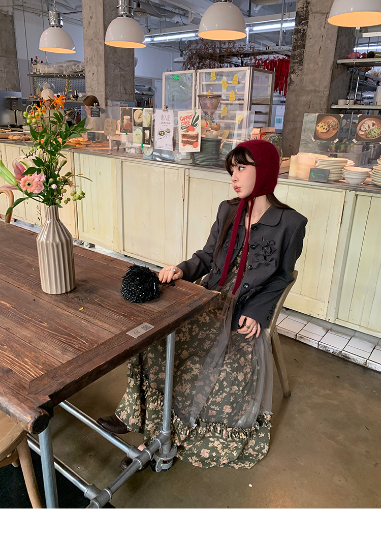 LRIB Autumn Story floral pattern hazy mesh stitching suspender dress