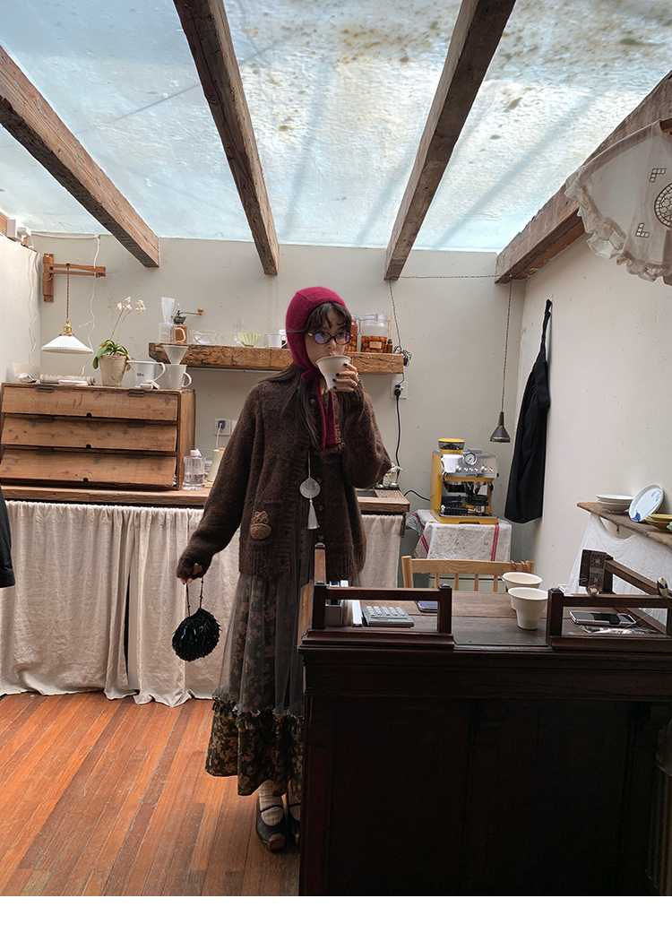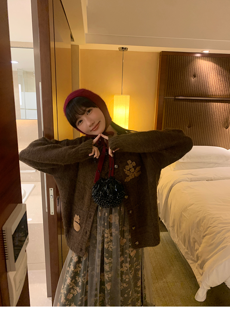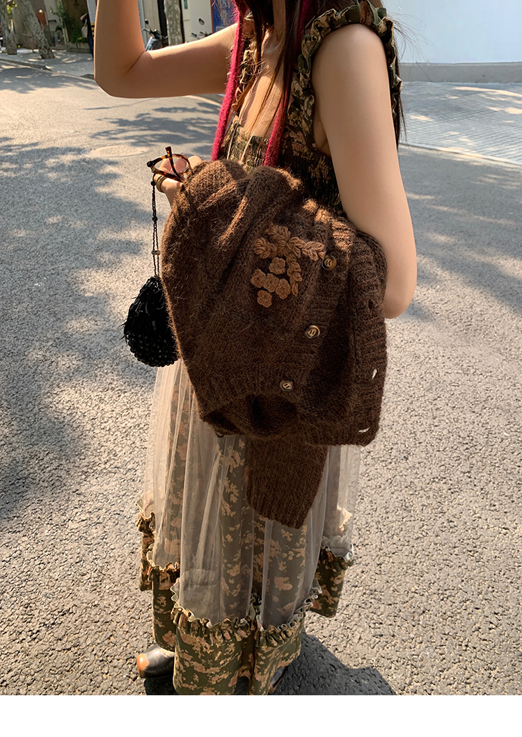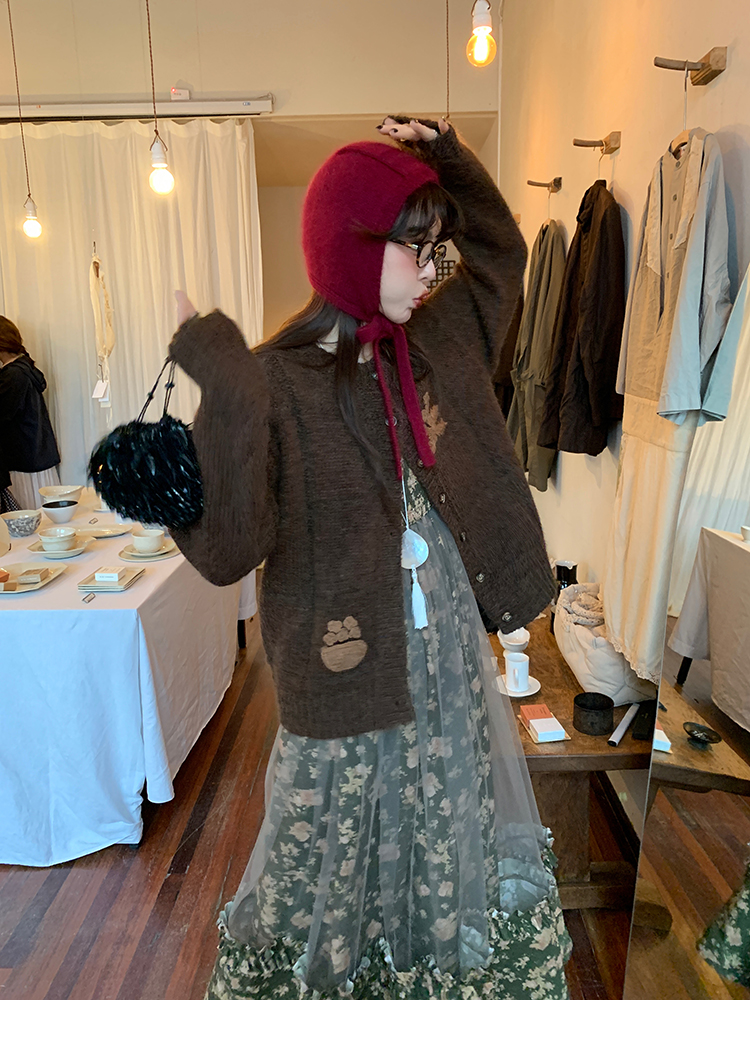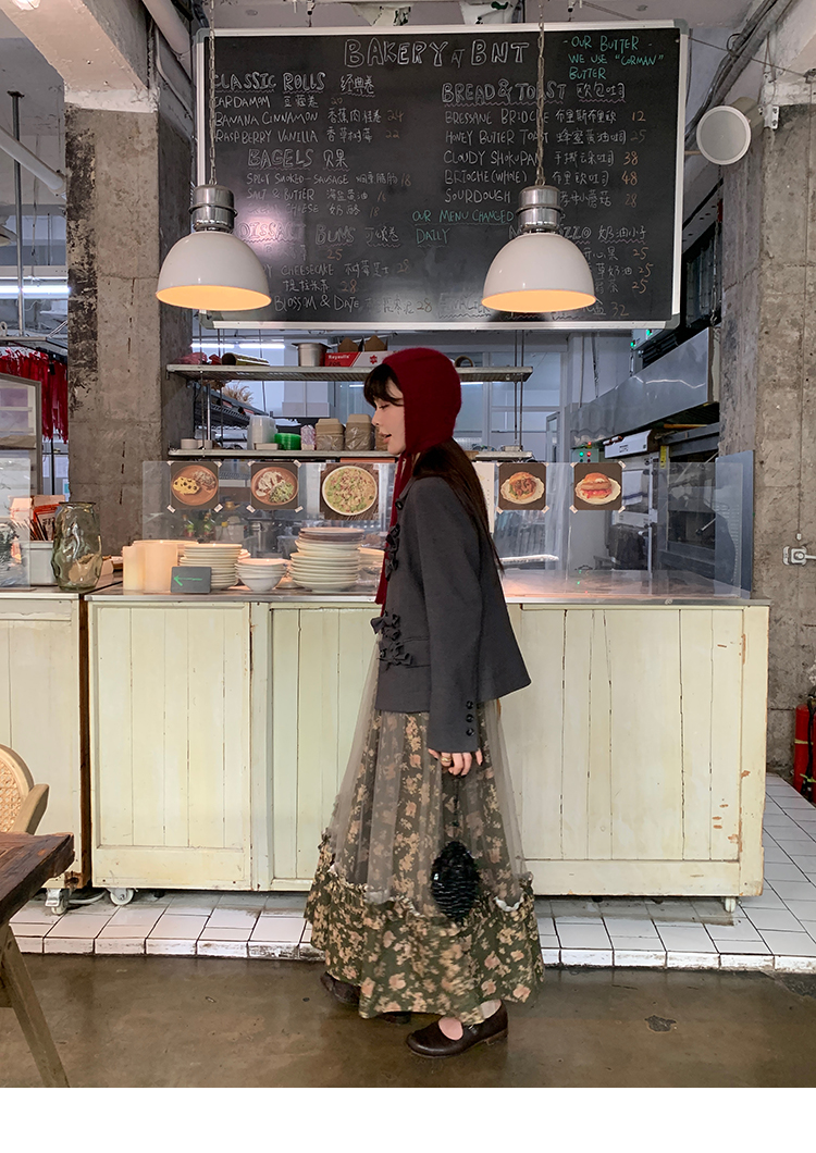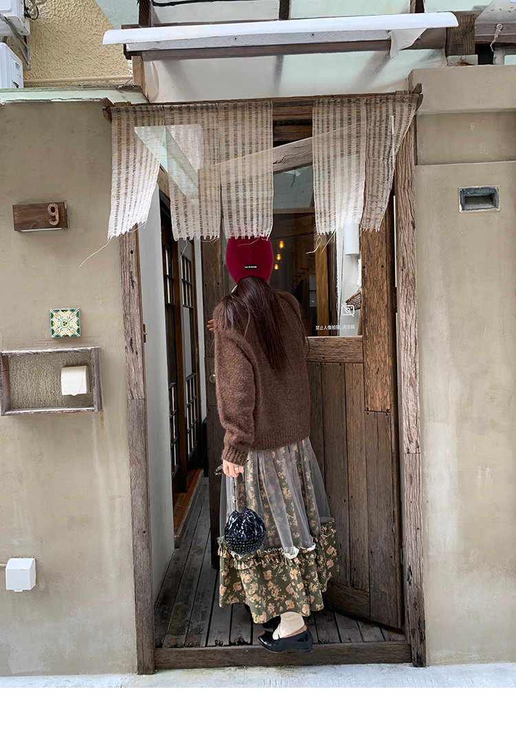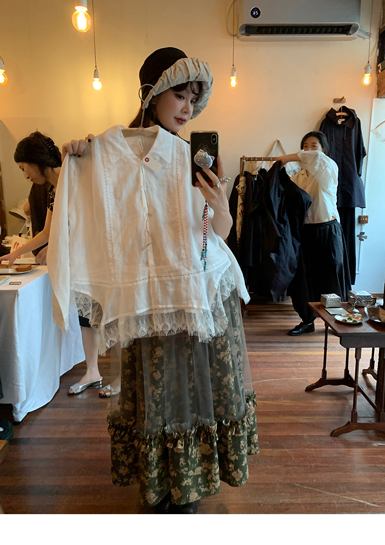 LRIB Autumn Story floral pattern hazy mesh stitching suspender dress
