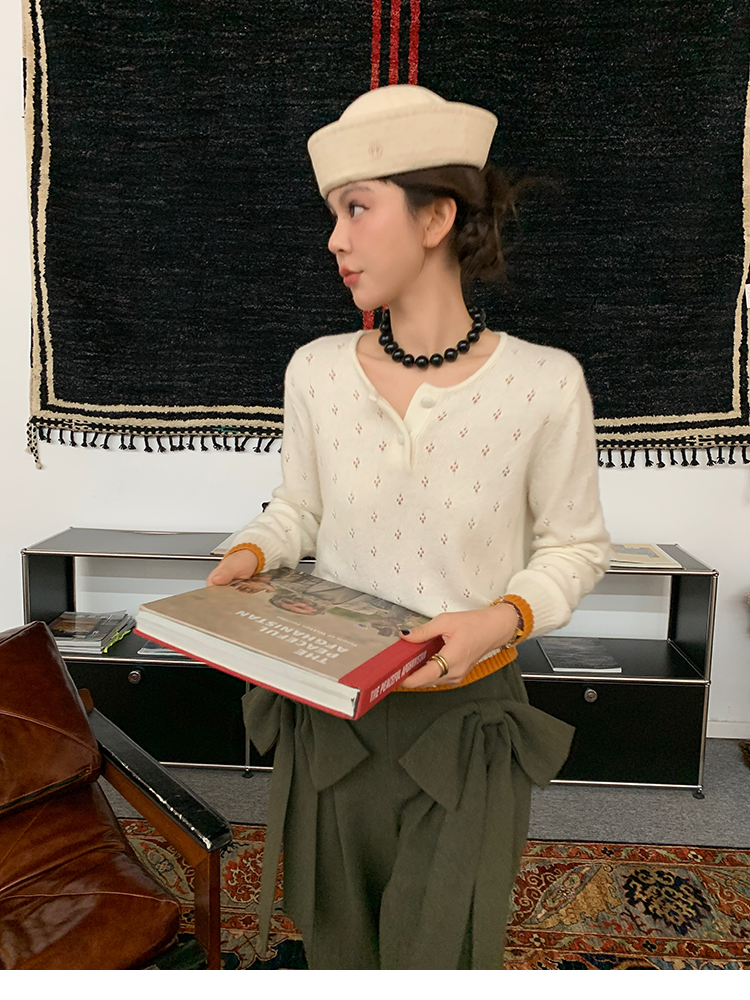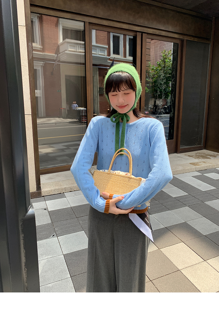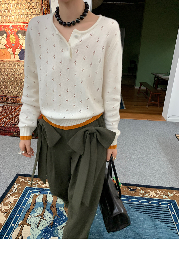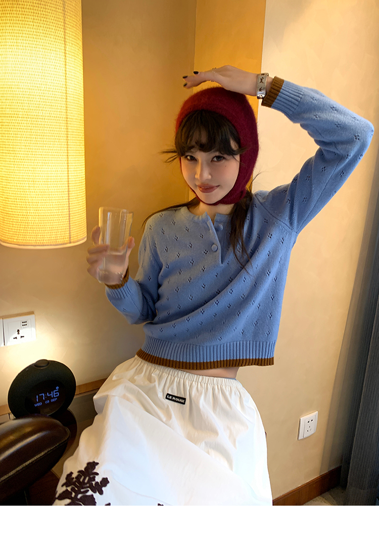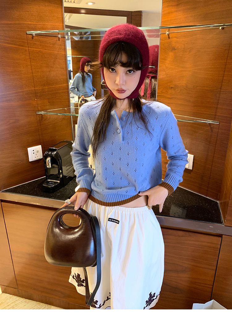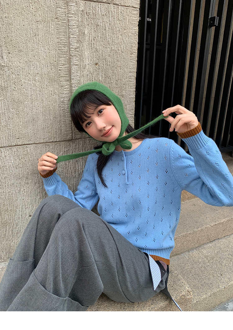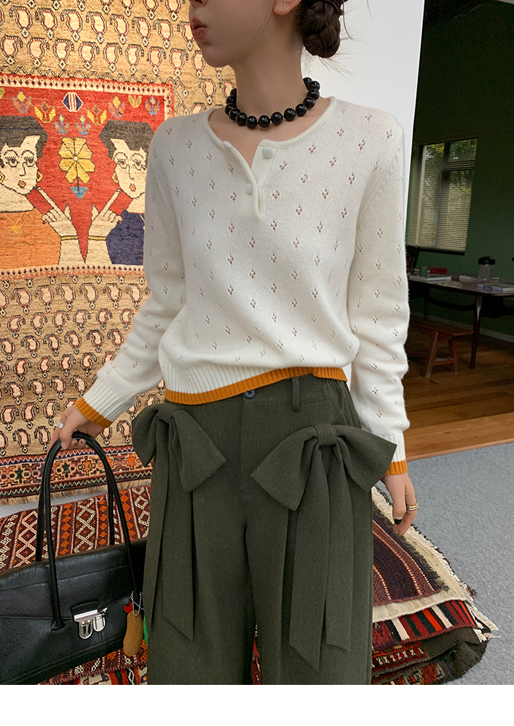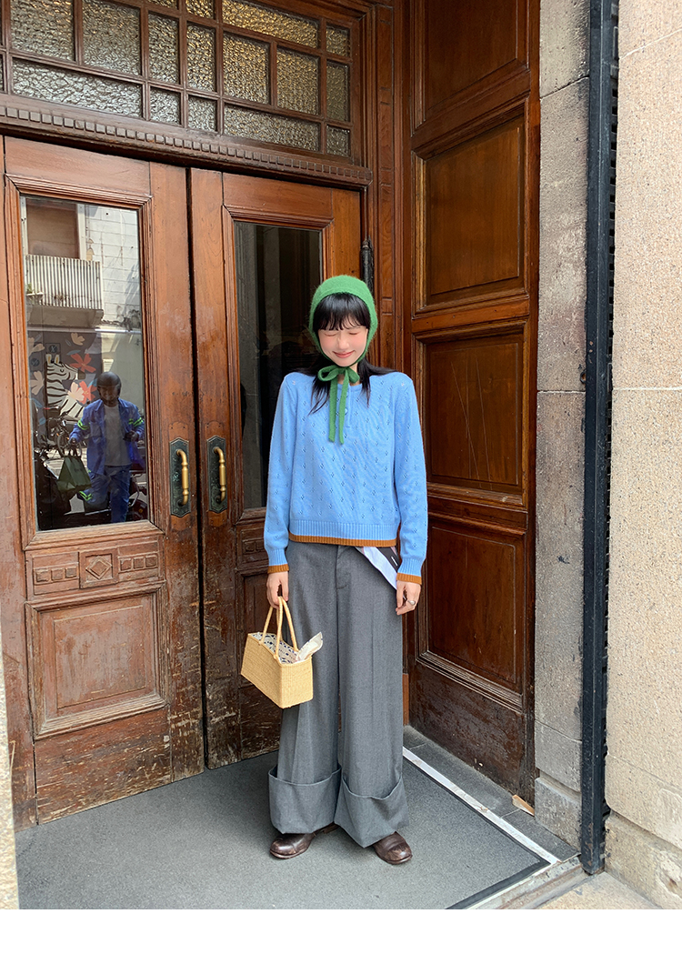 LRIB lazy wool retro hollow pattern contrast color knitted top