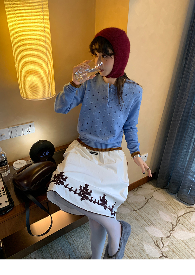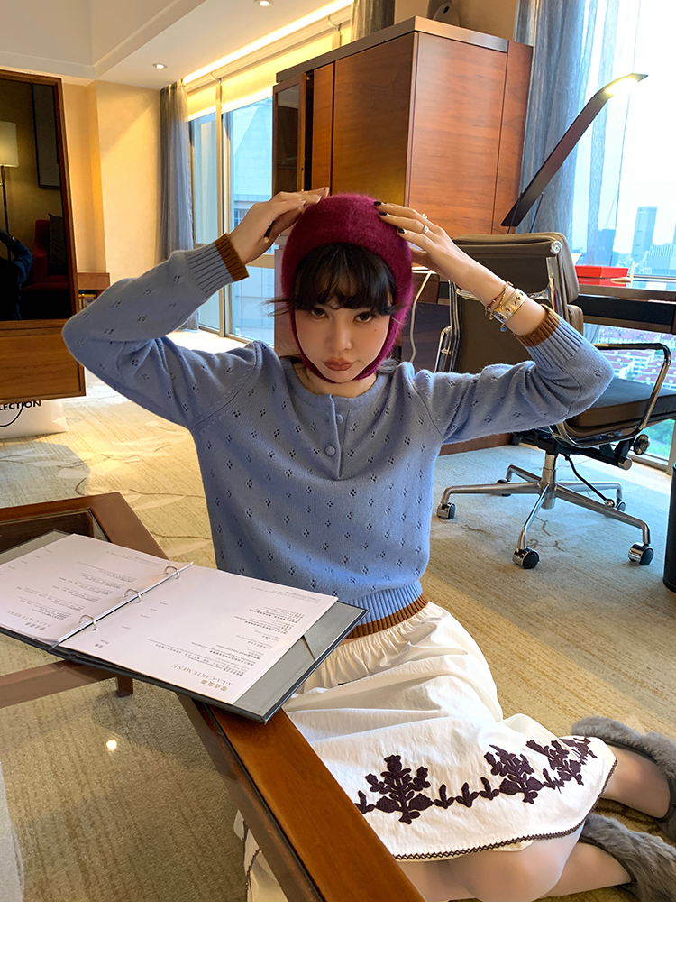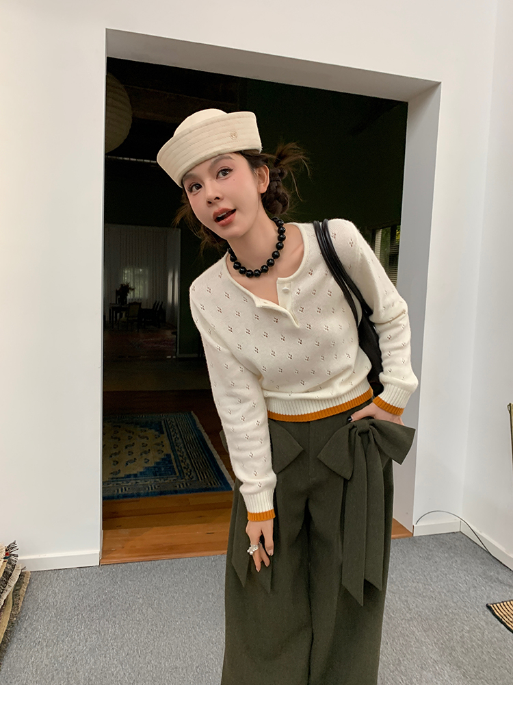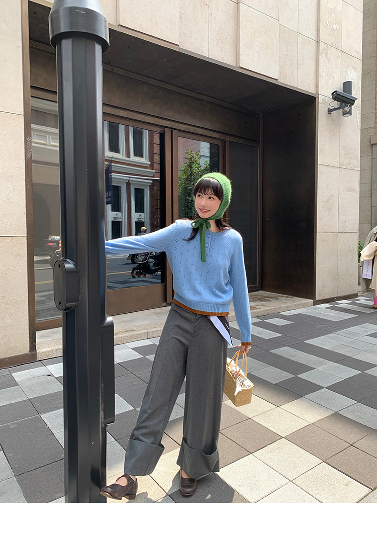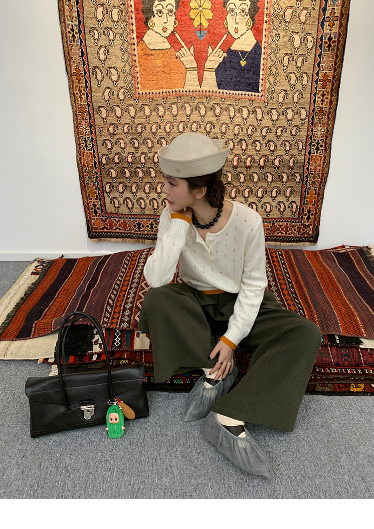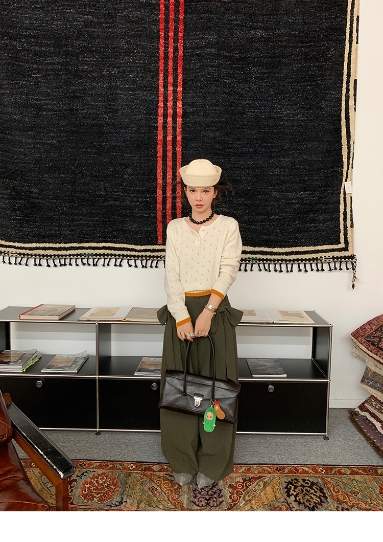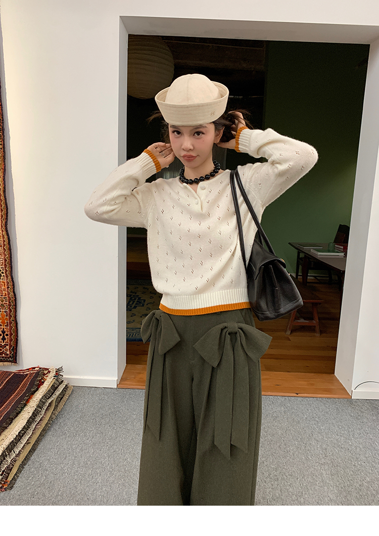 LRIB lazy wool retro hollow pattern contrast color knitted top