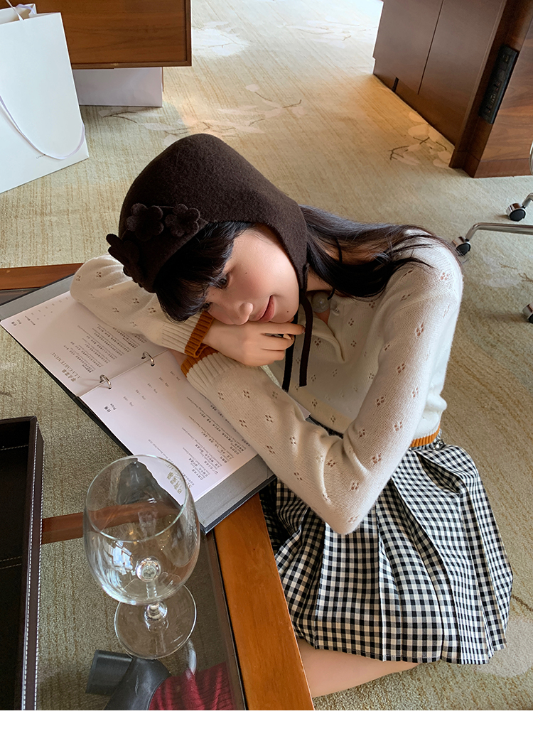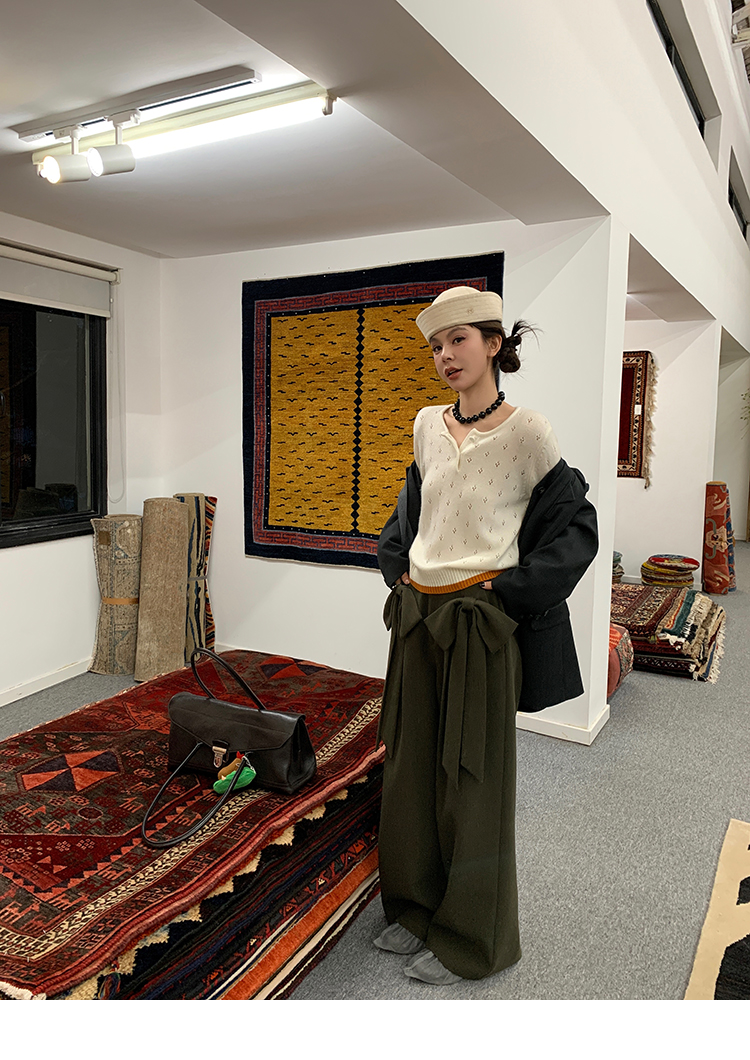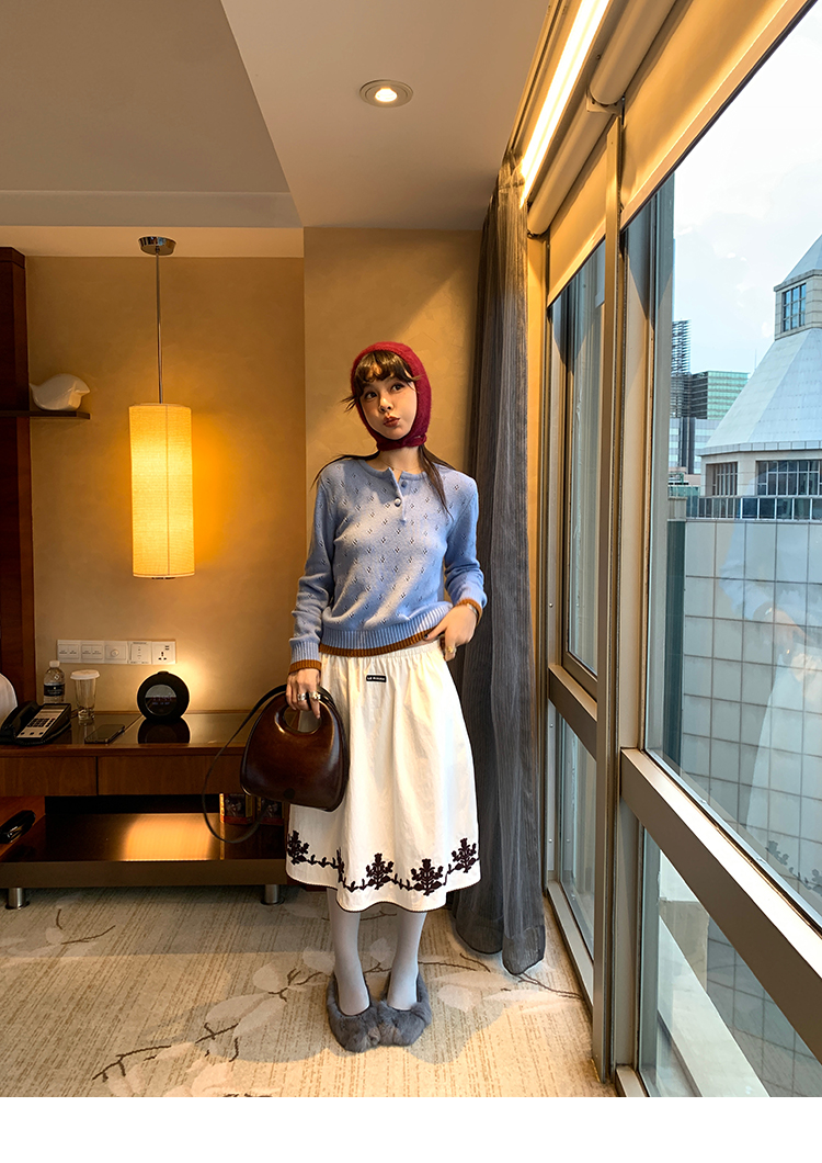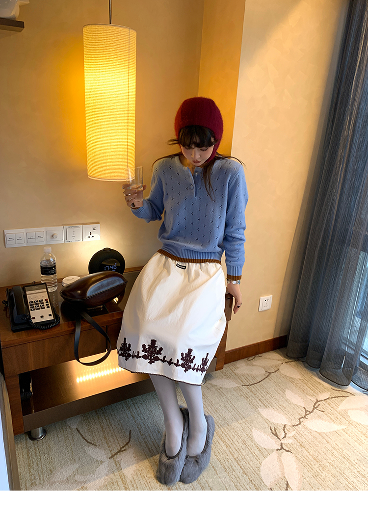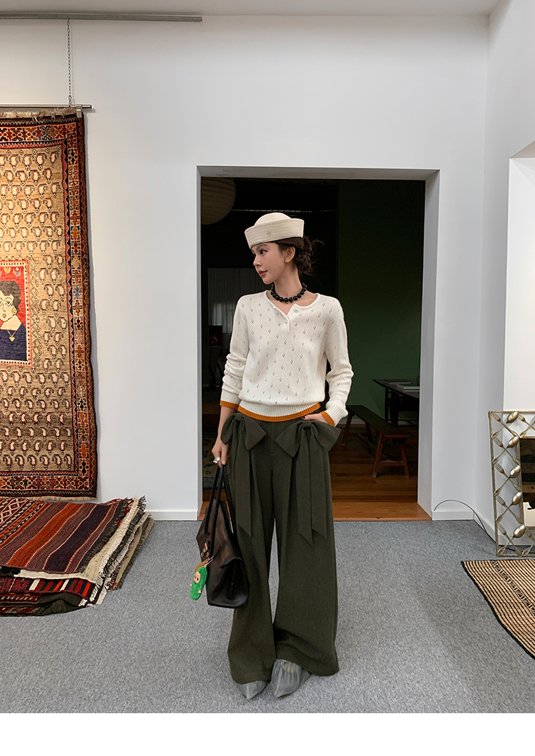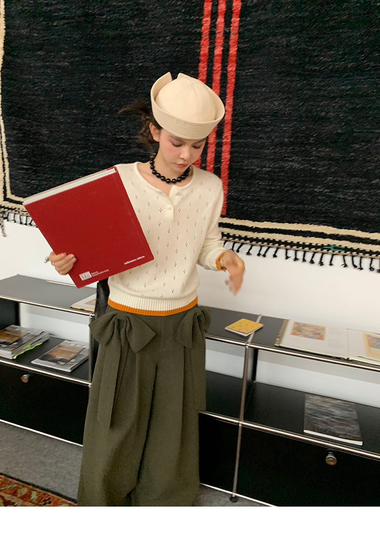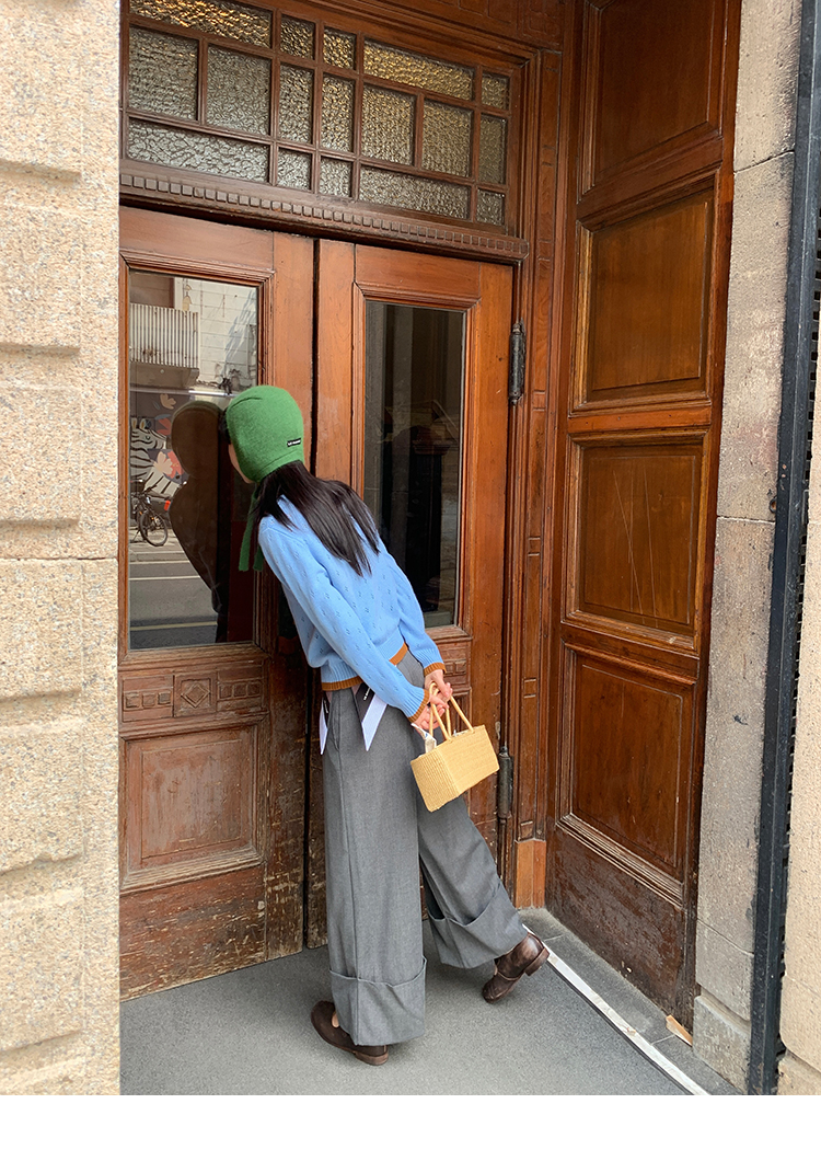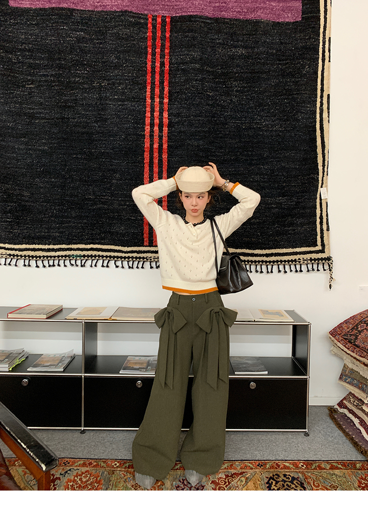 LRIB lazy wool retro hollow pattern contrast color knitted top