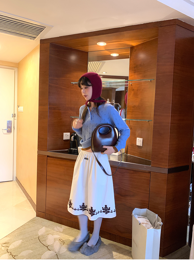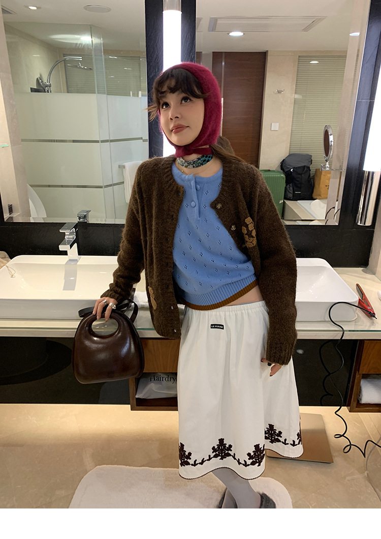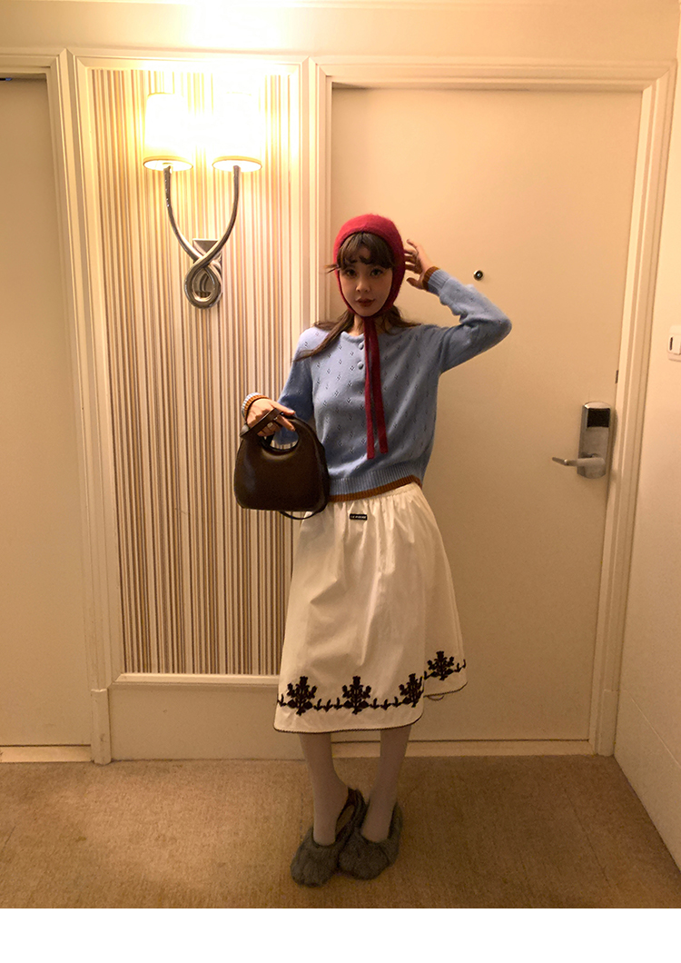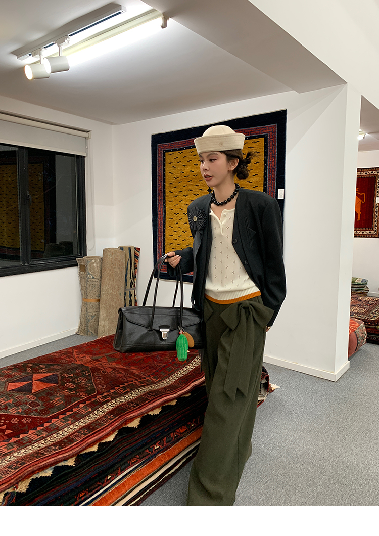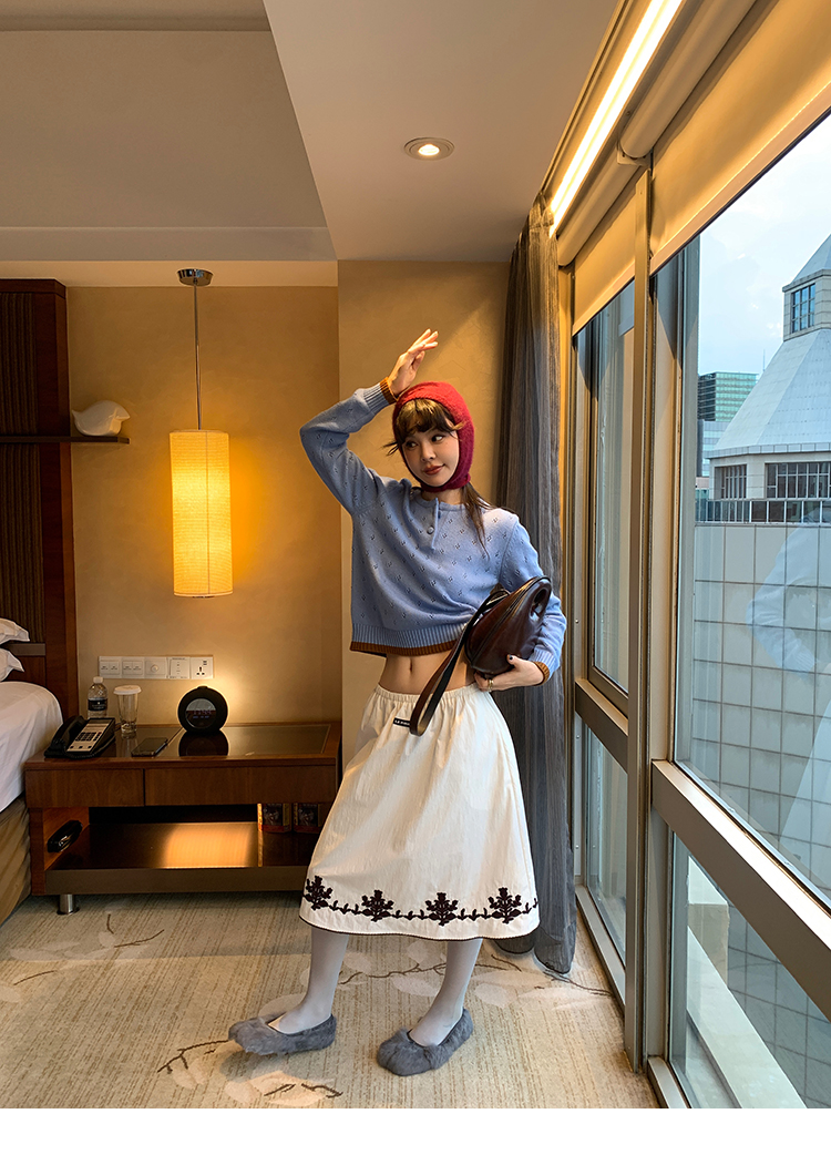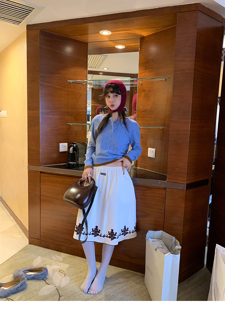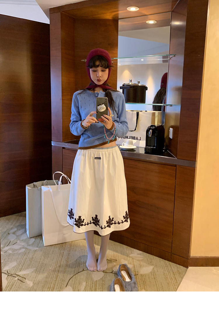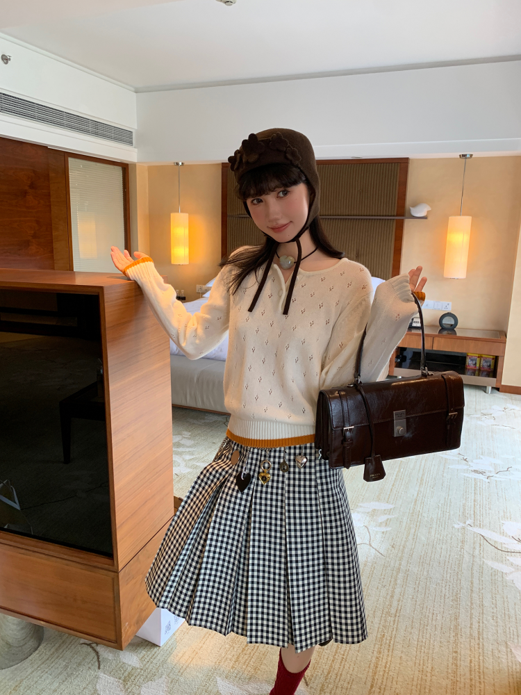 LRIB lazy wool retro hollow pattern contrast color knitted top