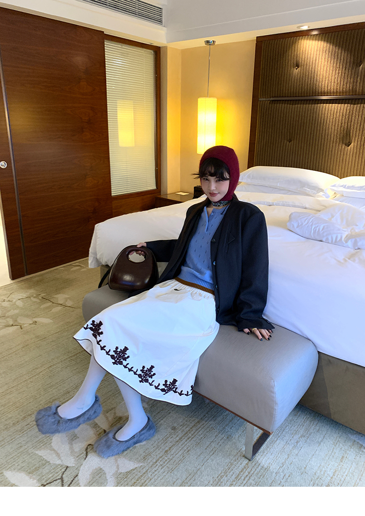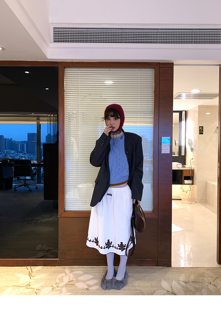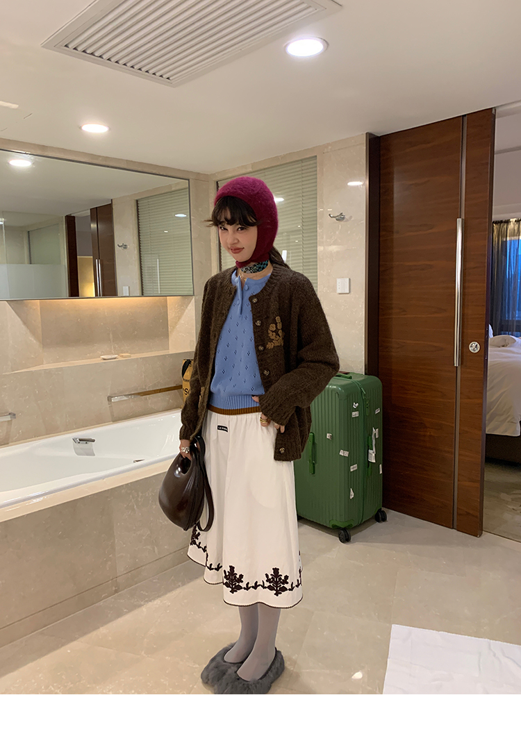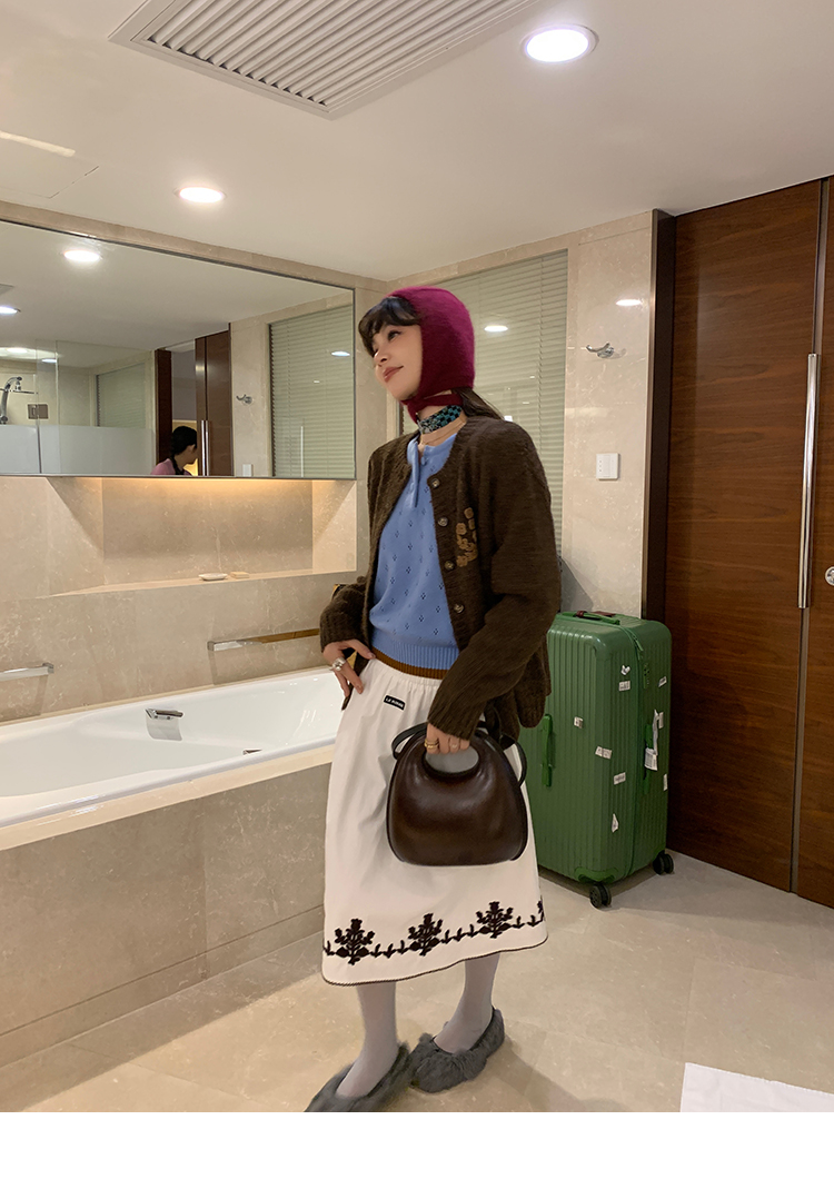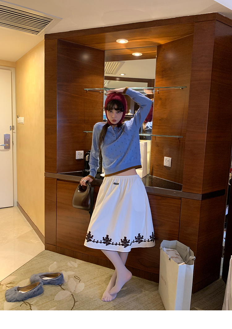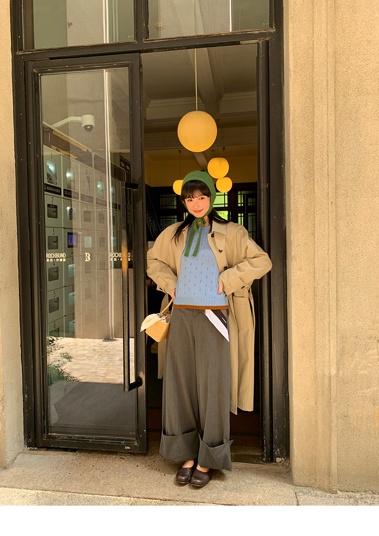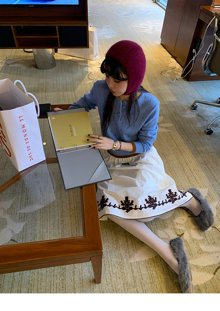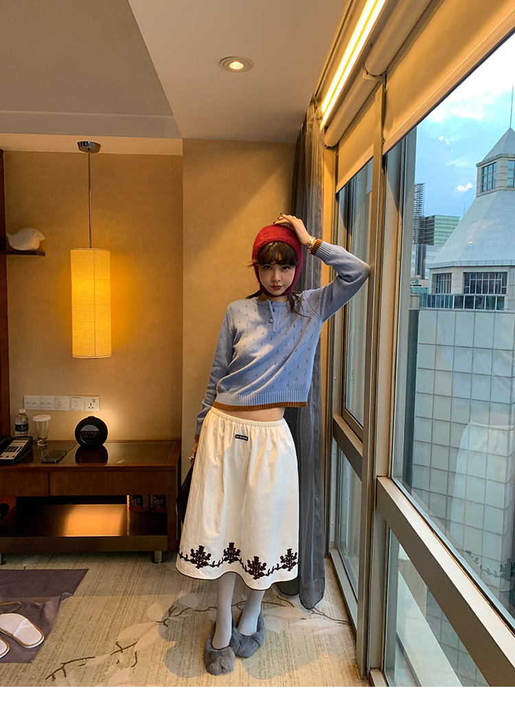 LRIB lazy wool retro hollow pattern contrast color knitted top